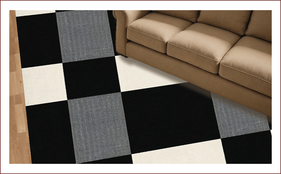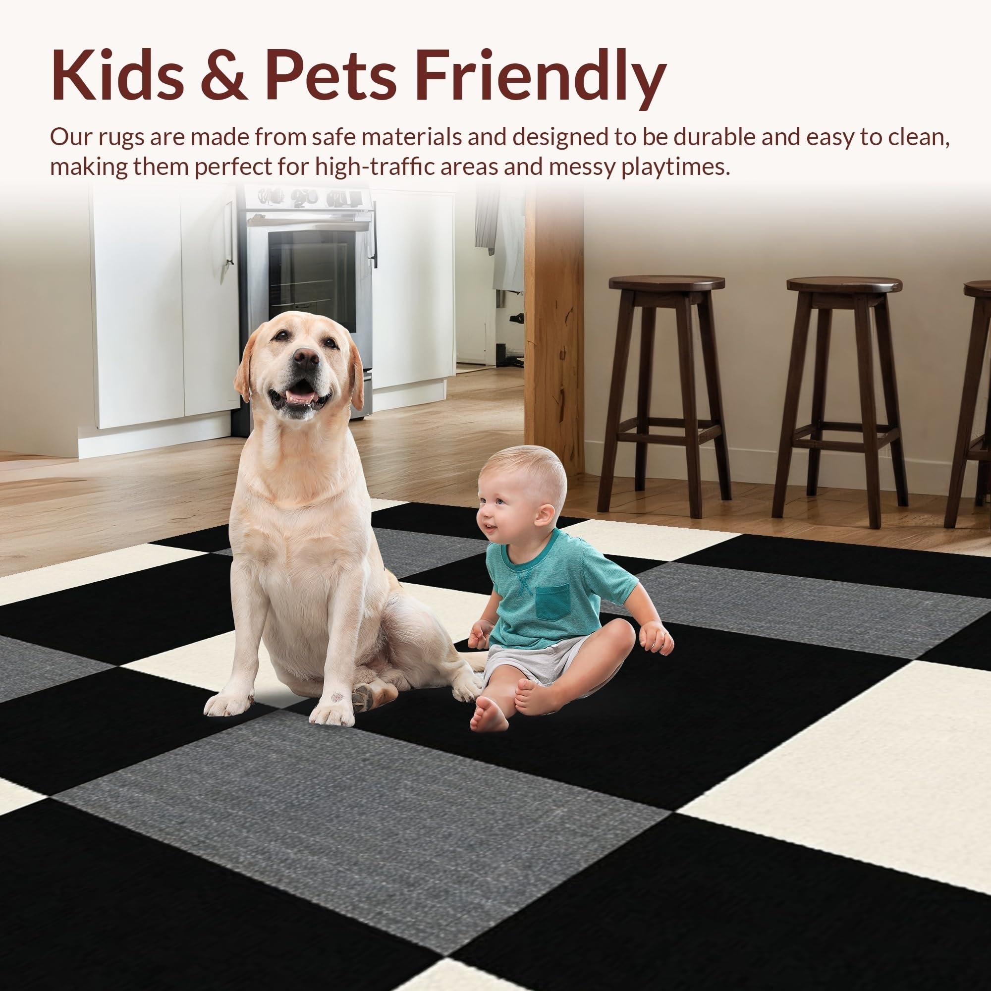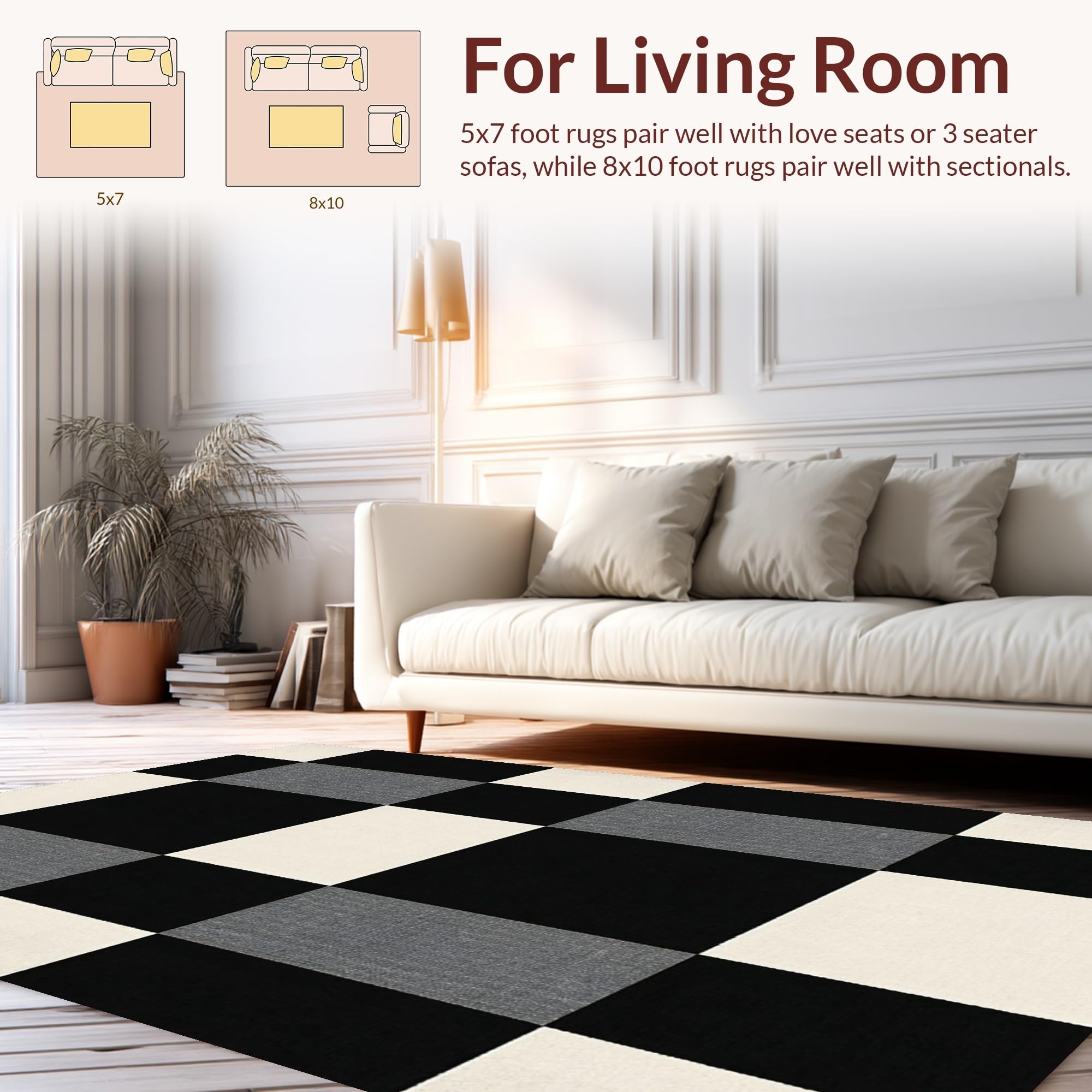 Ultra Soft Area Rug, Non Slip, Stain Resistant, Washable Area Rugs for Living Room, Bedroom, Contemporary Striped Contrast Motif(Black) Overview: