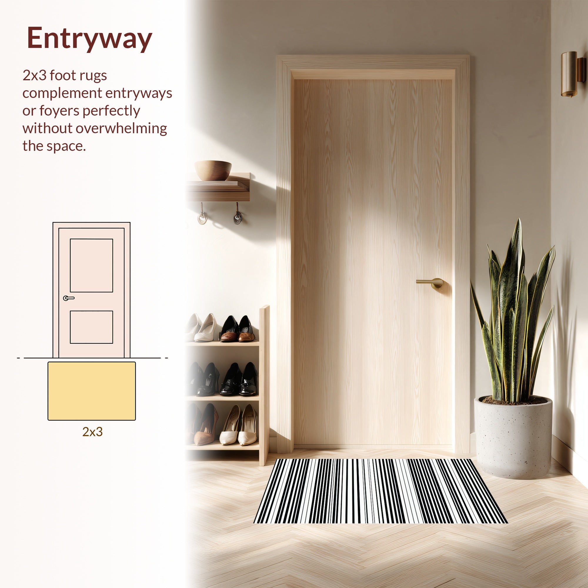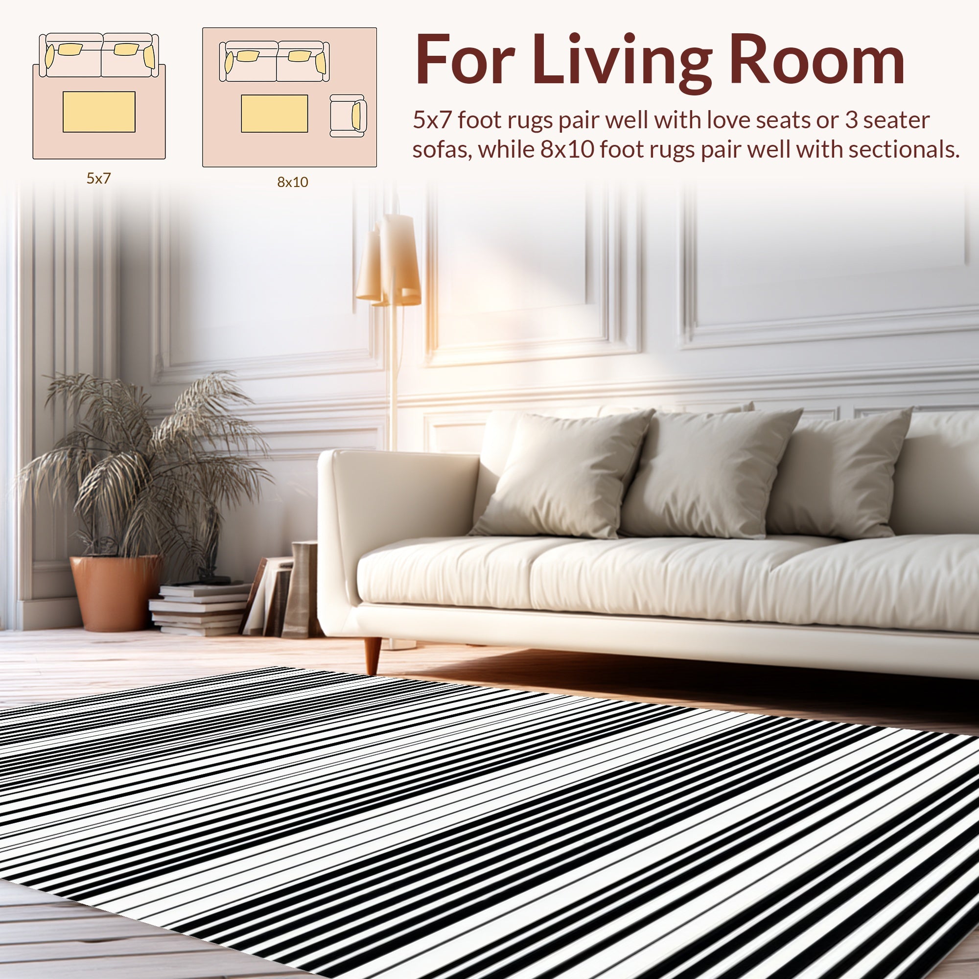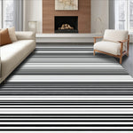 Flatwoven High Traffic Area Rug, Contemporary Striped Door Layered Look, Non Slip, Stain Resistant, Washable Area Rugs for Living Room, Bedroom (Black) Overview: