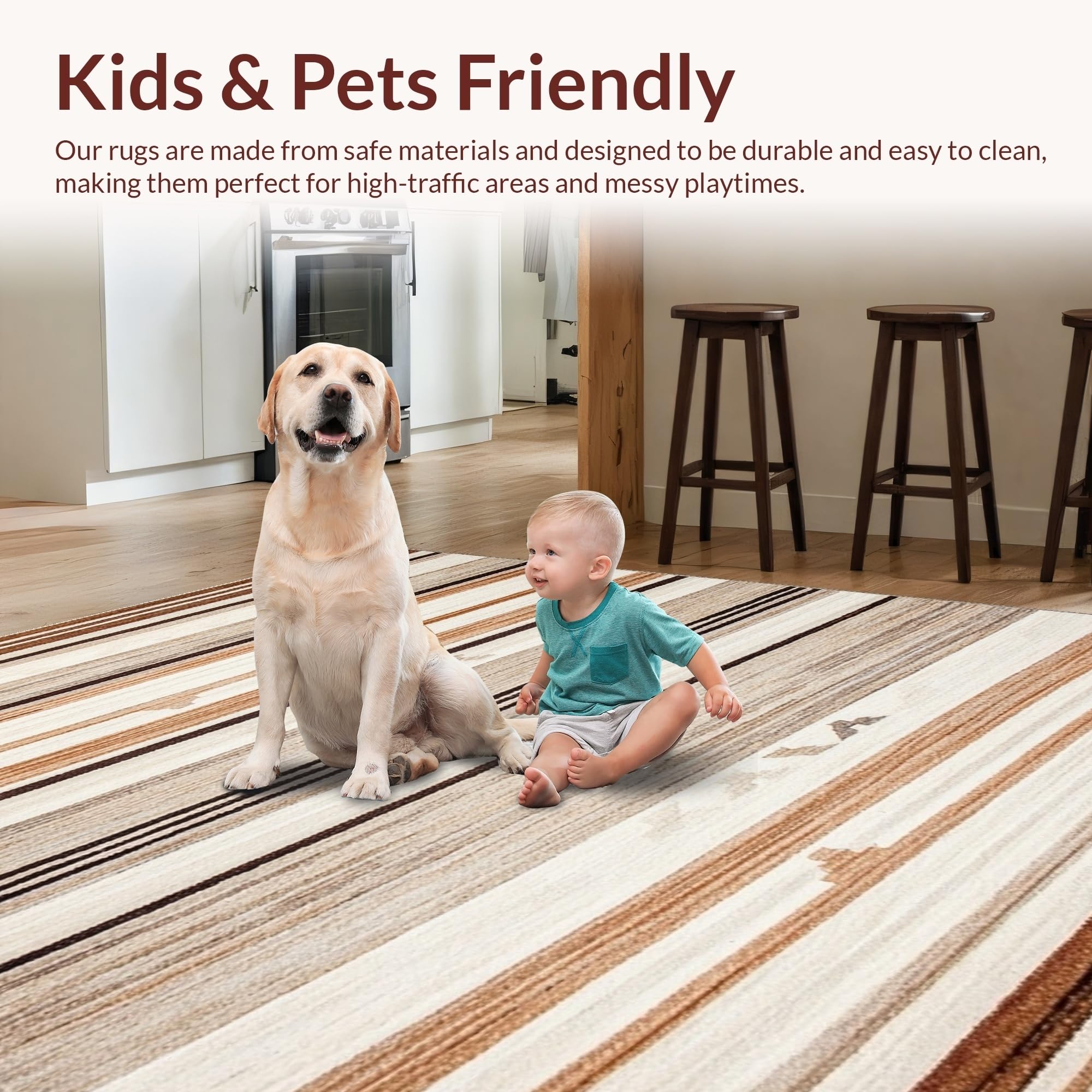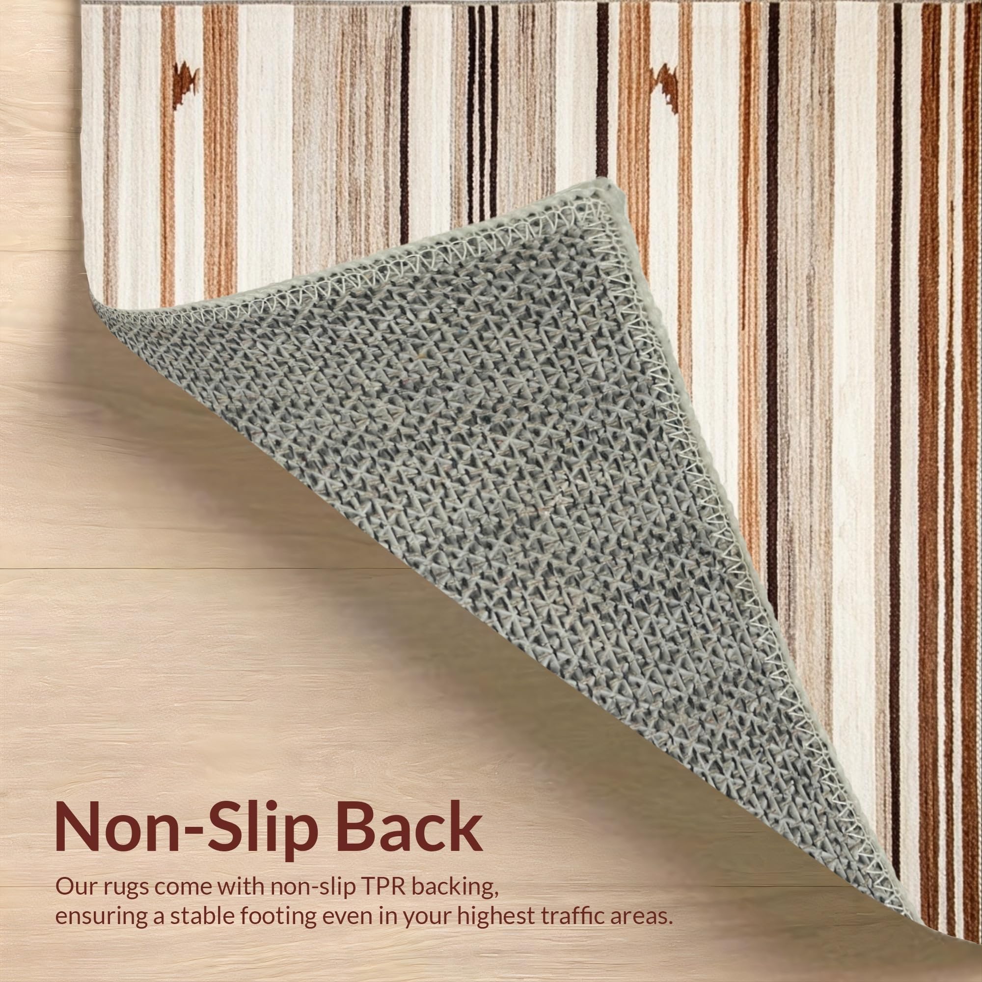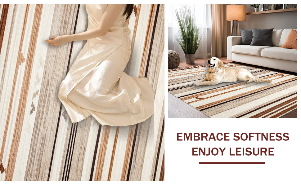 Ultra Soft Area Rug, Non Slip, Stain Resistant, Washable Area Rugs for Living Room, Bedroom, Contemporary Striped Layered Look(Beige) Overview: