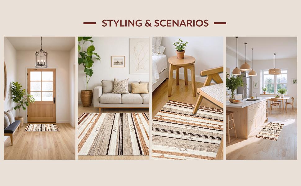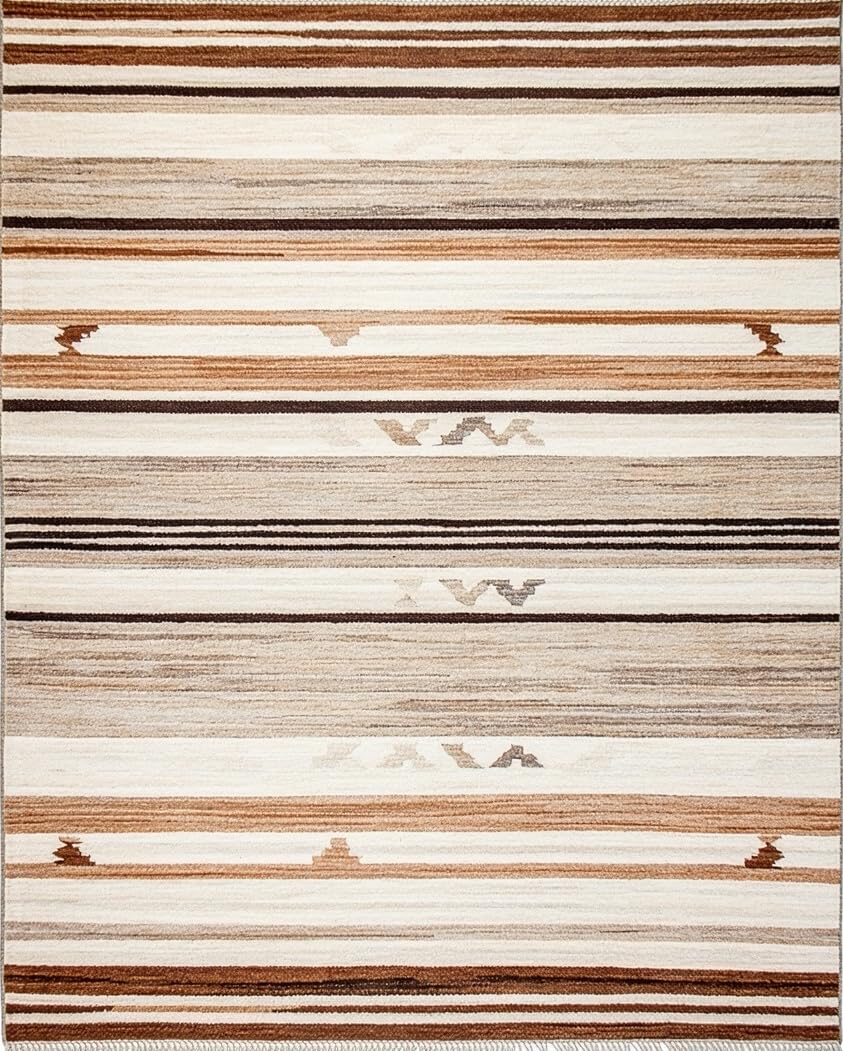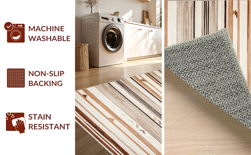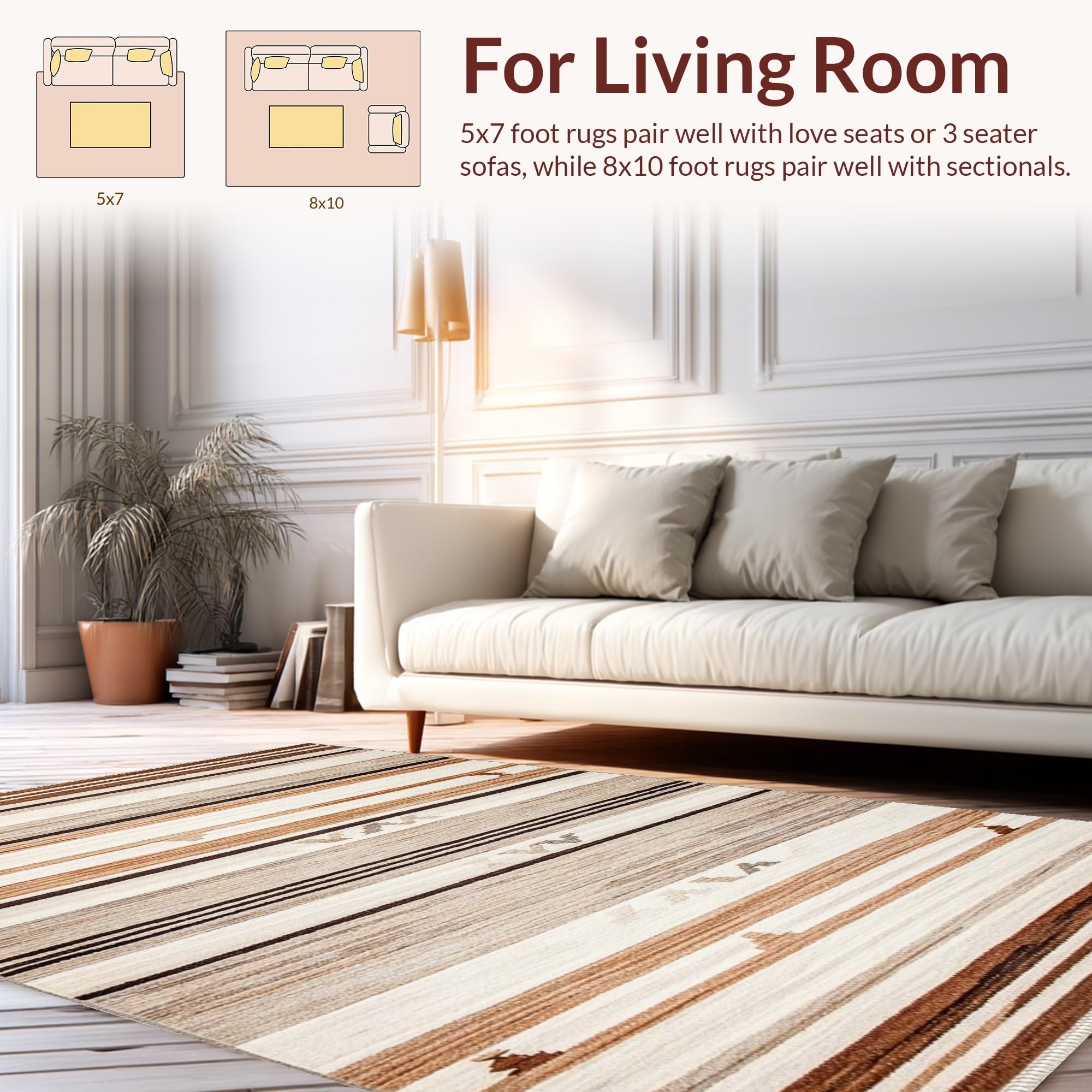 Ultra Soft Area Rug, Non Slip, Stain Resistant, Washable Area Rugs for Living Room, Bedroom, Contemporary Striped Layered Look(Beige) Overview: