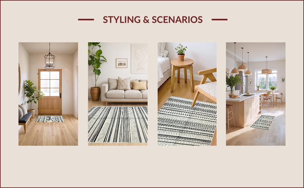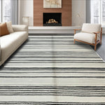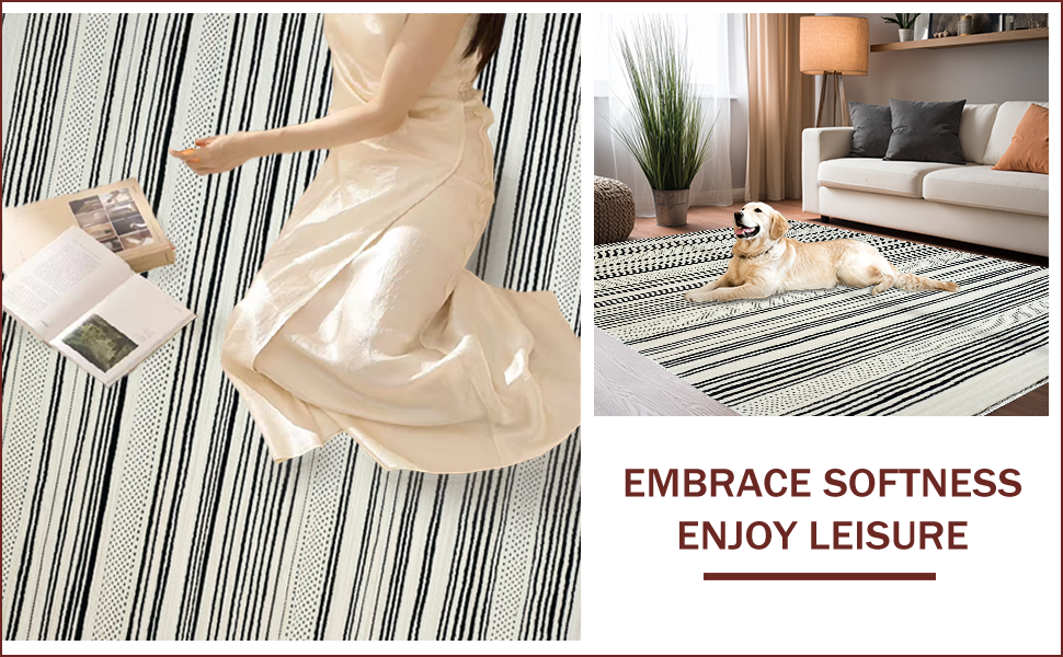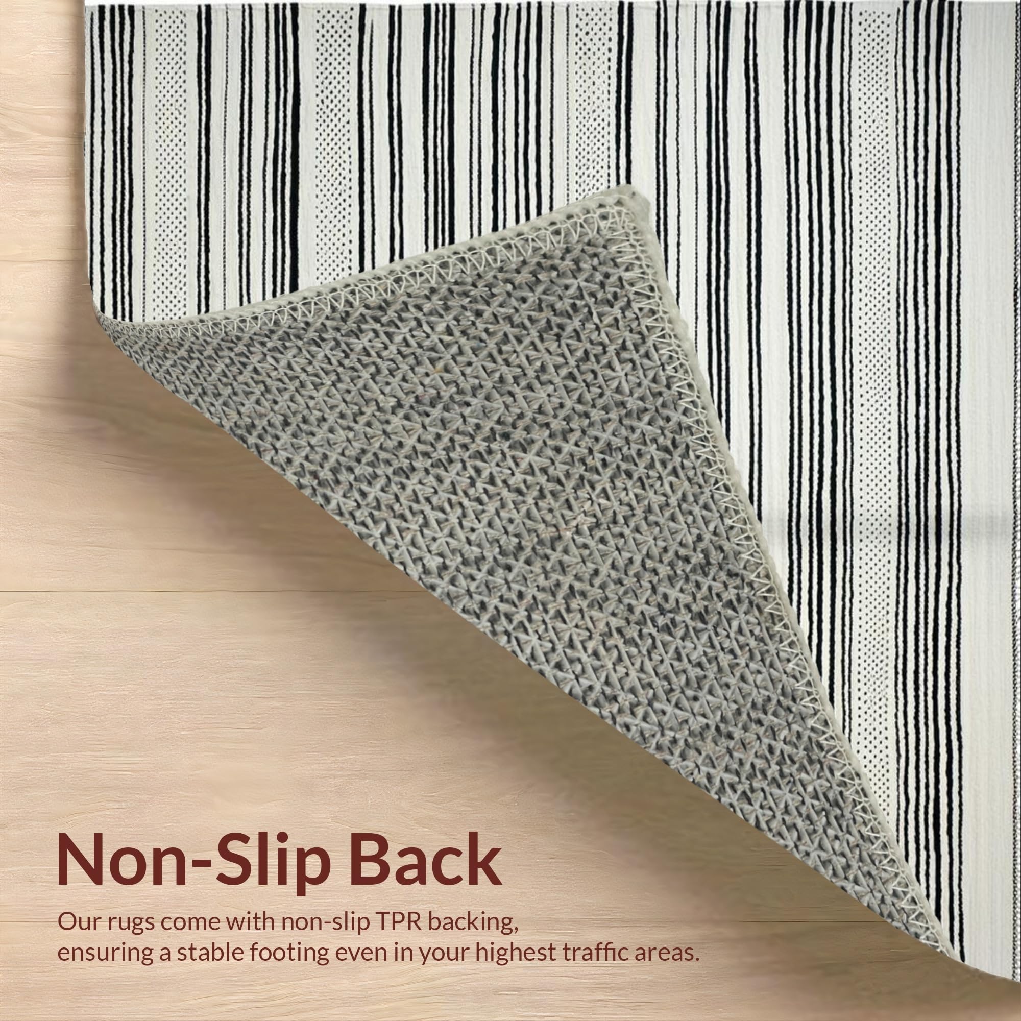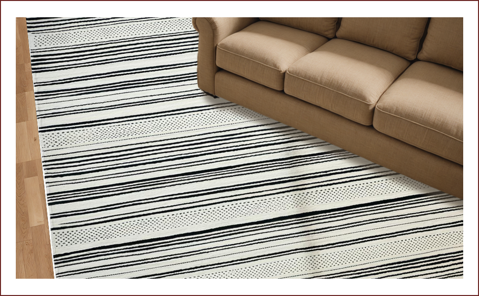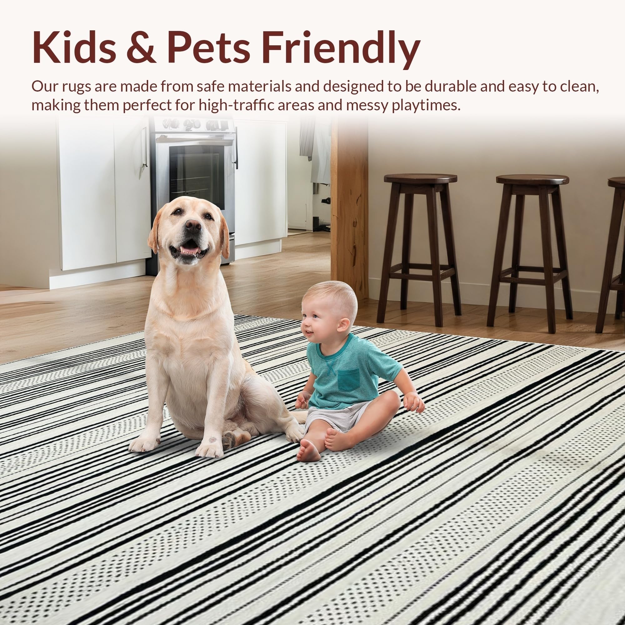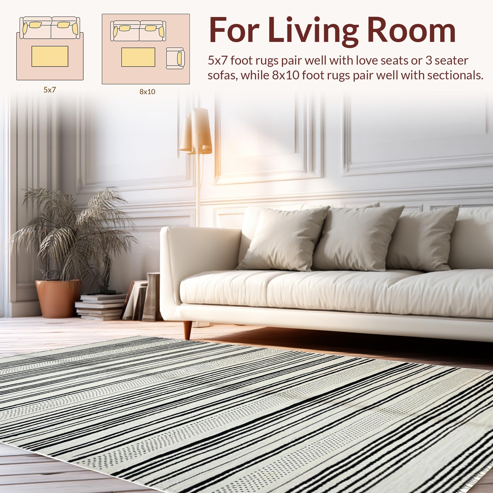 Ultra Soft Area Rug, Non Slip, Stain Resistant, Washable Area Rugs for Living Room, Bedroom, Contemporary Striped Monochrome Aesthetic(Beige) Overview: