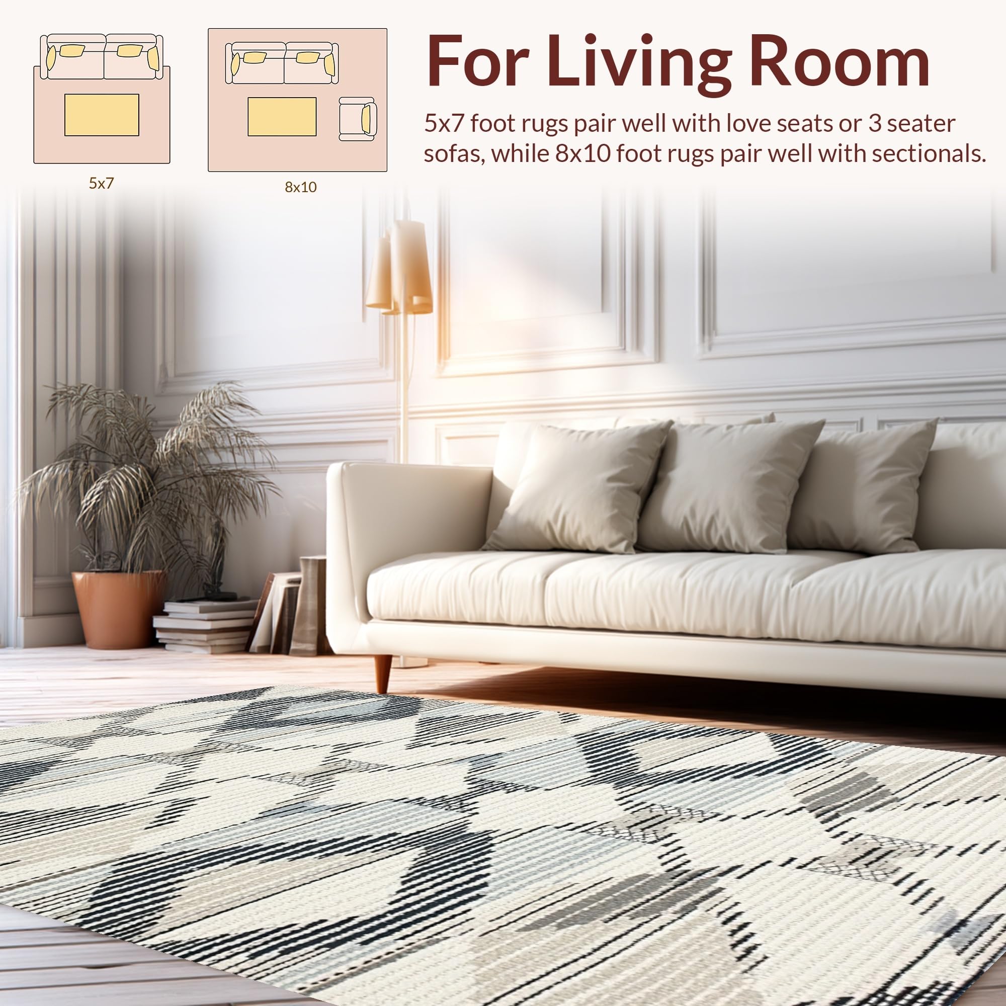 Ultra Soft Area Rug, Non Slip, Stain Resistant, Washable Area Rugs for Living Room, Bedroom, Contemporary Striped Neutral Tones(Beige) Overview: