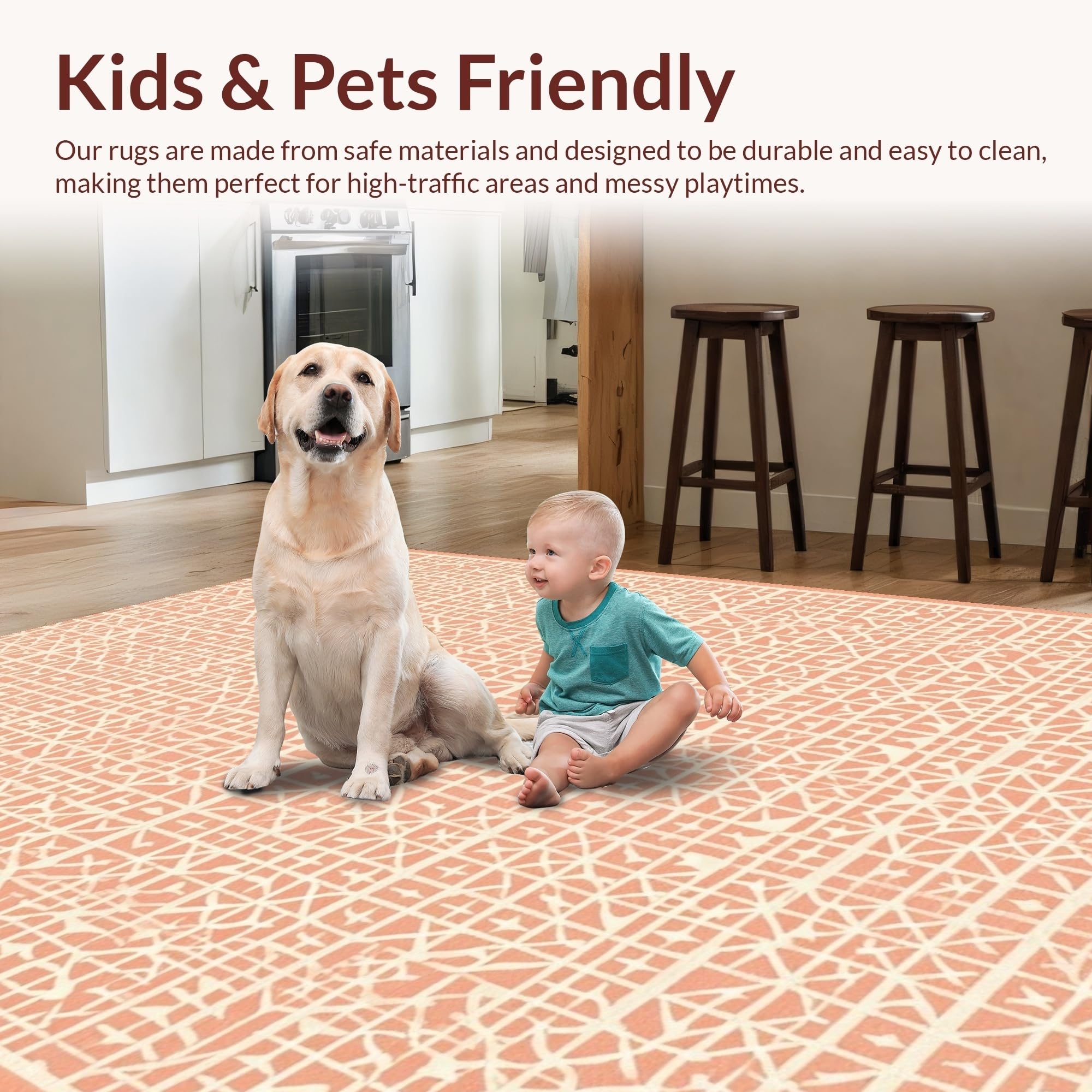 Ultra Soft Area Rug, Non Slip, Stain Resistant, Washable Area Rugs for Living Room, Bedroom, Contemporary Subtle Floral Arrangement(Pink) Overview: