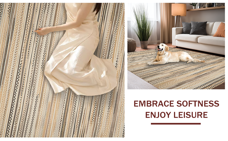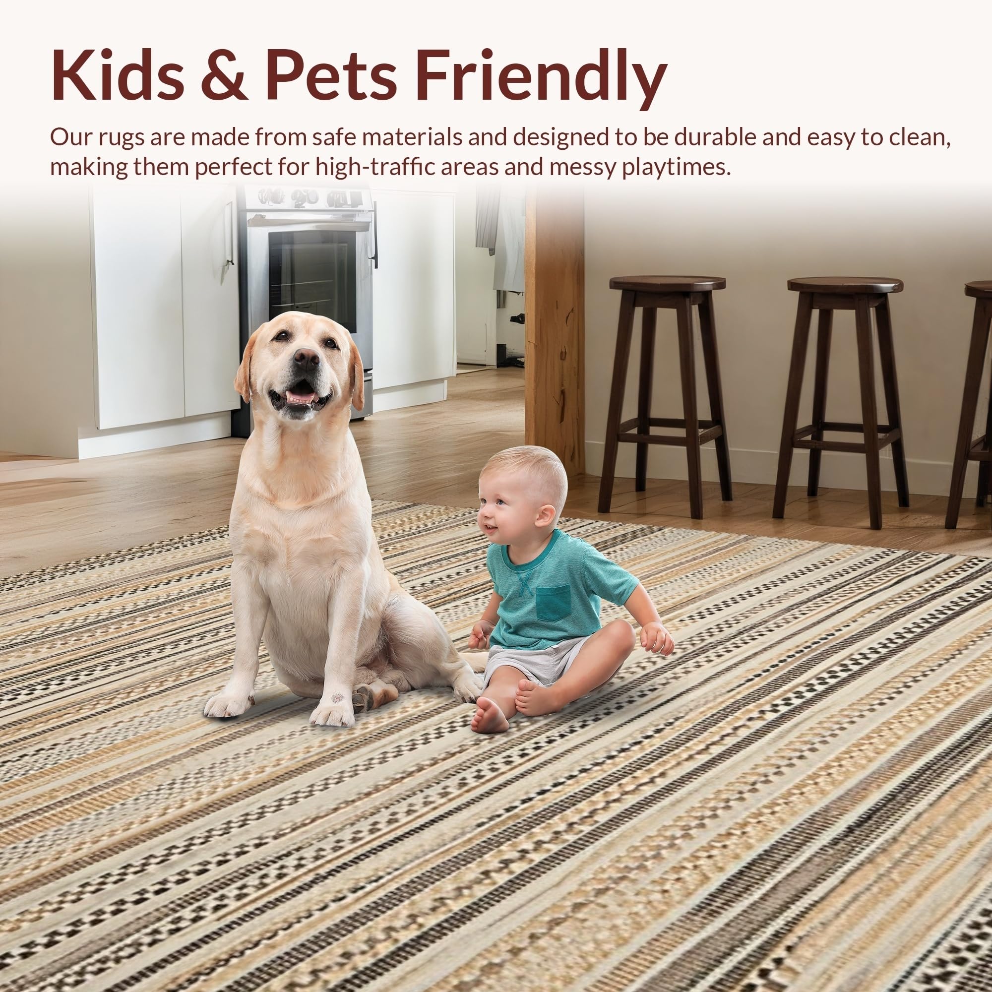 Ultra Soft Area Rug, Non Slip, Stain Resistant, Washable Area Rugs for Living Room, Bedroom, Contemporary Tan and Beige Fusion(Beige) Overview: