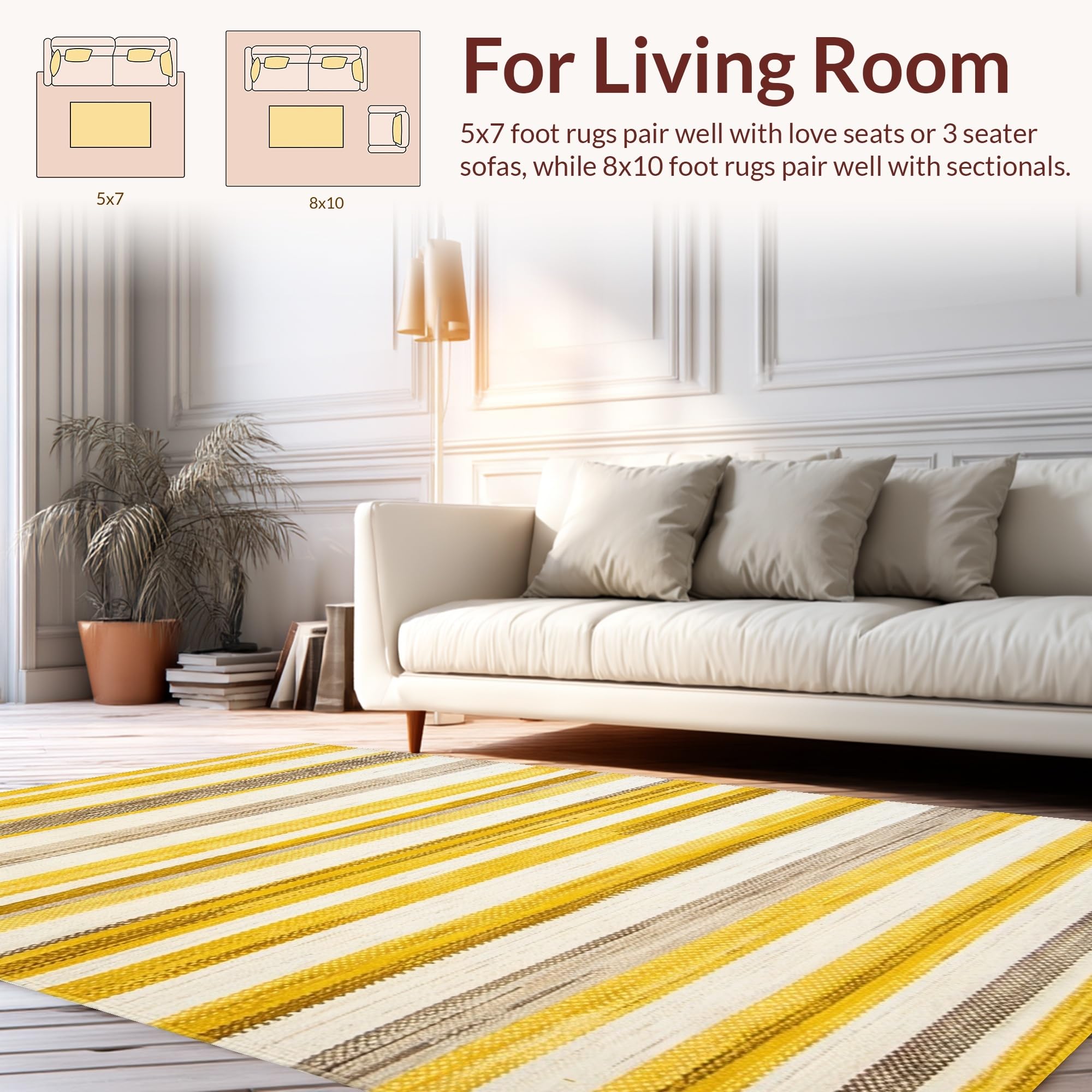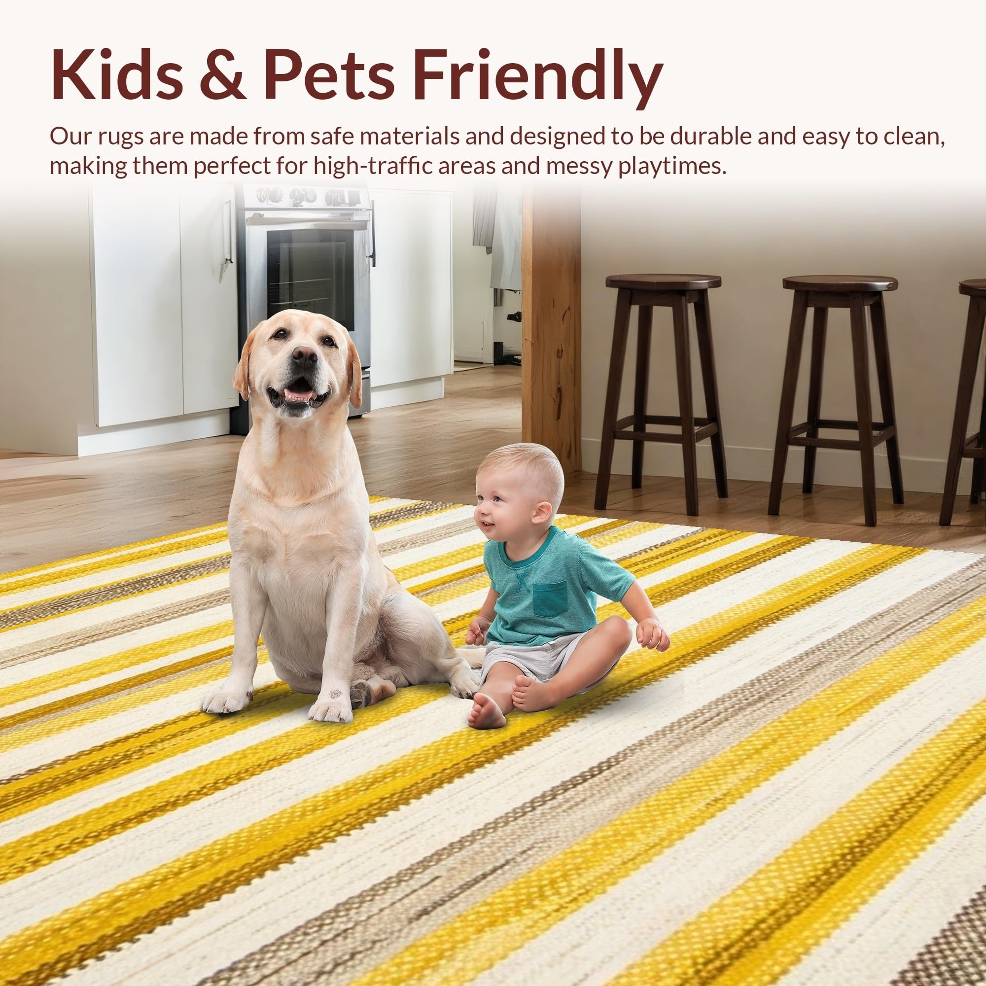 Ultra Soft Area Rug, Non Slip, Stain Resistant, Washable Area Rugs for Living Room, Bedroom, Contemporary Textured Patterned Look(Yellow) Overview: