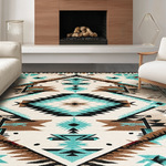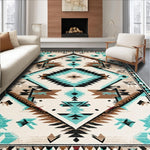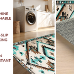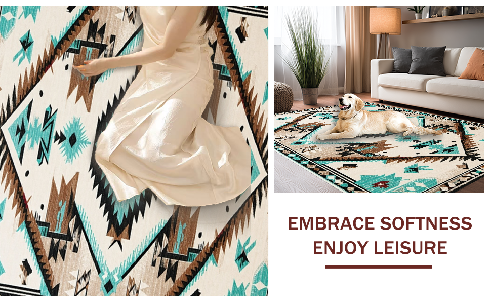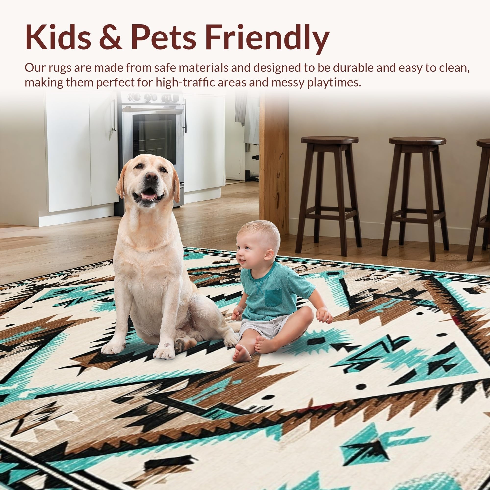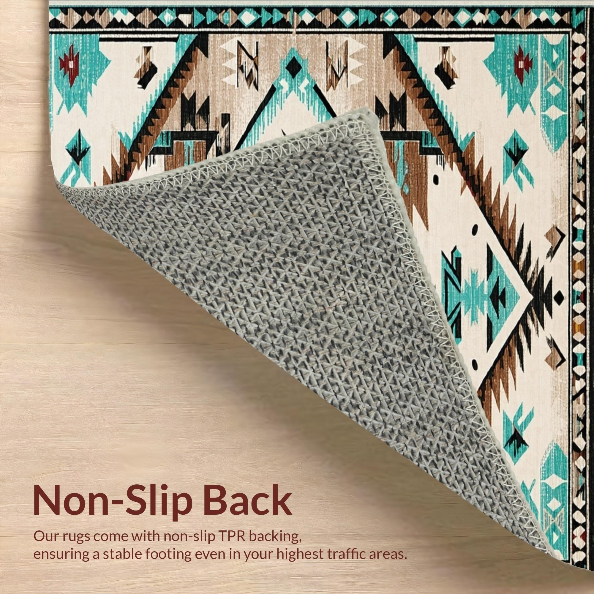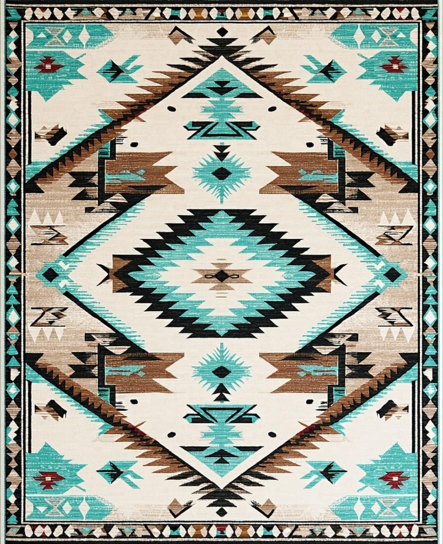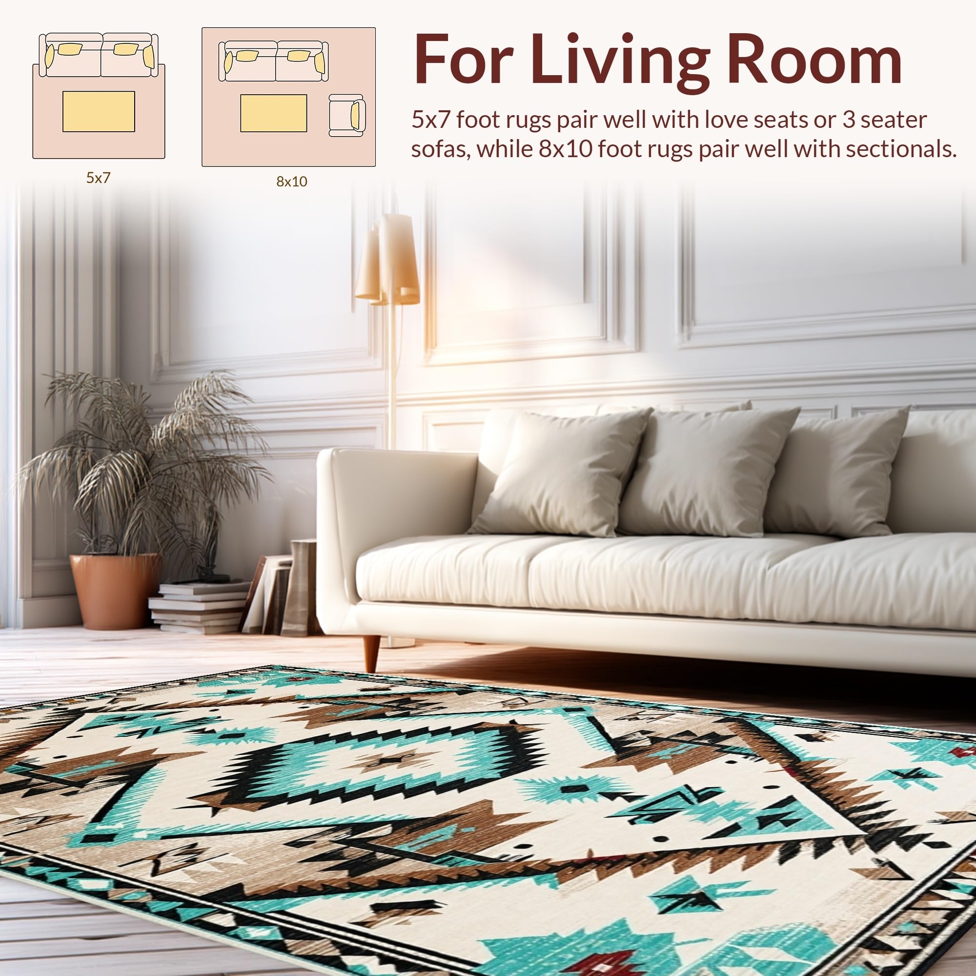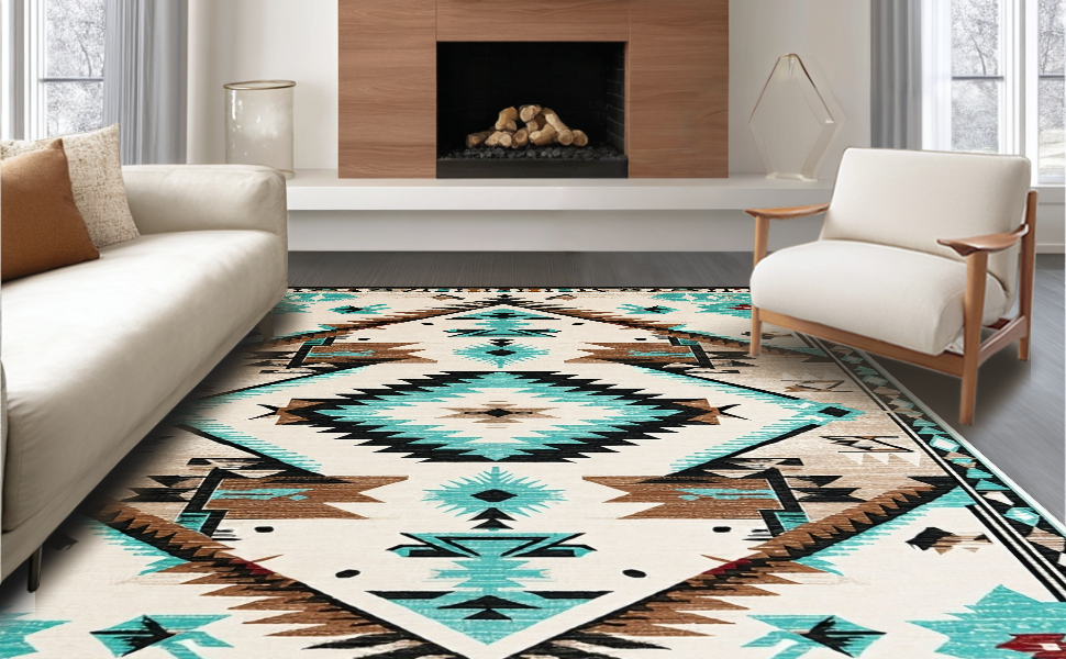 Ultra Soft Area Rug, Non Slip, Stain Resistant, Washable Area Rugs for Living Room, Bedroom, Contemporary Turquoise Tribal Elements(Beige) Overview: