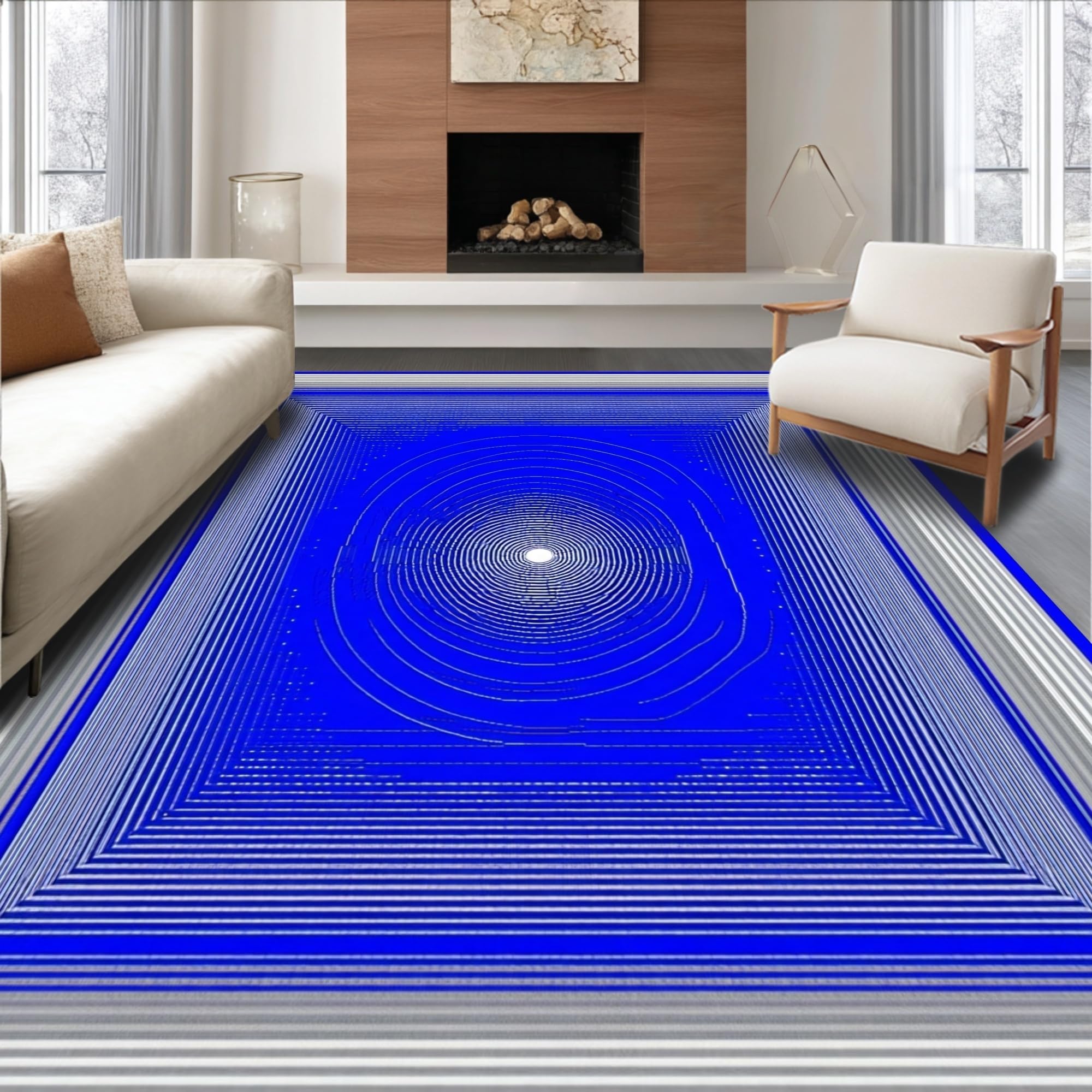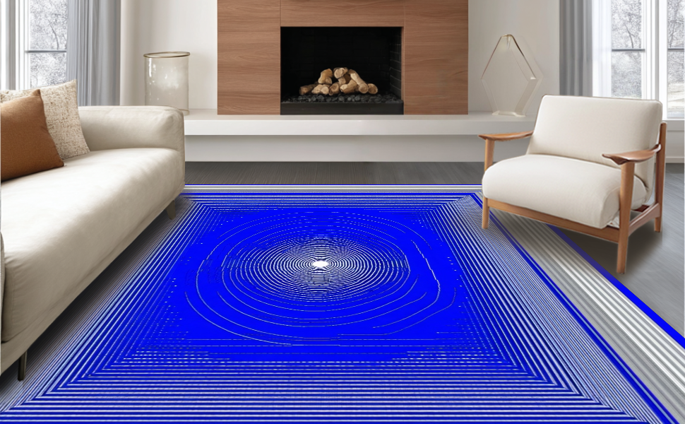 Ultra Soft Area Rug, Non Slip, Stain Resistant, Washable Area Rugs for Living Room, Bedroom, Contemporary Twisted Vortex Style(Blue) Overview: