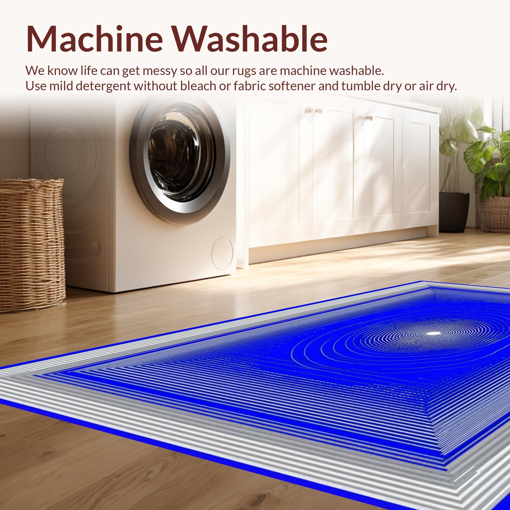 - Machine Washable: Our rugs can be easily thrown in the wash machine.