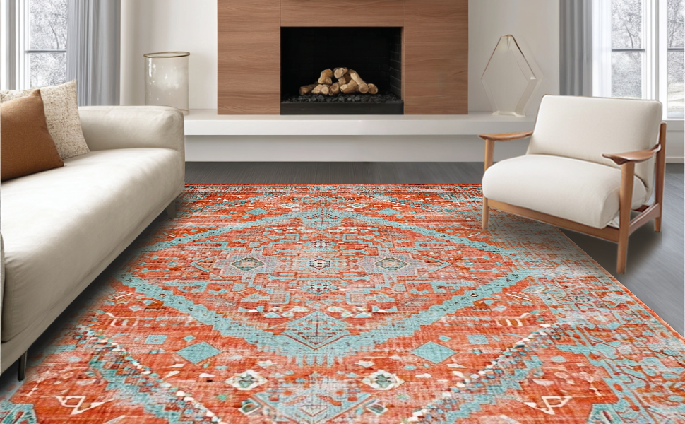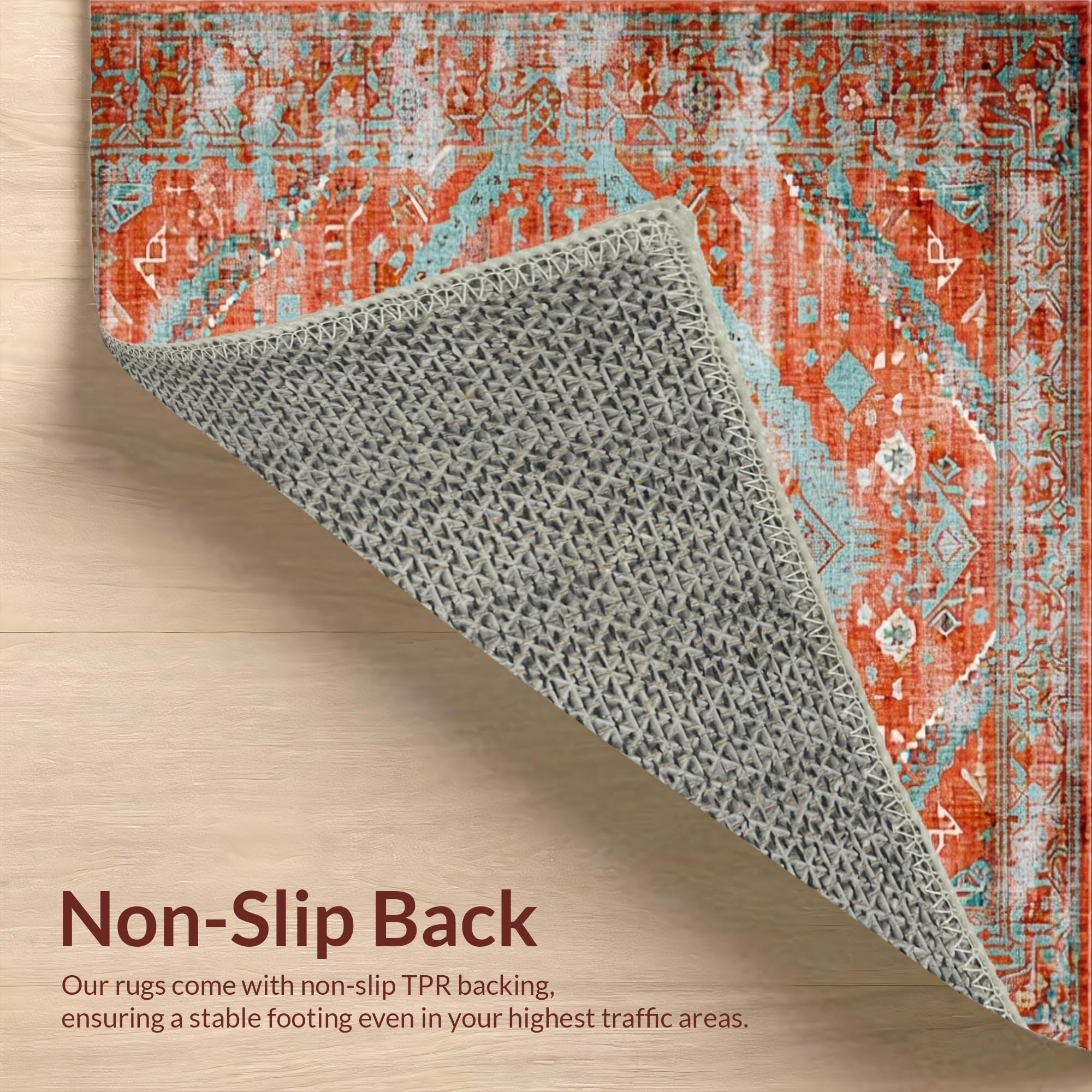 Ultra Soft Area Rug, Non Slip, Stain Resistant, Washable Area Rugs for Living Room, Bedroom, Contemporary Vibrant Floral Design(Red) Overview: