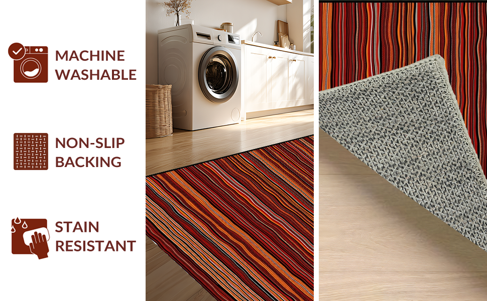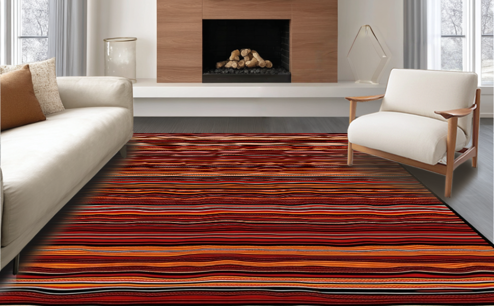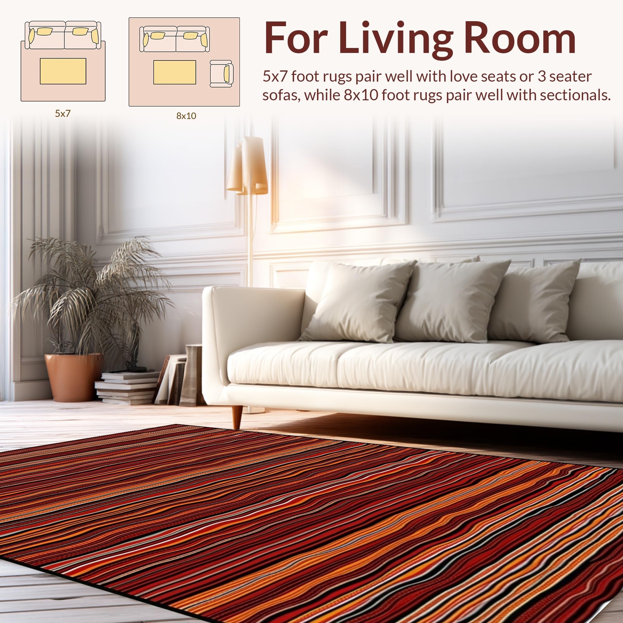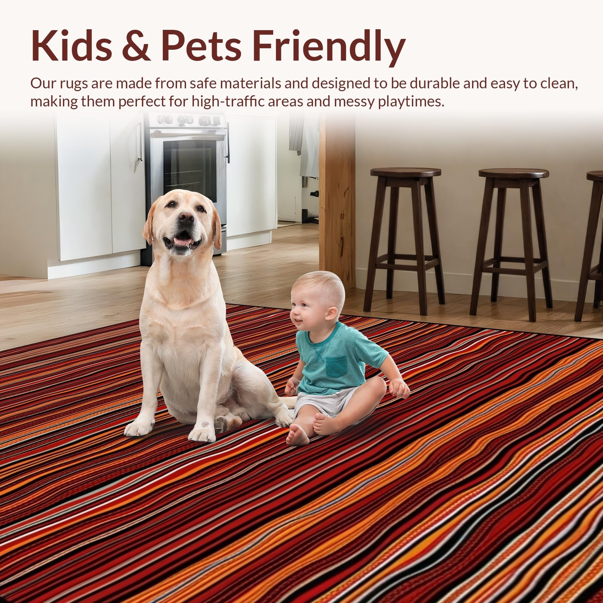 Ultra Soft Area Rug, Non Slip, Stain Resistant, Washable Area Rugs for Living Room, Bedroom, Contemporary Vivid Stripe Blend(Red) Overview: