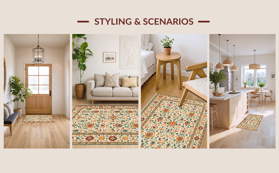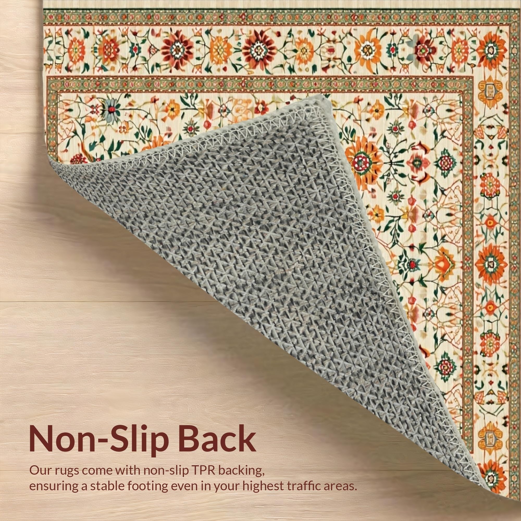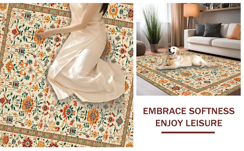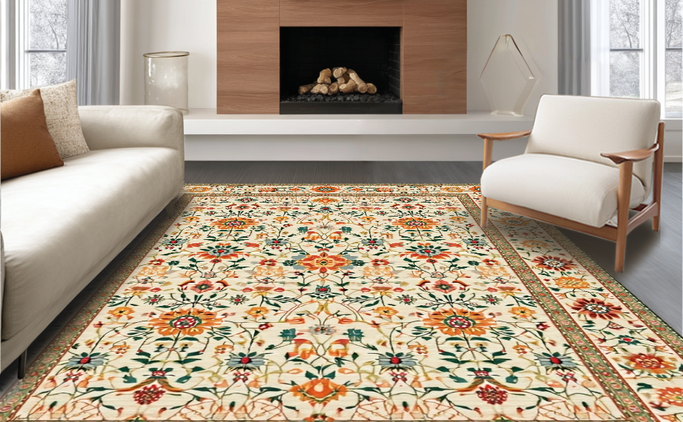Ultra Soft Area Rug, Non Slip, Stain Resistant, Washable Area Rugs for Living Room, Bedroom, Contemporary Warm Floral Fusion(Beige) Overview: