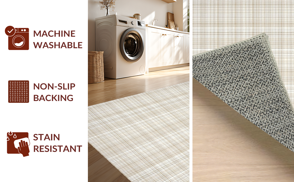 Ultra Soft Area Rug, Non Slip, Stain Resistant, Washable Area Rugs for Living Room, Bedroom, Contemporary Warm Tartan Texture(Beige) Overview: