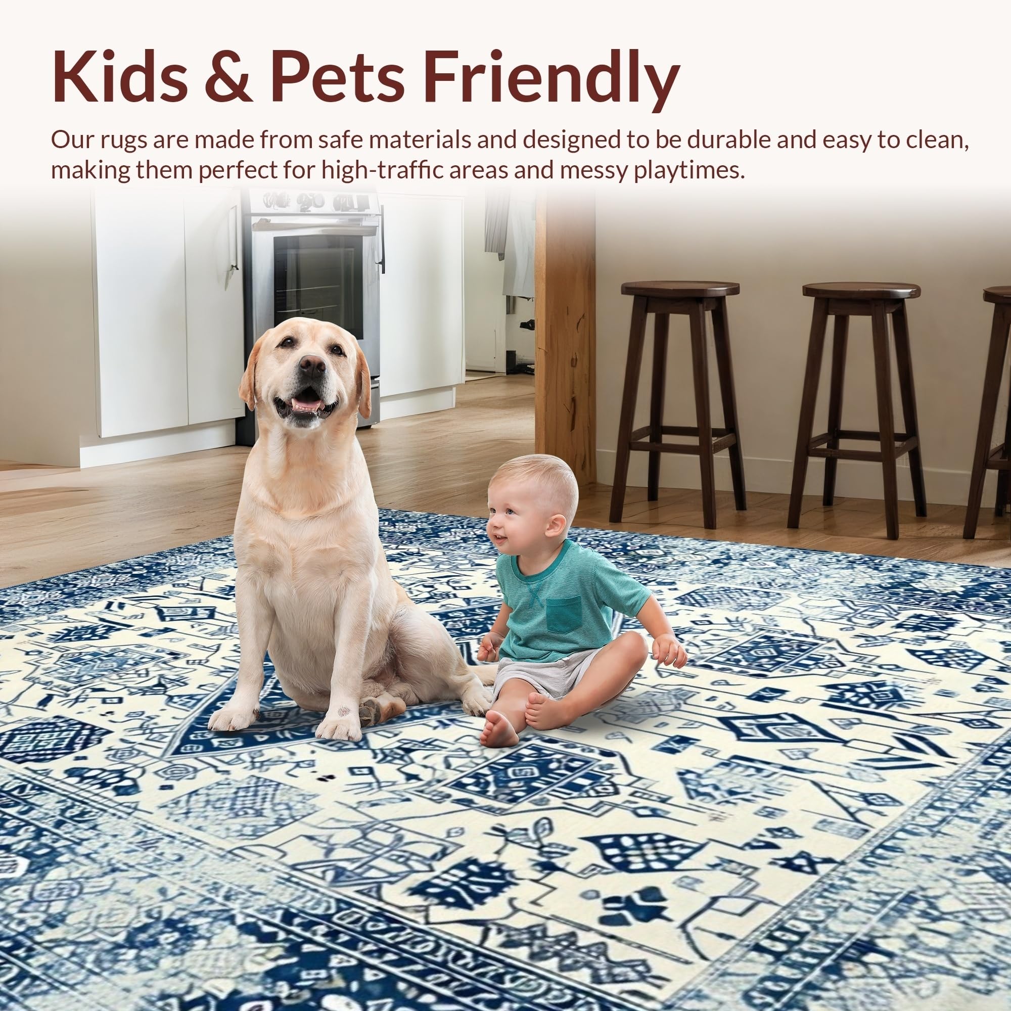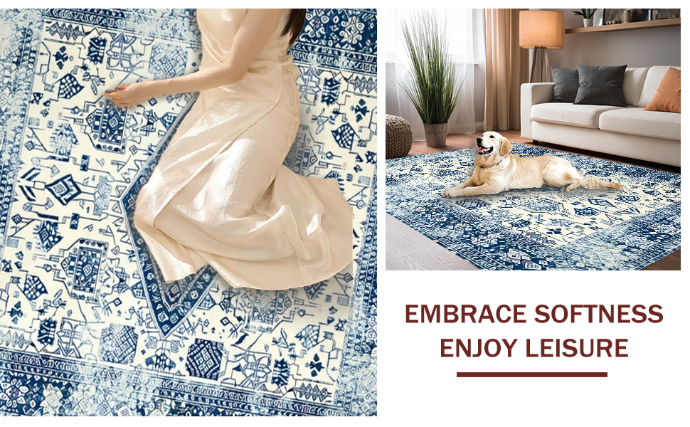 Ultra Soft Area Rug, Non Slip, Stain Resistant, Washable Area Rugs for Living Room, Bedroom, Contemporary Watercolor Dip Dye Delight(Blue) Overview: