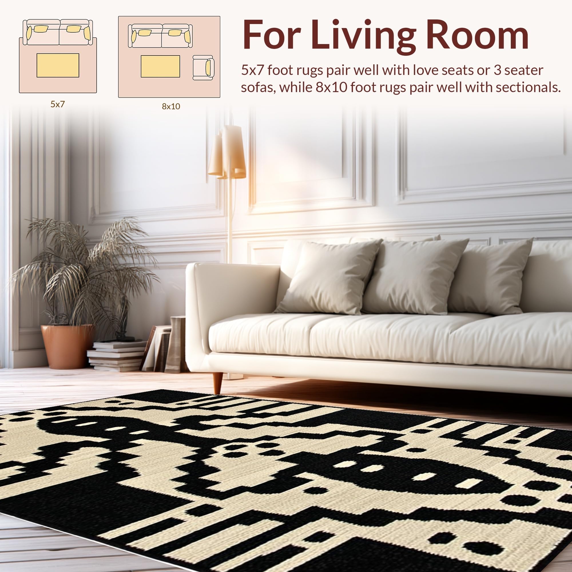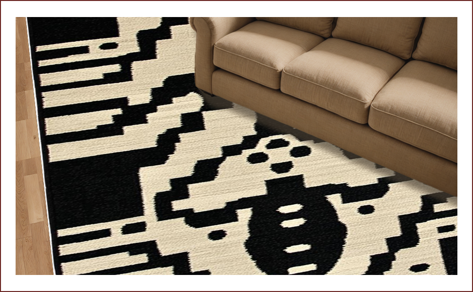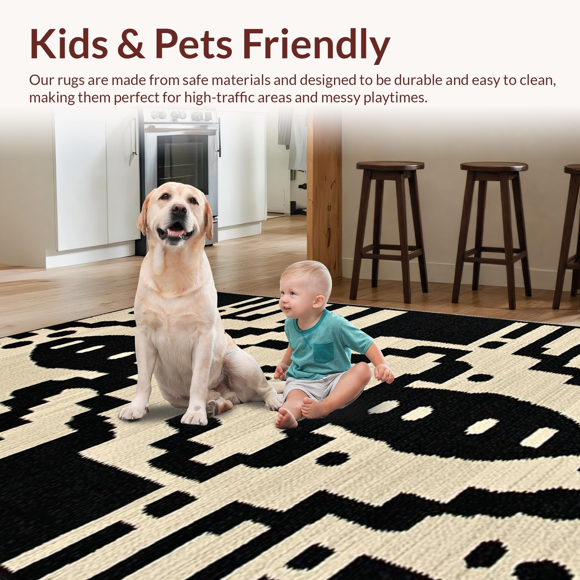 Ultra Soft Area Rug, Non Slip, Stain Resistant, Washable Area Rugs for Living Room, Bedroom, Contrasting Striped Okapi Motif(Beige) Overview: