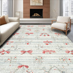 Ultra Soft Area Rug, Non Slip, Stain Resistant, Washable Area Rugs for Living Room, Bedroom, Coquette Pink Bow with Scarlet Berry Boho Area Rug(Gray) Overview: