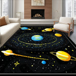 Flatwoven High Traffic Area Rug, Cosmic Colorful Celestial Design, Non Slip, Stain Resistant, Washable Area Rugs for Living Room, Bedroom (Black) Overview: