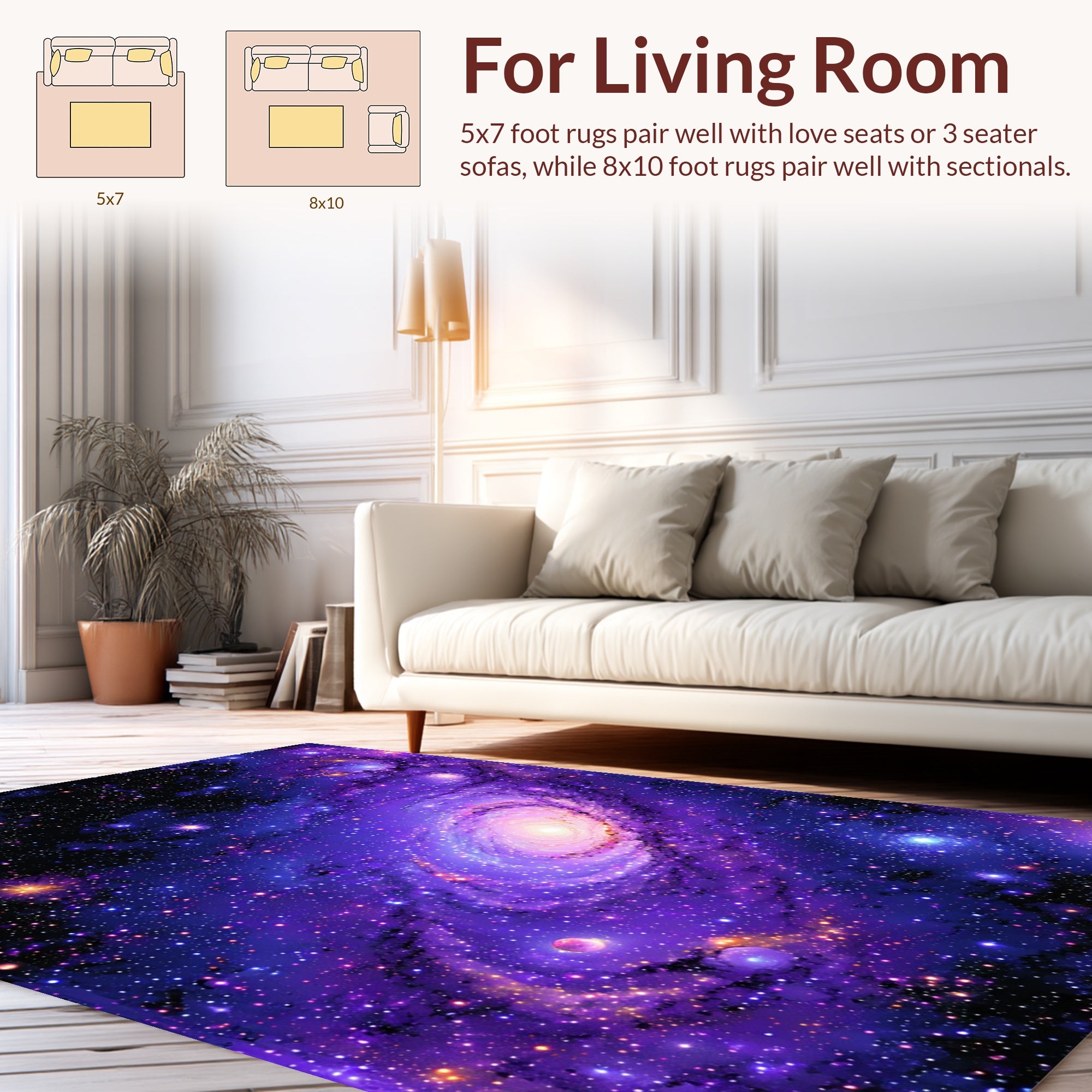 Flatwoven High Traffic Area Rug, Cosmic Vibrant Celestial, Non Slip, Stain Resistant, Washable Area Rugs for Living Room, Bedroom (Purple) Overview: