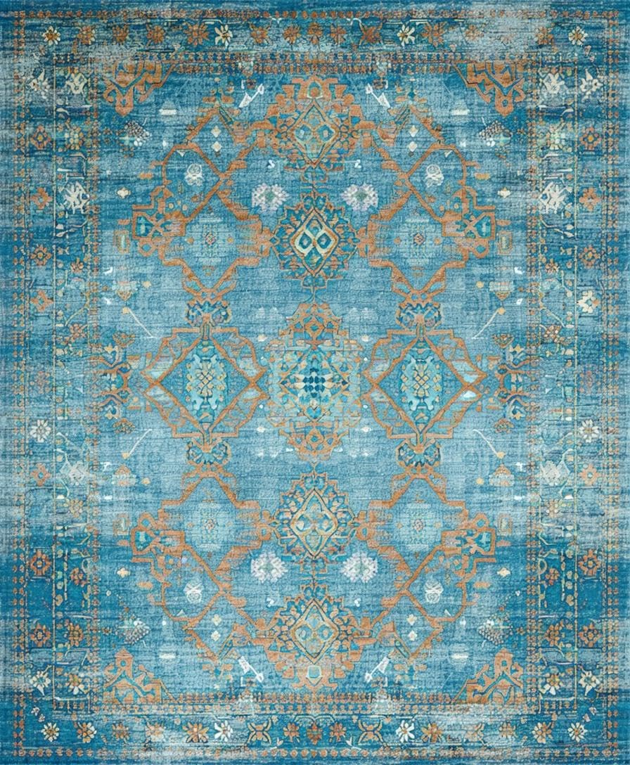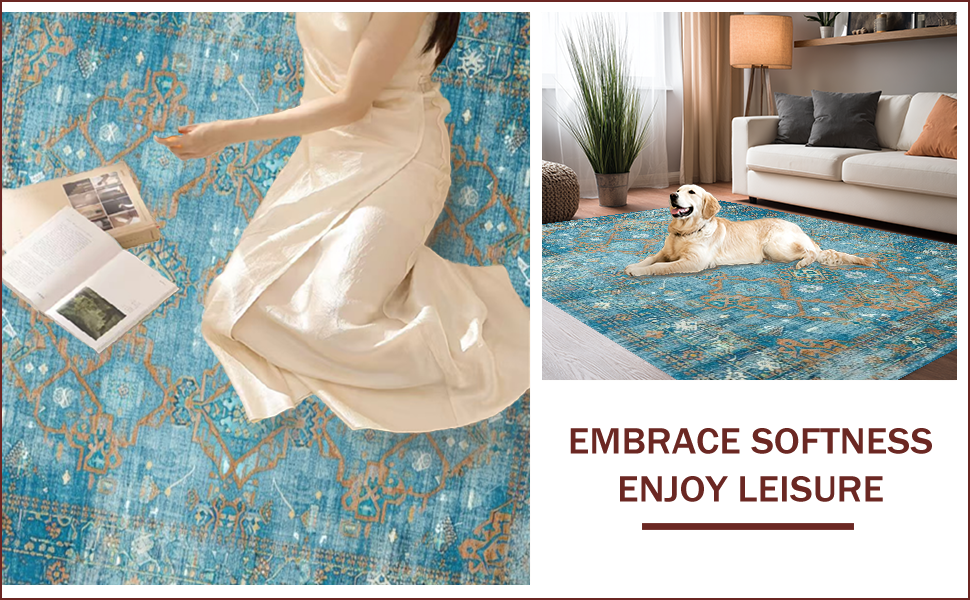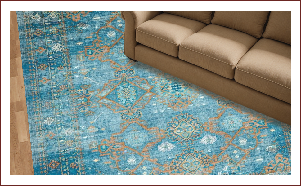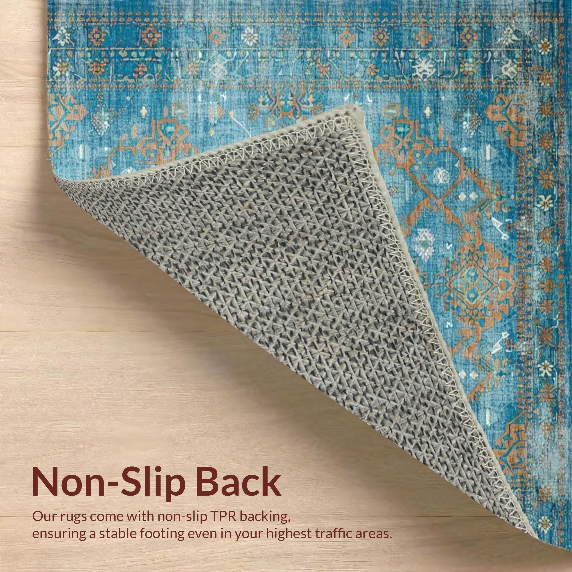 Ultra Soft Area Rug, Non Slip, Stain Resistant, Washable Area Rugs for Living Room, Bedroom, Cozy Blue Tone Trellis Design(Blue) Overview: