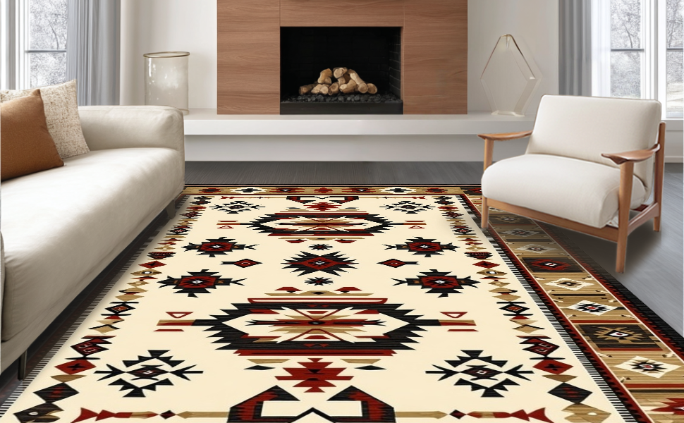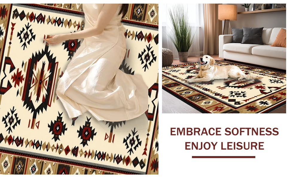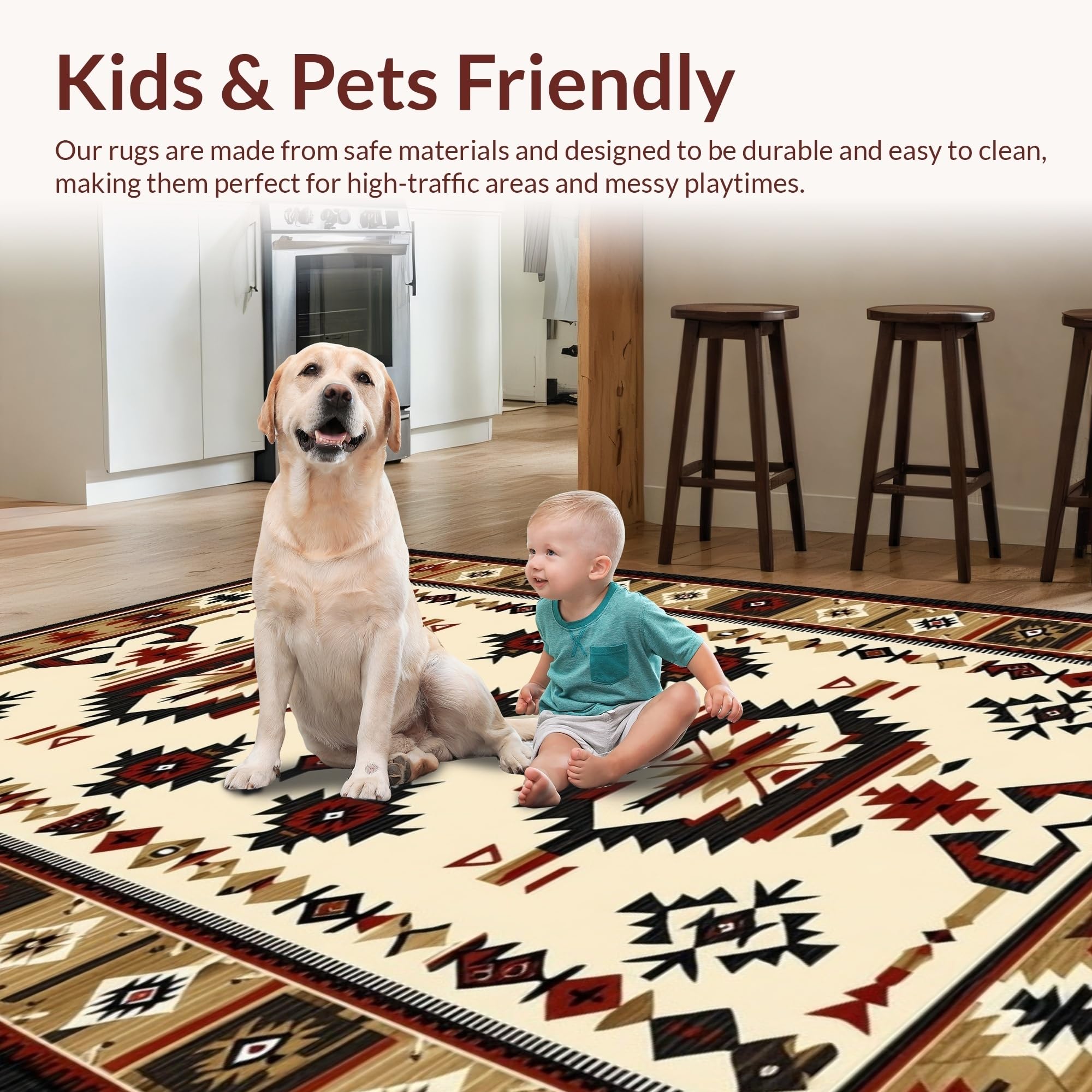 Ultra Soft Area Rug, Non Slip, Stain Resistant, Washable Area Rugs for Living Room, Bedroom, Cozy Buffalo Themed Decor(Beige) Overview:
