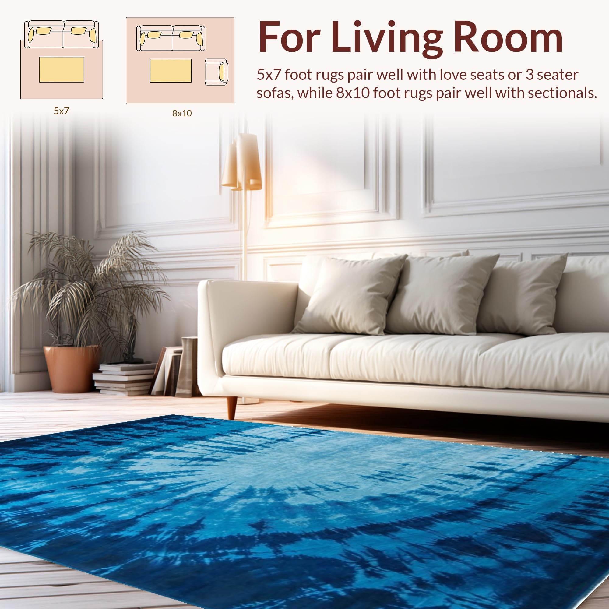 Ultra Soft Area Rug, Non Slip, Stain Resistant, Washable Area Rugs for Living Room, Bedroom, Cozy Dark Blue Abstract Motif(Blue) Overview: