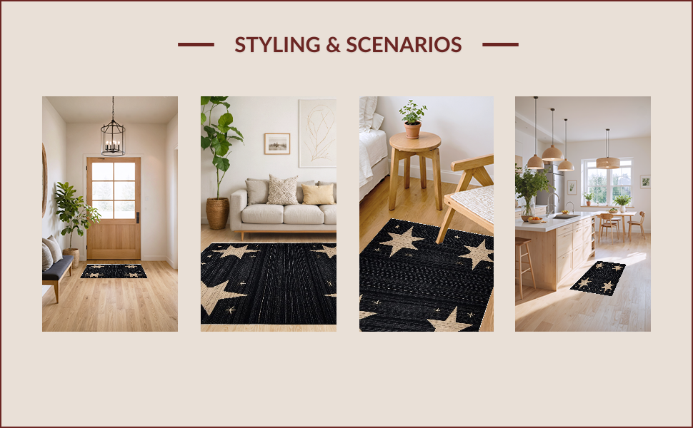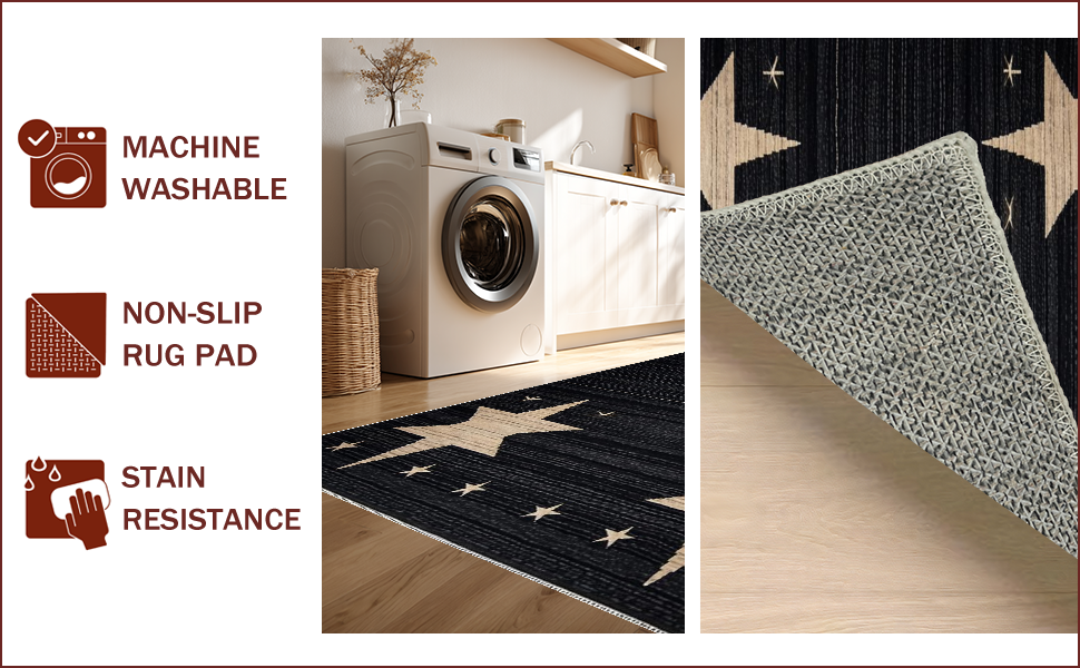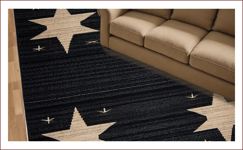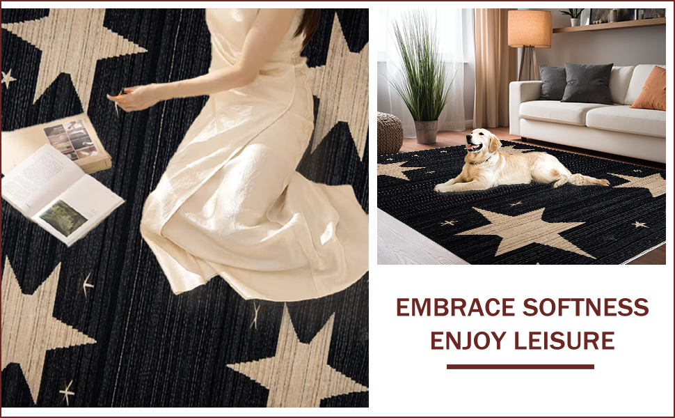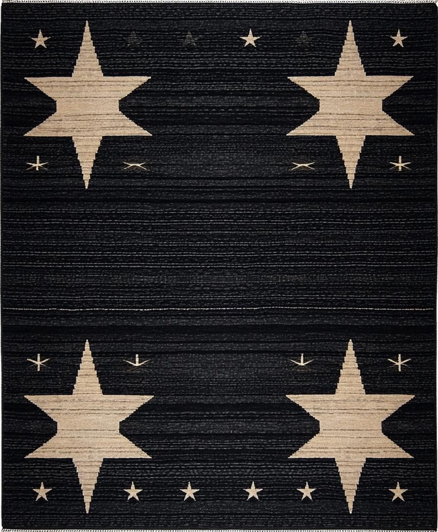 Ultra Soft Area Rug, Non Slip, Stain Resistant, Washable Area Rugs for Living Room, Bedroom, Cozy Dark-Toned Stencil Design(Black) Overview: