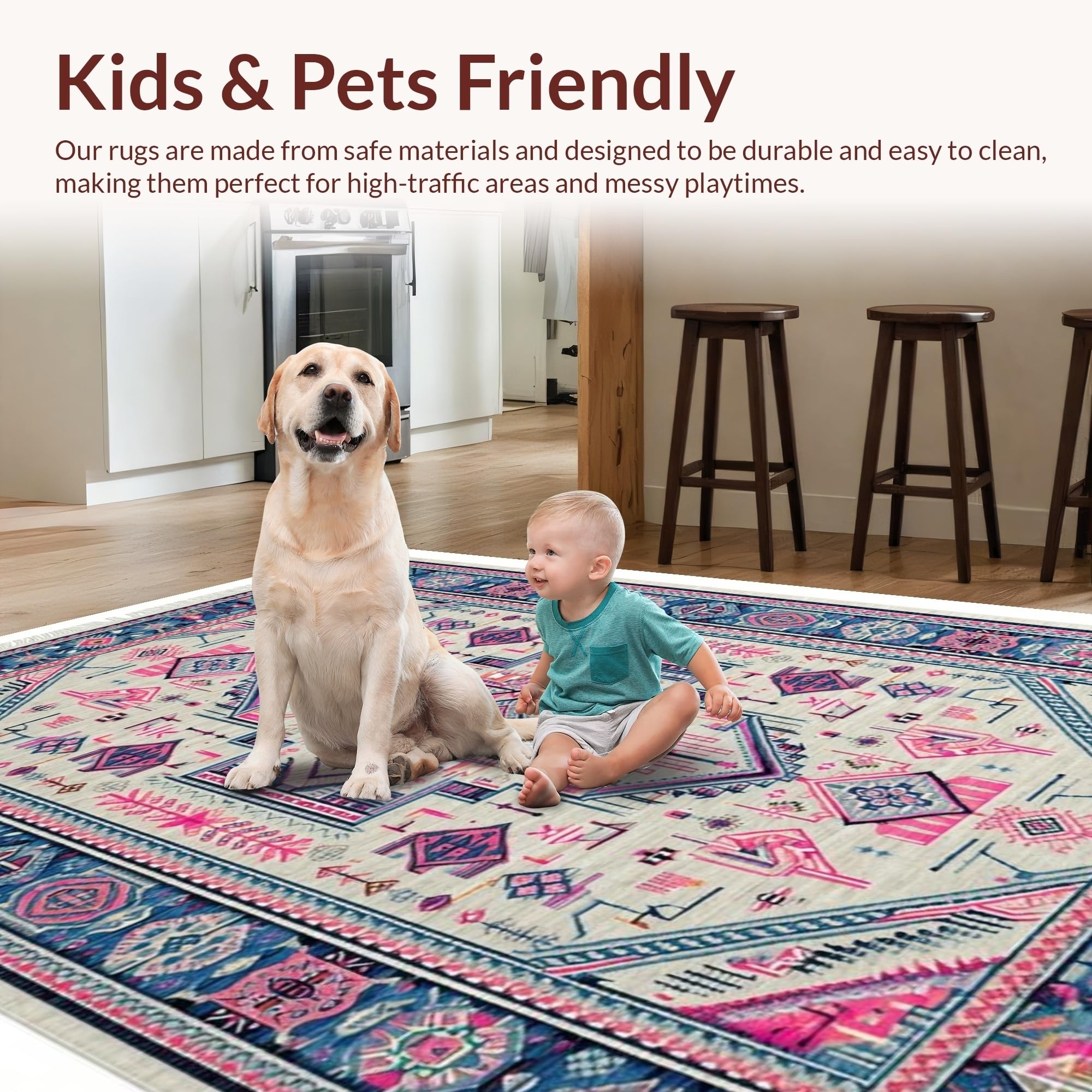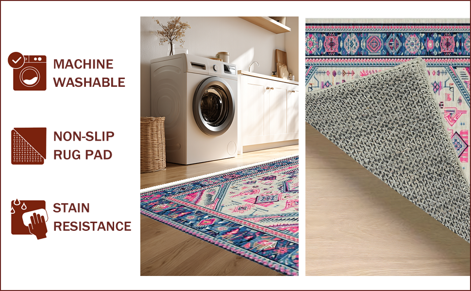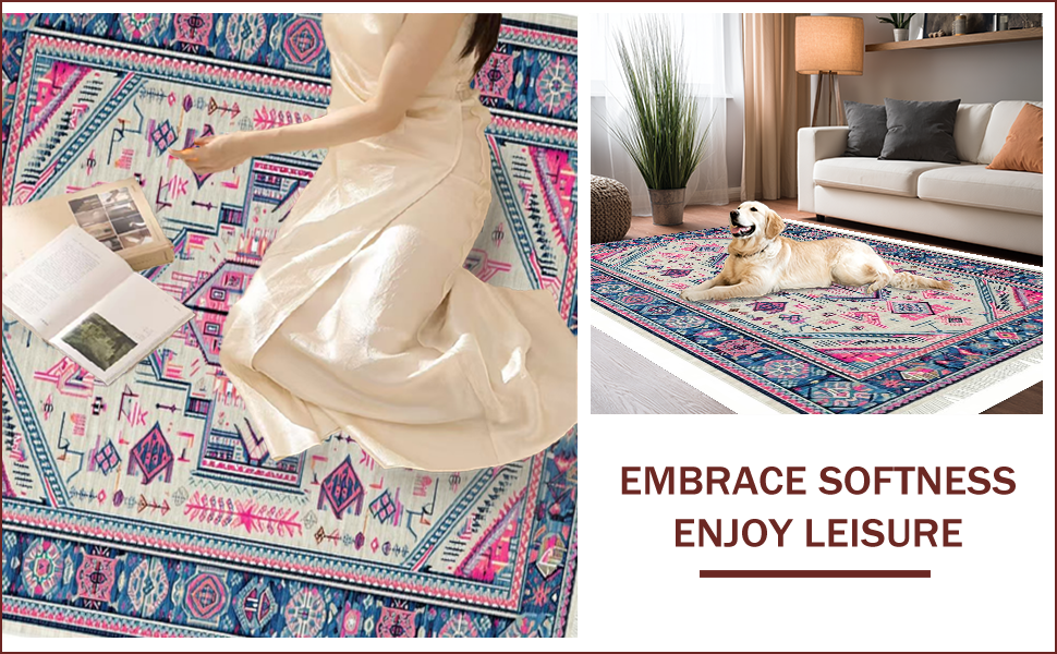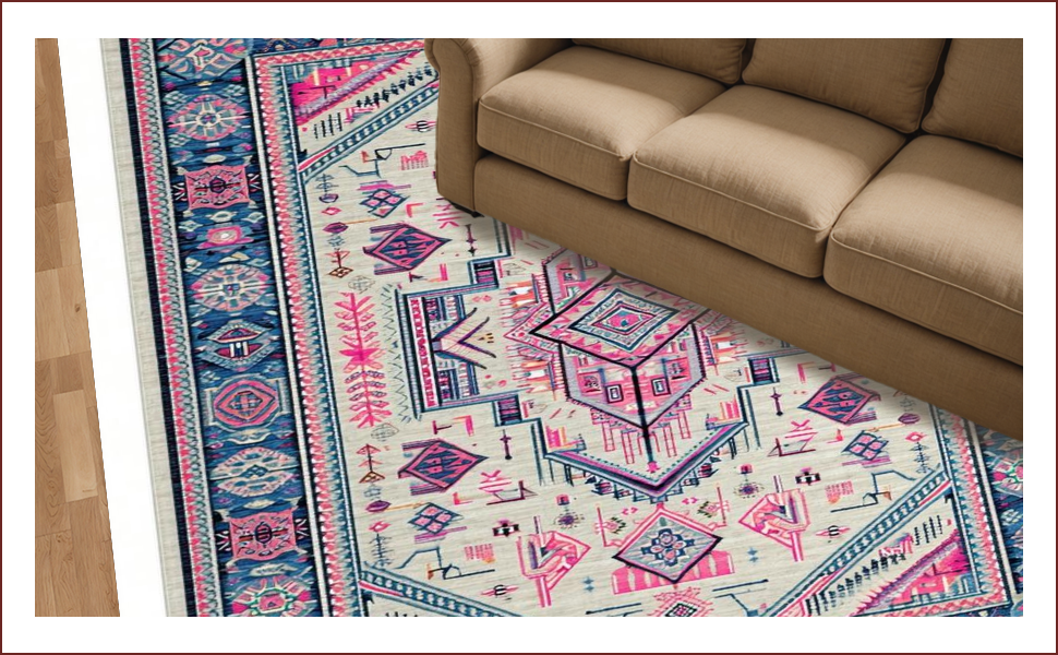 Ultra Soft Area Rug, Non Slip, Stain Resistant, Washable Area Rugs for Living Room, Bedroom, Cozy Earthy Geometric Arrangement(Pink) Overview: