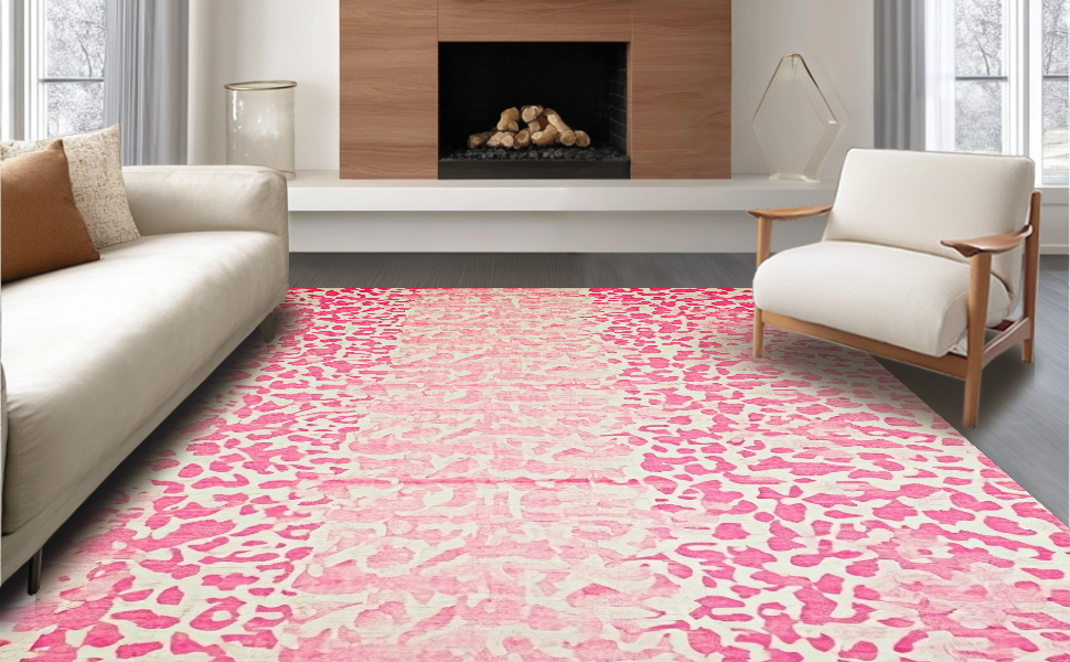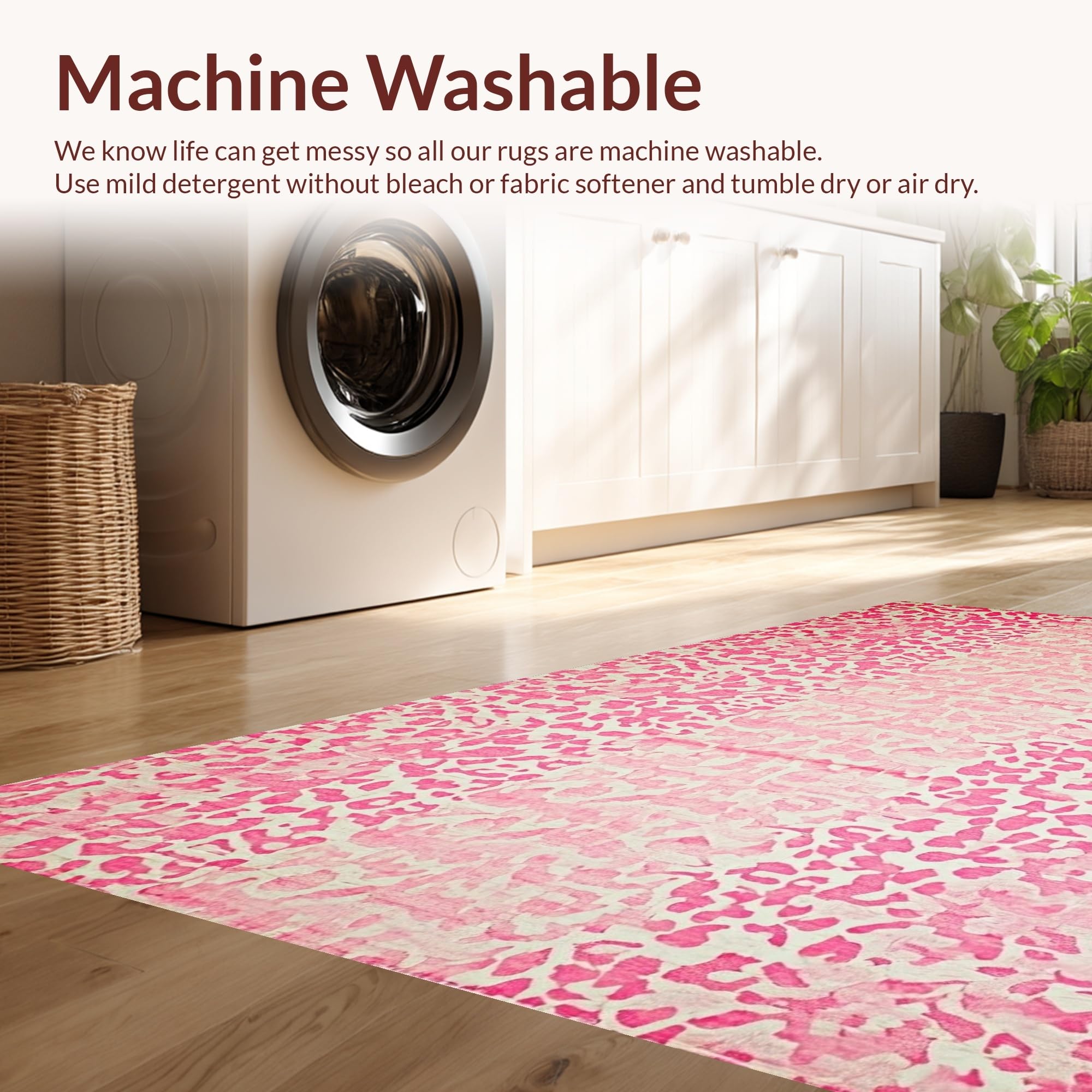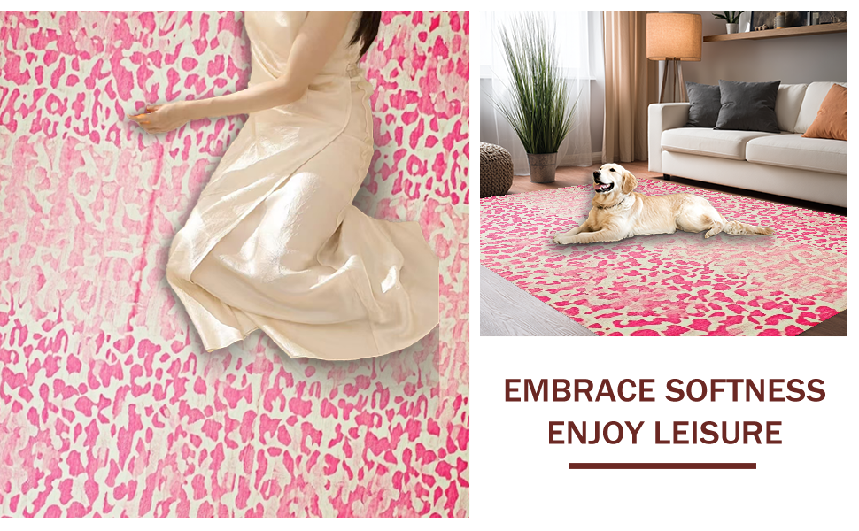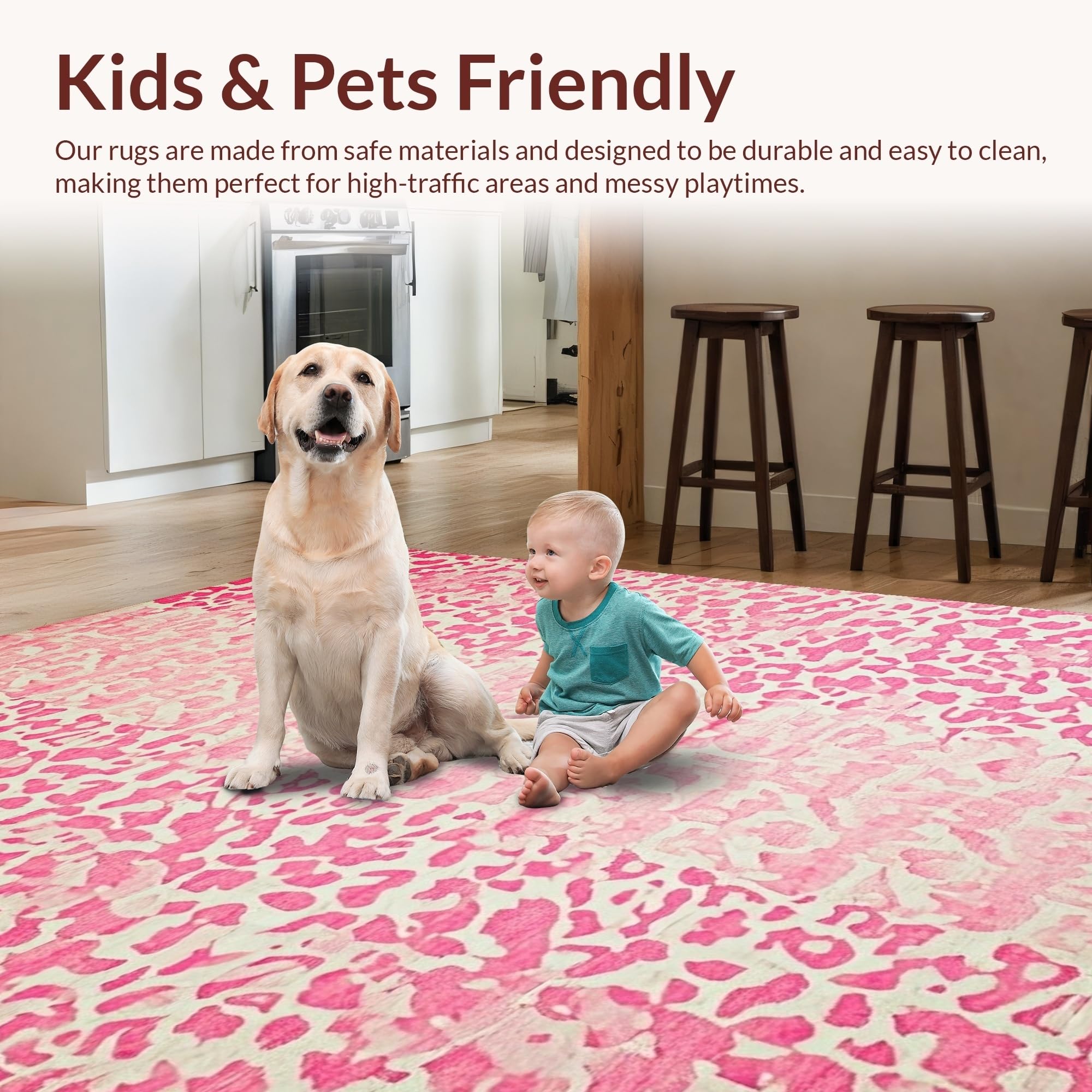 Ultra Soft Area Rug, Non Slip, Stain Resistant, Washable Area Rugs for Living Room, Bedroom, Cozy Earthy Safari Print Charm(Pink) Overview: