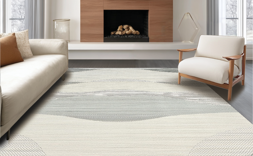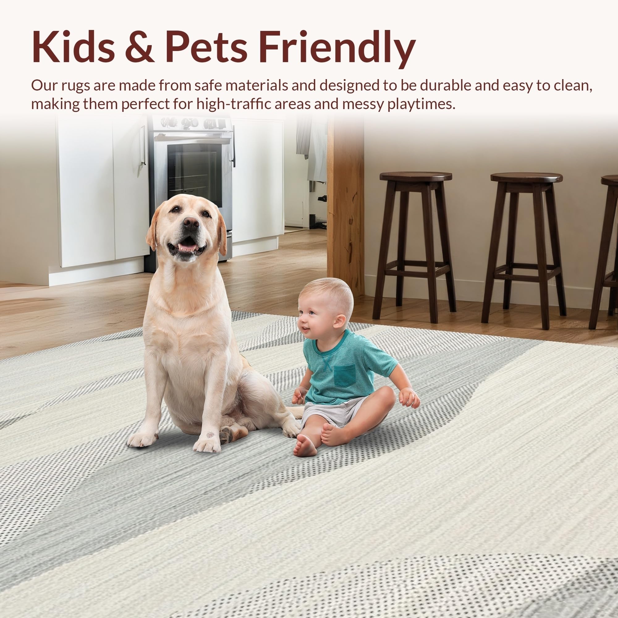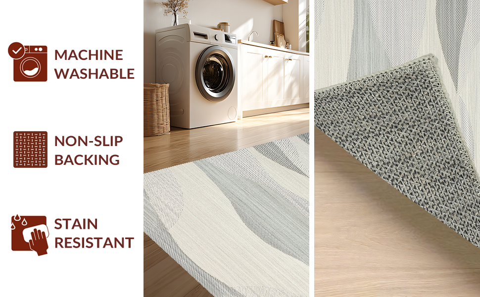 Ultra Soft Area Rug, Non Slip, Stain Resistant, Washable Area Rugs for Living Room, Bedroom, Cozy Earthy Striped Visual Appeal(Gray) Overview: