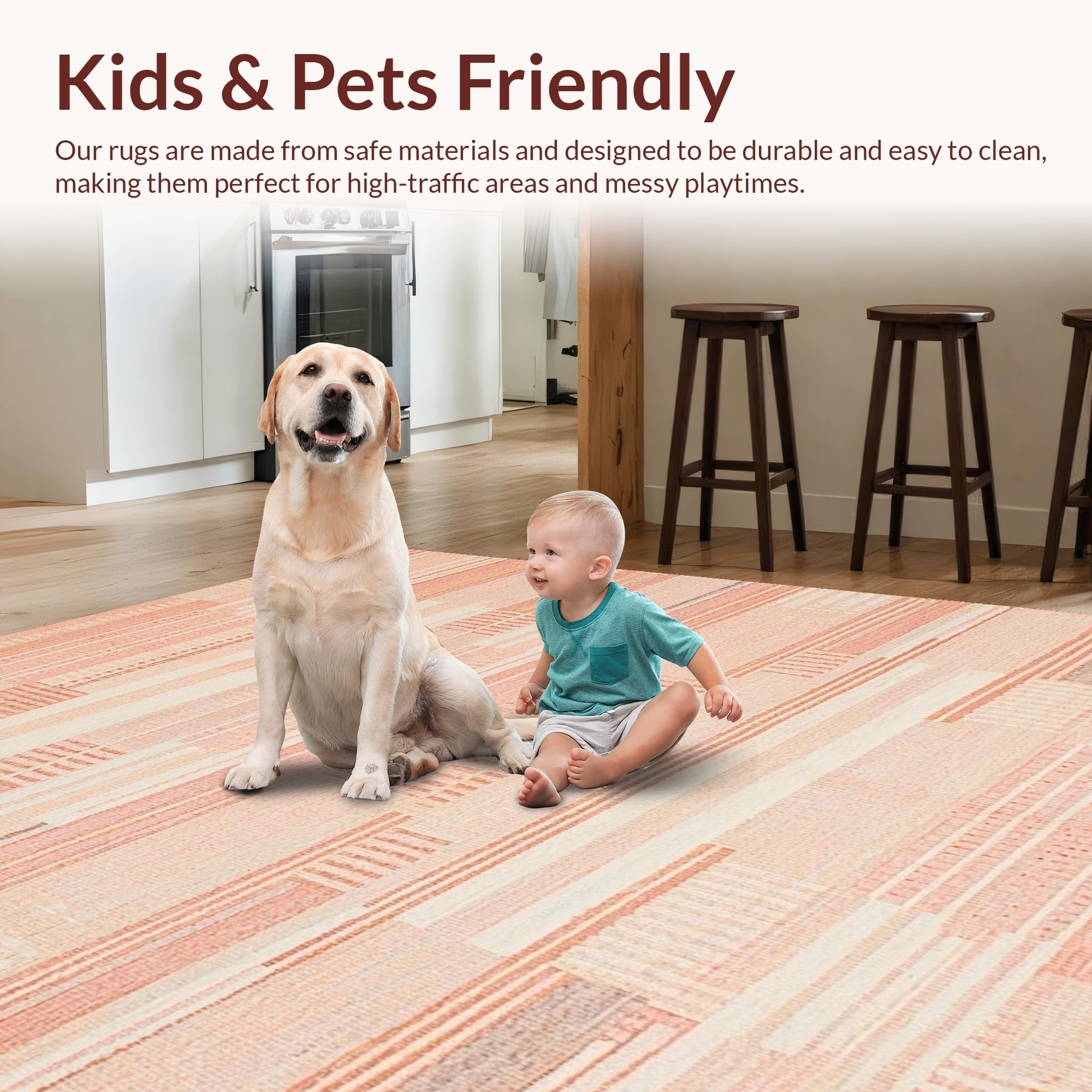Ultra Soft Area Rug, Non Slip, Stain Resistant, Washable Area Rugs for Living Room, Bedroom, Cozy Earthy Textured Diamond Design(Pink) Overview:
