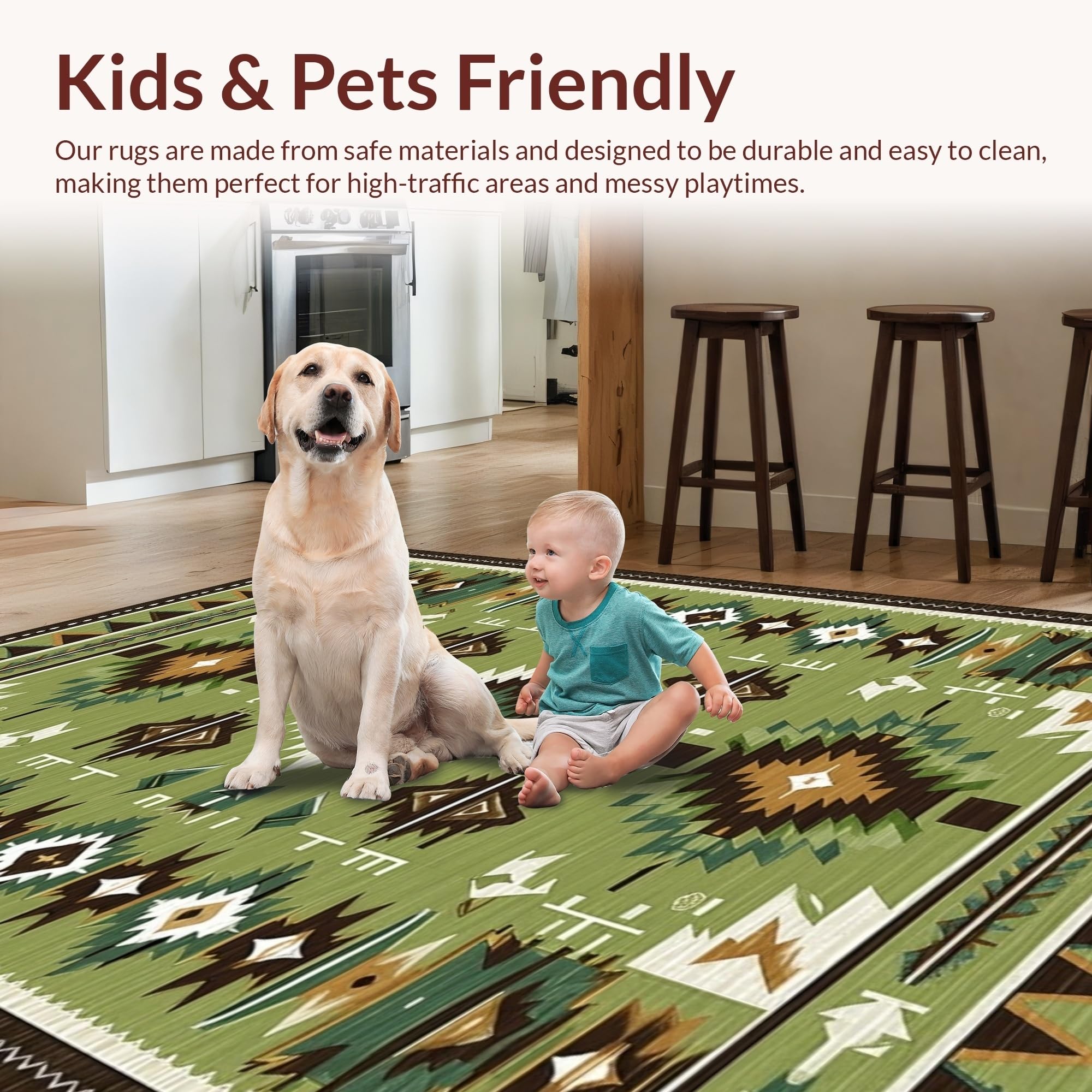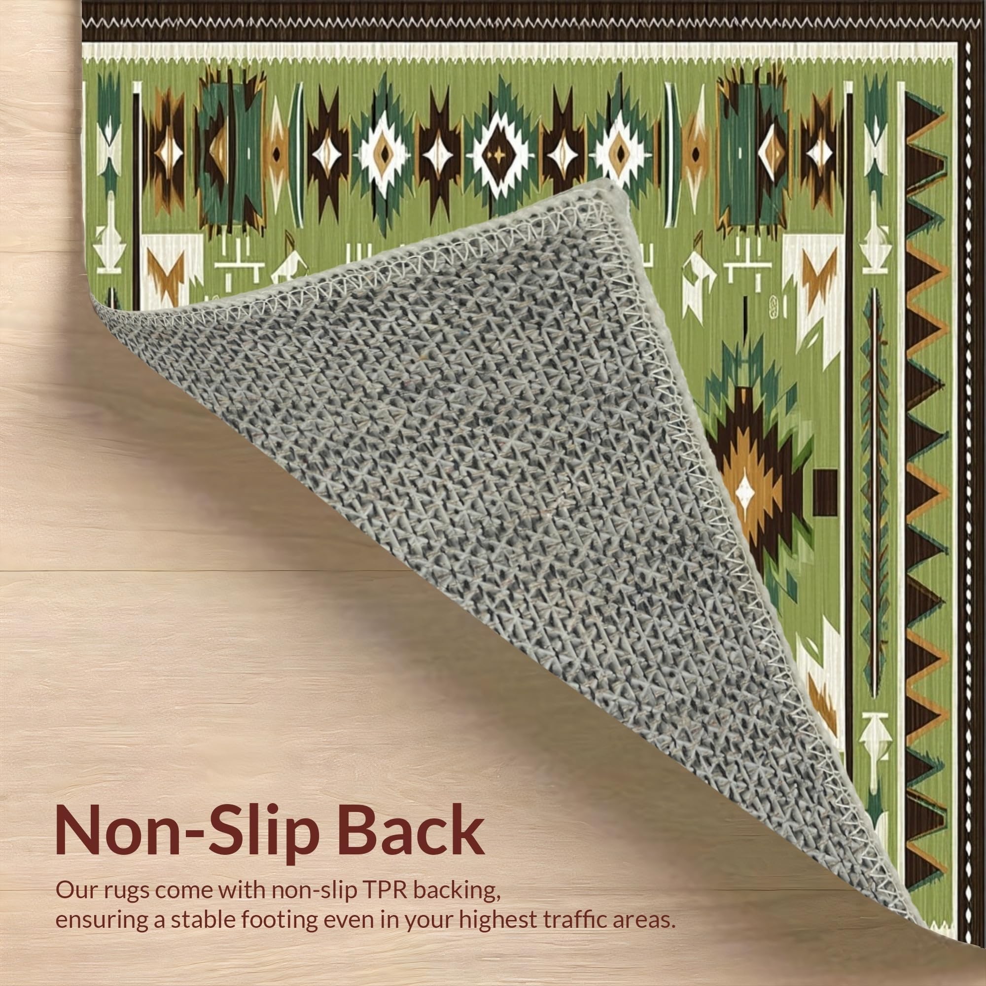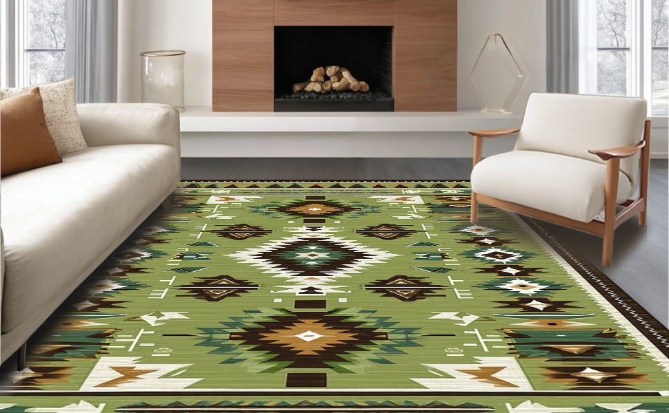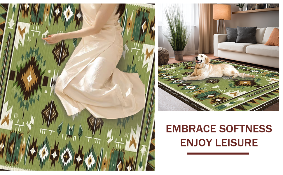 Ultra Soft Area Rug, Non Slip, Stain Resistant, Washable Area Rugs for Living Room, Bedroom, Cozy Ethnic Linear Arrangement(Green) Overview: