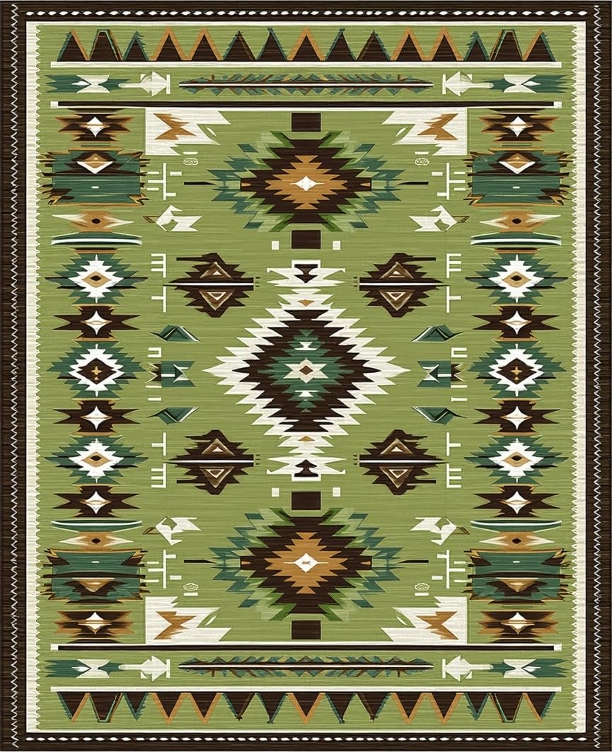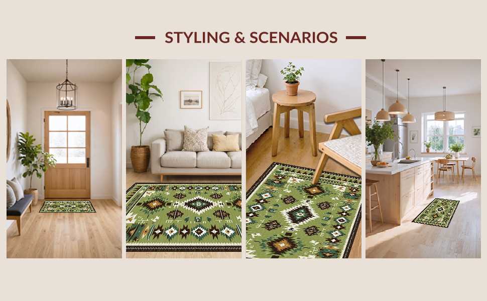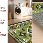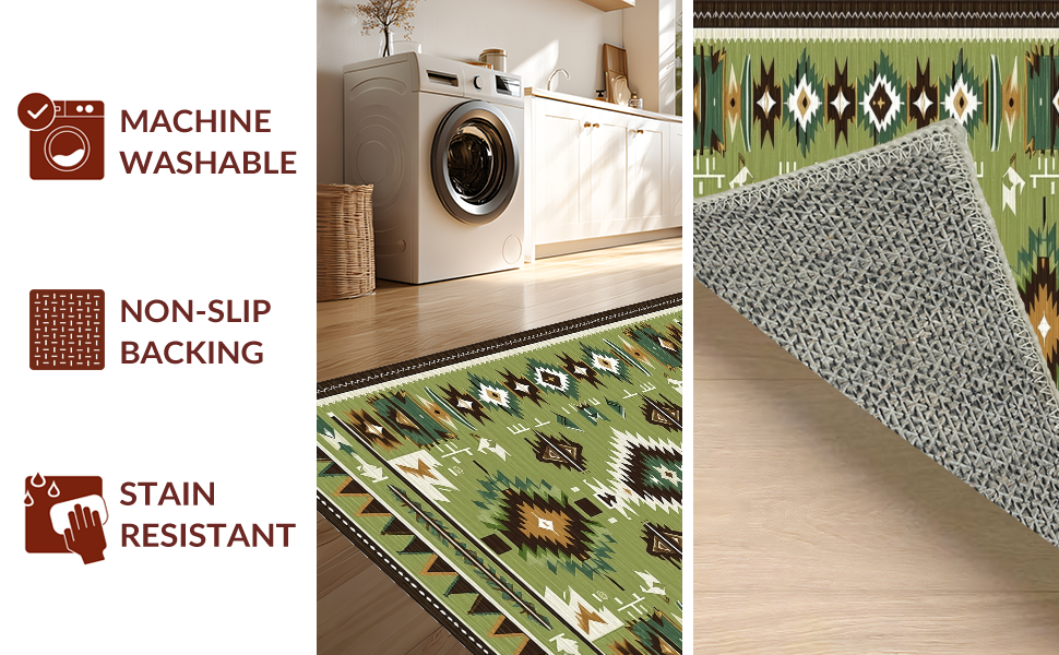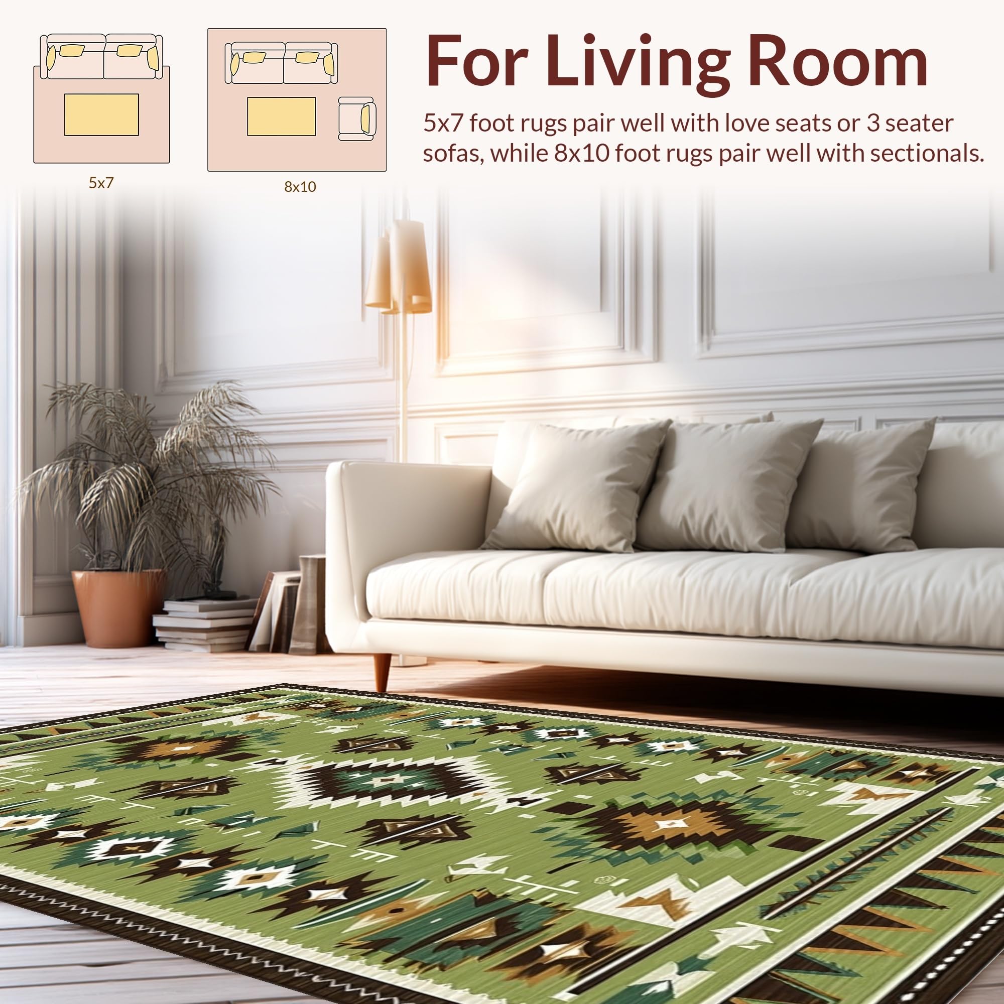 Ultra Soft Area Rug, Non Slip, Stain Resistant, Washable Area Rugs for Living Room, Bedroom, Cozy Ethnic Linear Arrangement(Green) Overview: