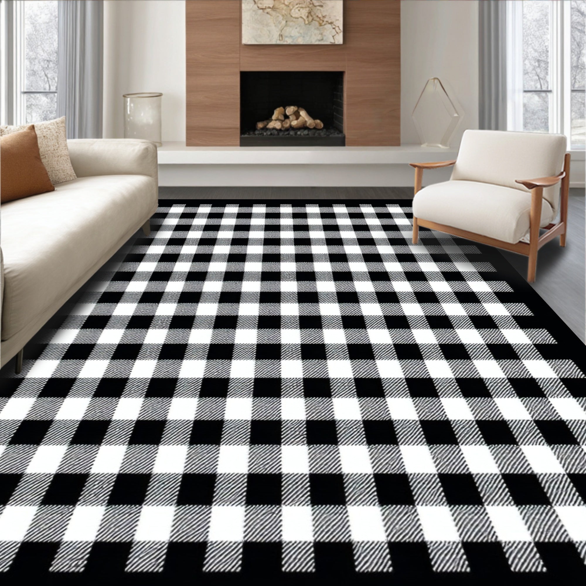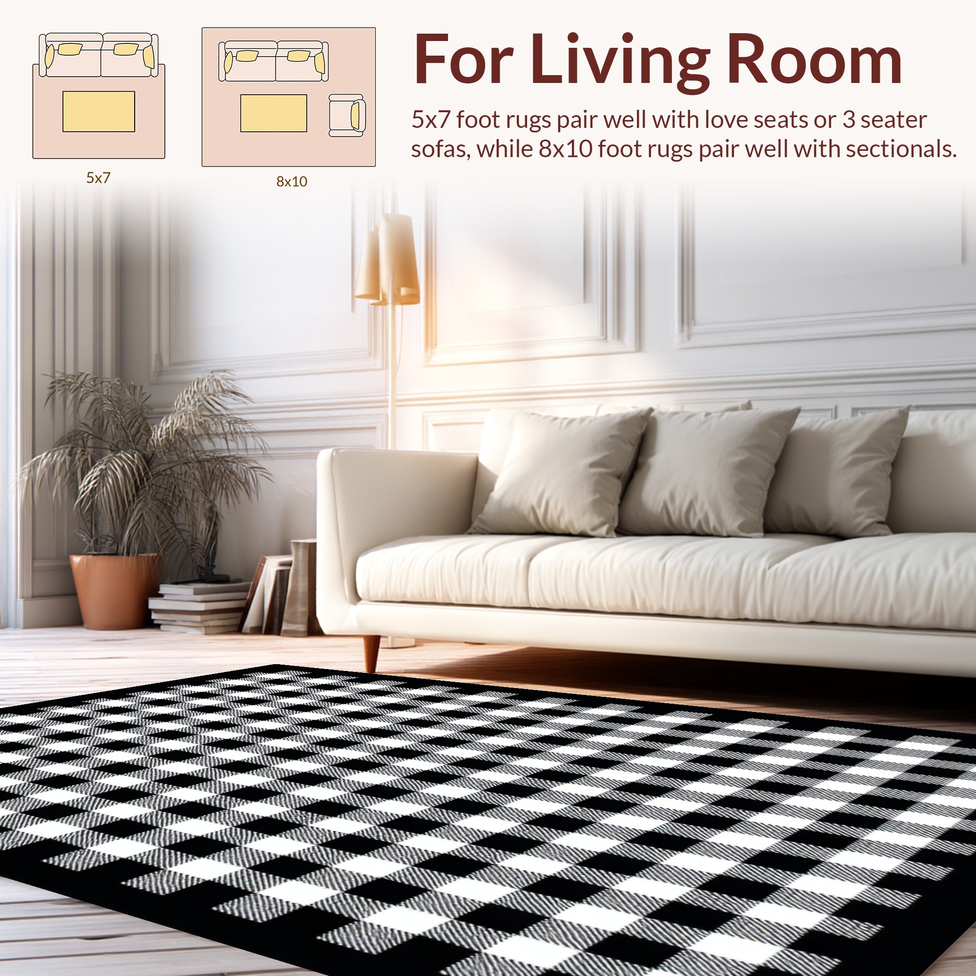 Flatwoven High Traffic Area Rug, Hand Tartan Charm, Non Slip, Stain Resistant, Washable Area Rugs for Living Room, Bedroom (Black) Overview: