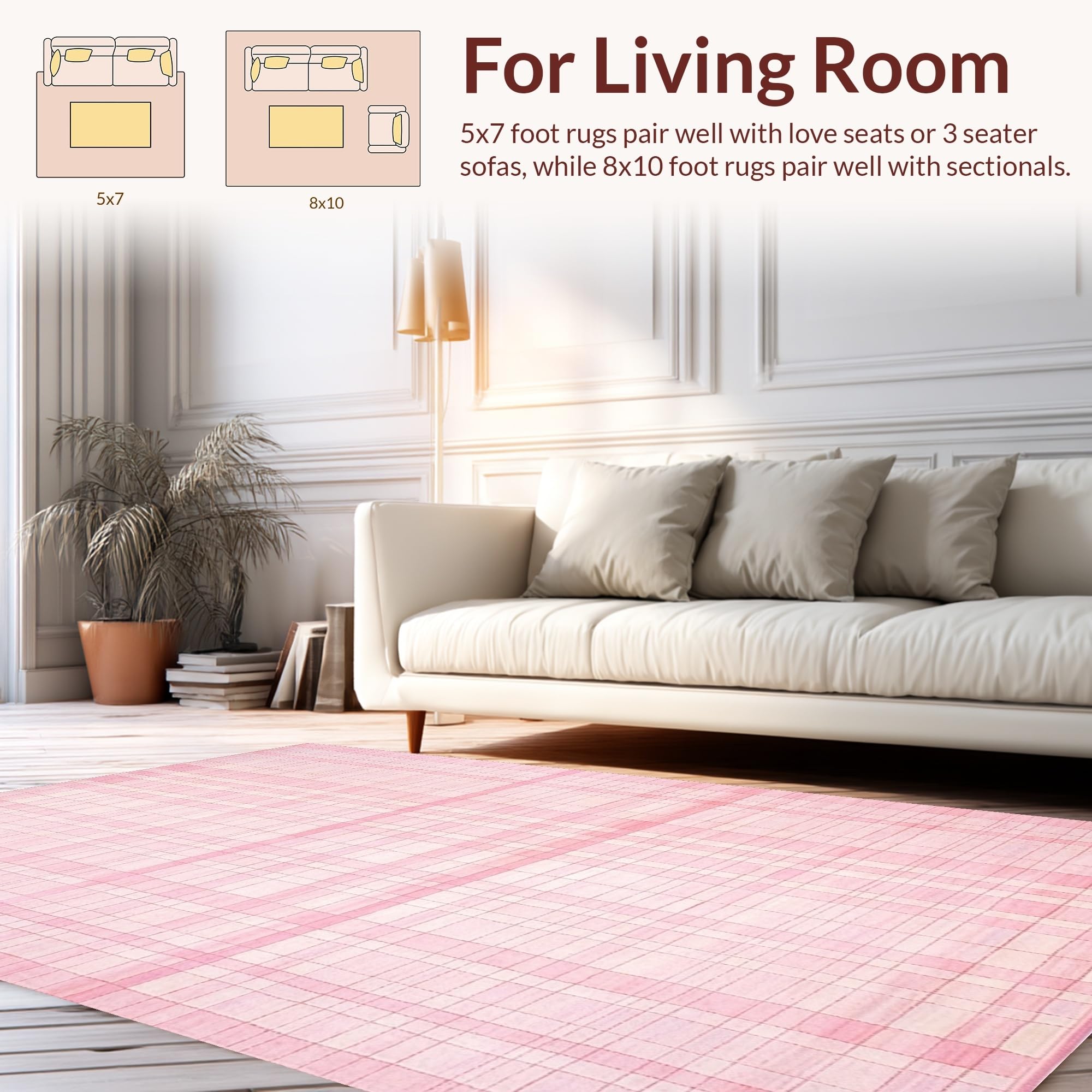 Ultra Soft Area Rug, Non Slip, Stain Resistant, Washable Area Rugs for Living Room, Bedroom, Cozy Light Pink Medallion Style(Pink) Overview: