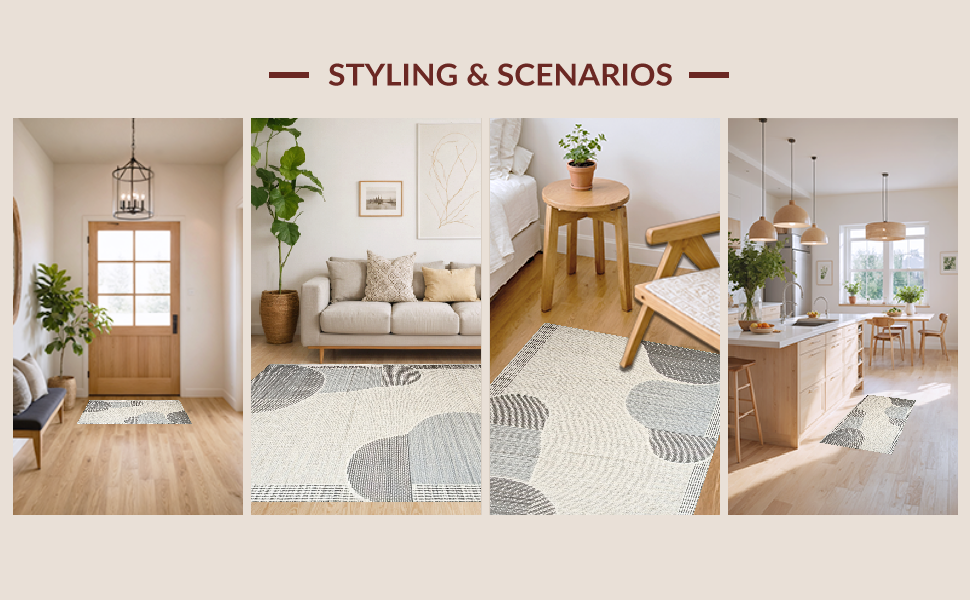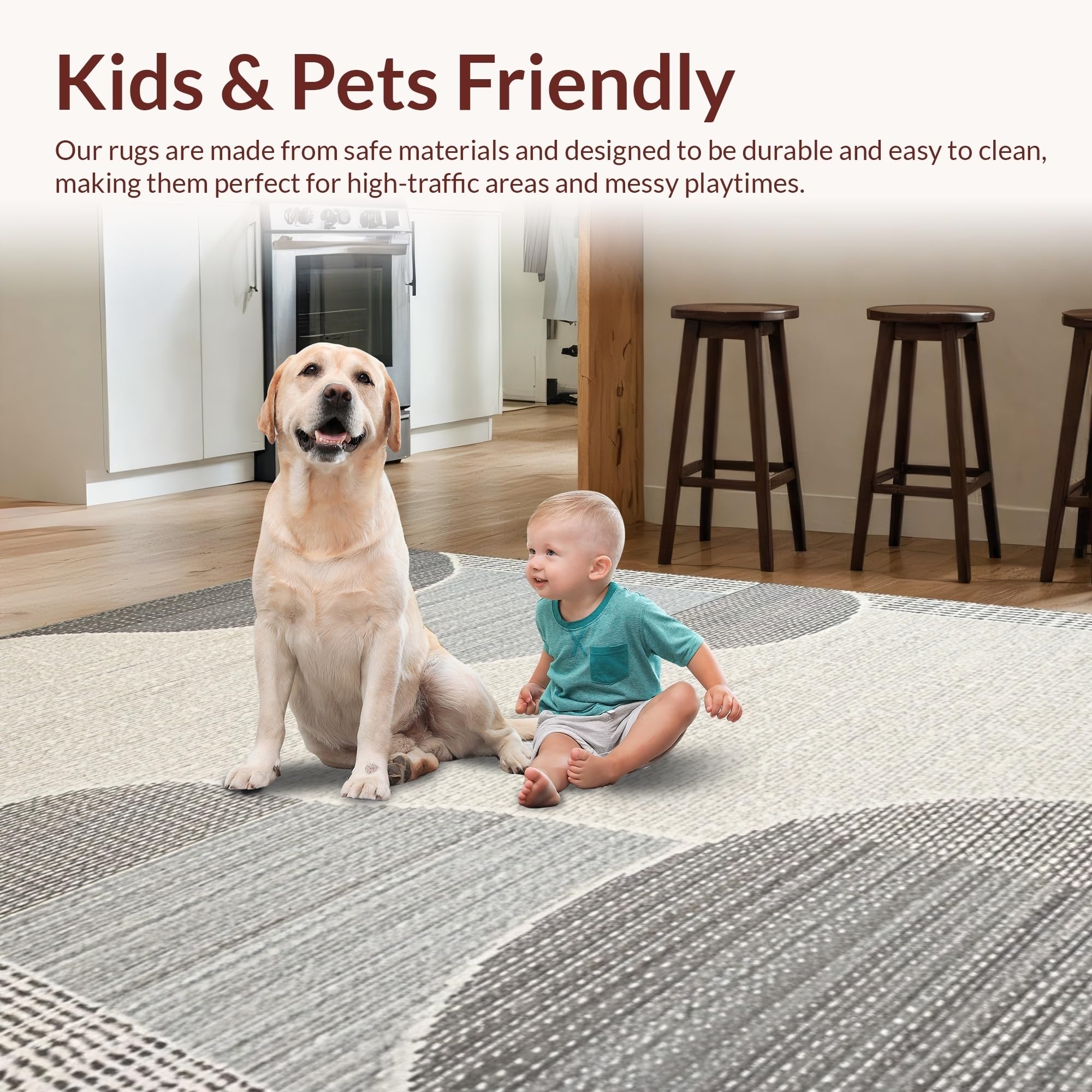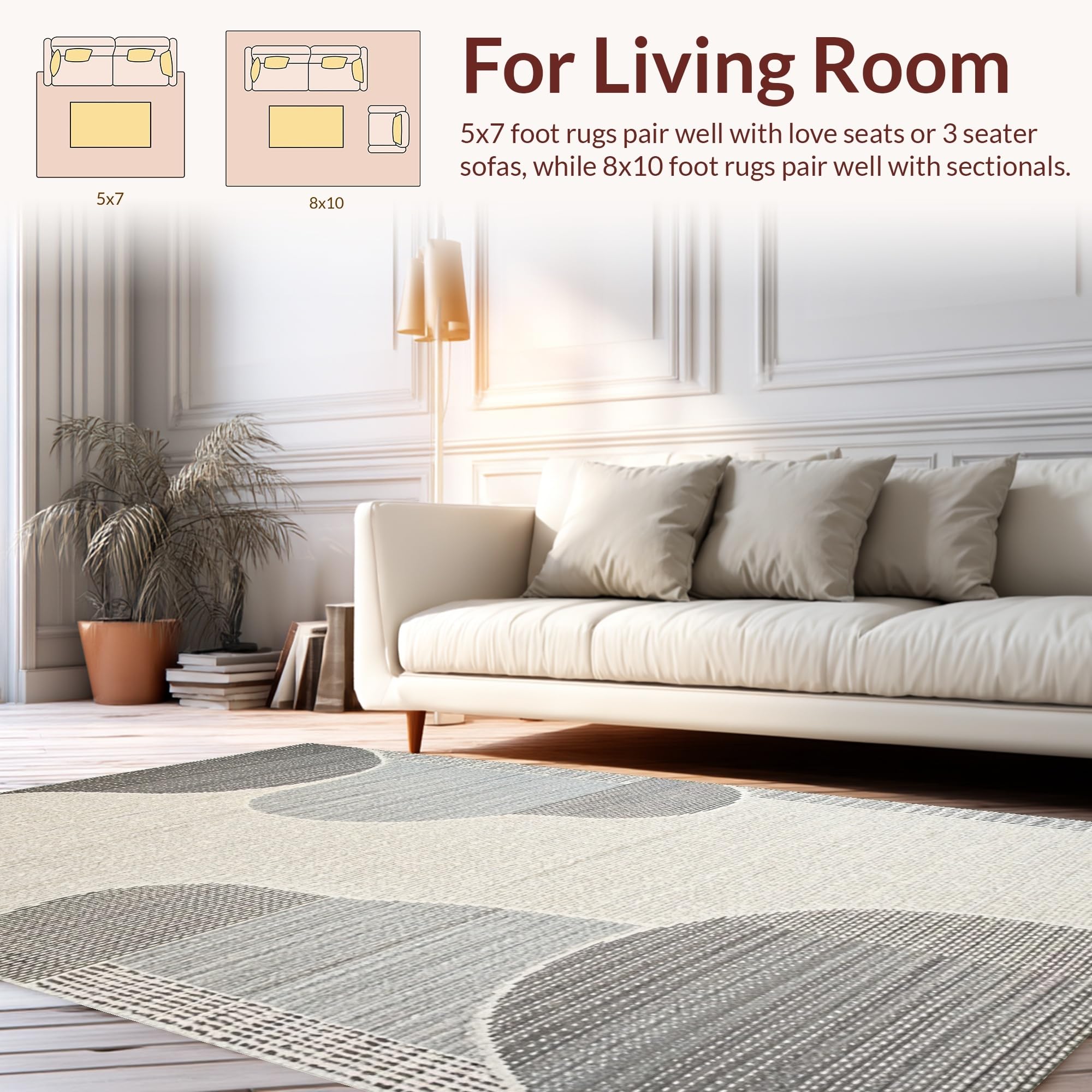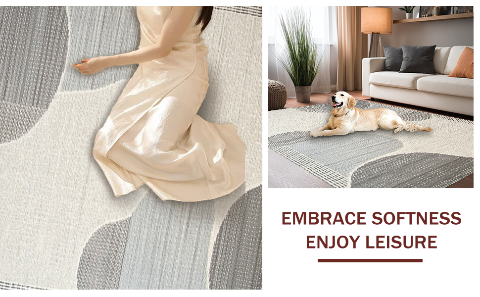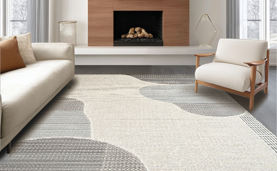 Ultra Soft Area Rug, Non Slip, Stain Resistant, Washable Area Rugs for Living Room, Bedroom, Cozy Minimalist Geometric Composition(Gray) Overview: