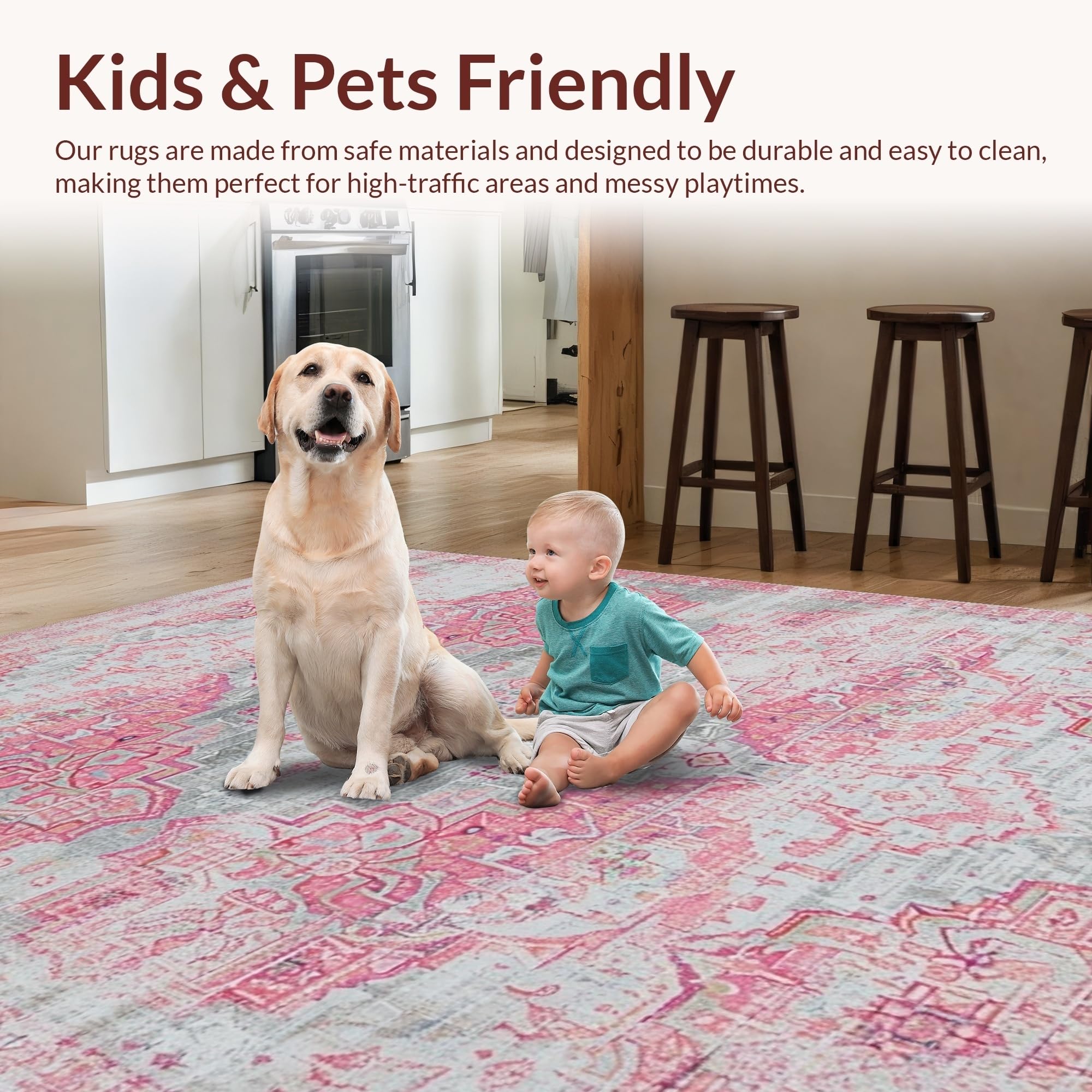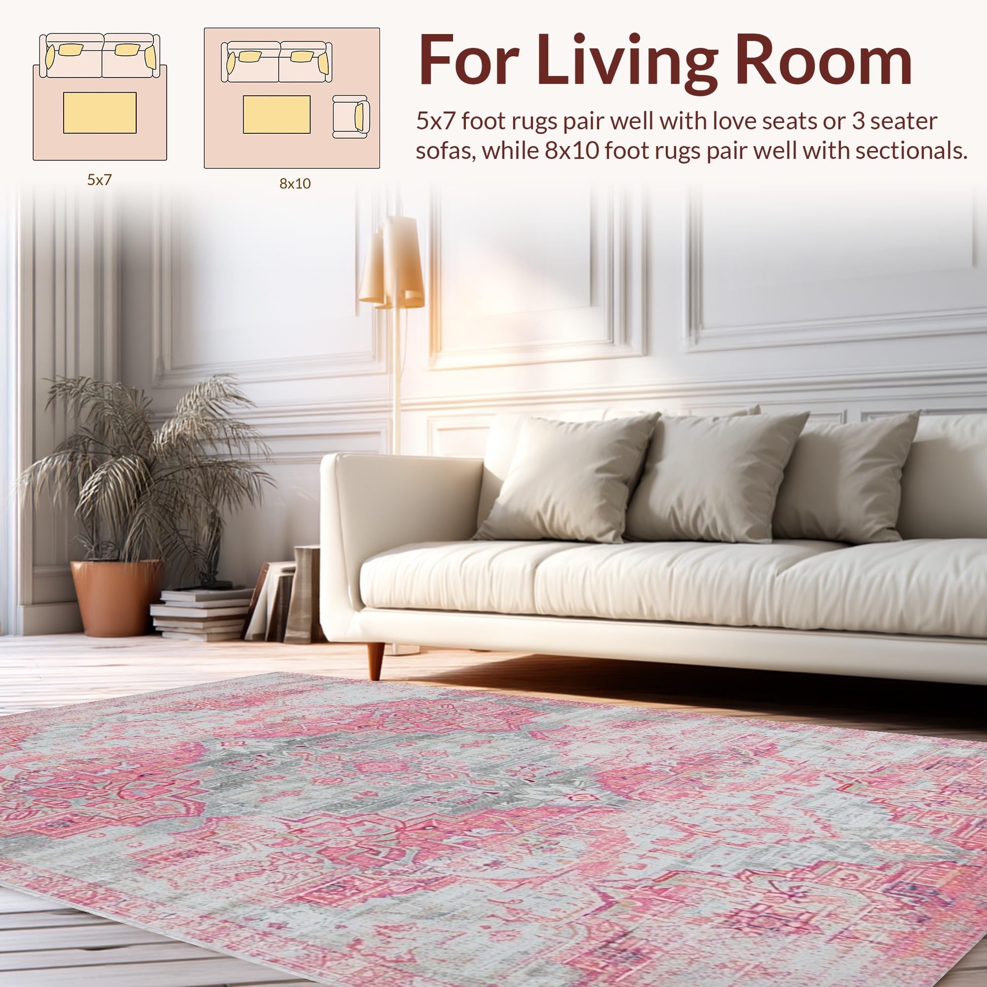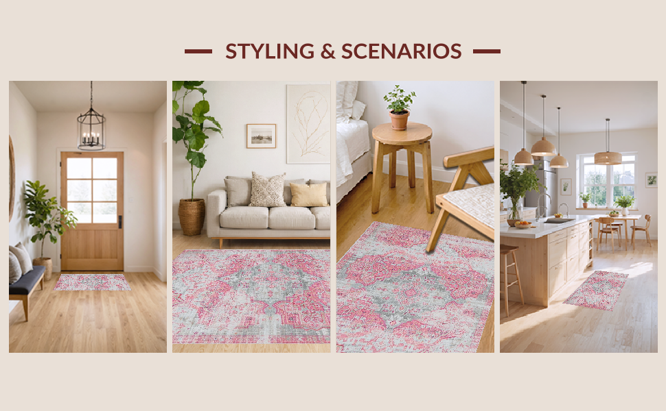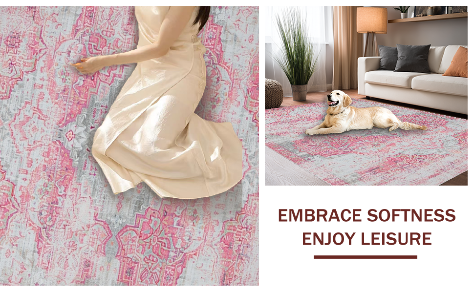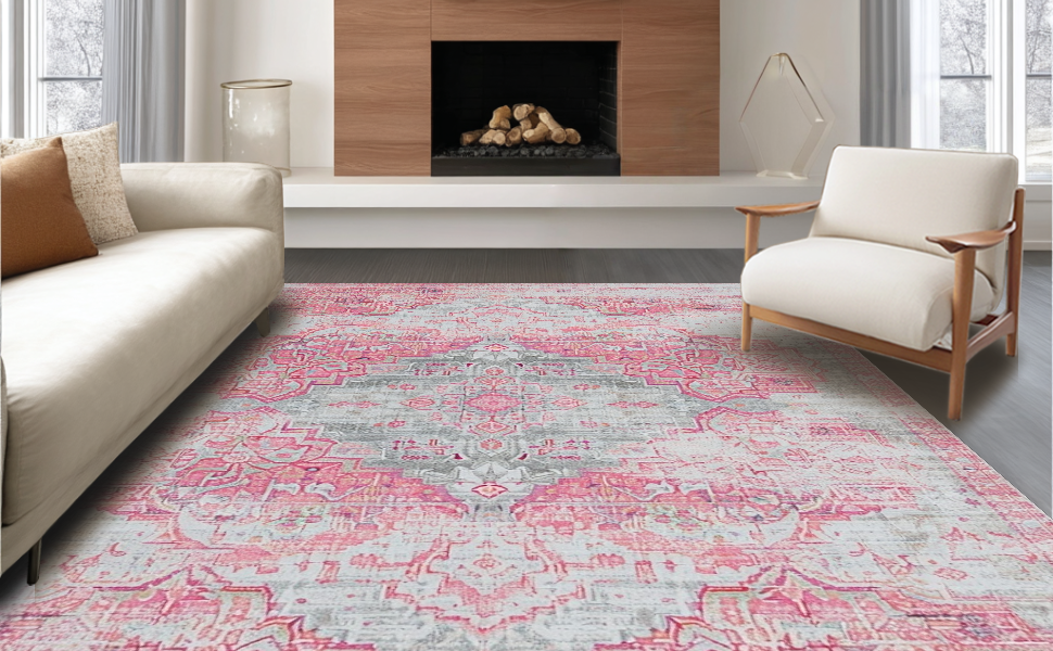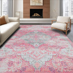 Ultra Soft Area Rug, Non Slip, Stain Resistant, Washable Area Rugs for Living Room, Bedroom, Cozy Modern Medallion Style(Pink) Overview: