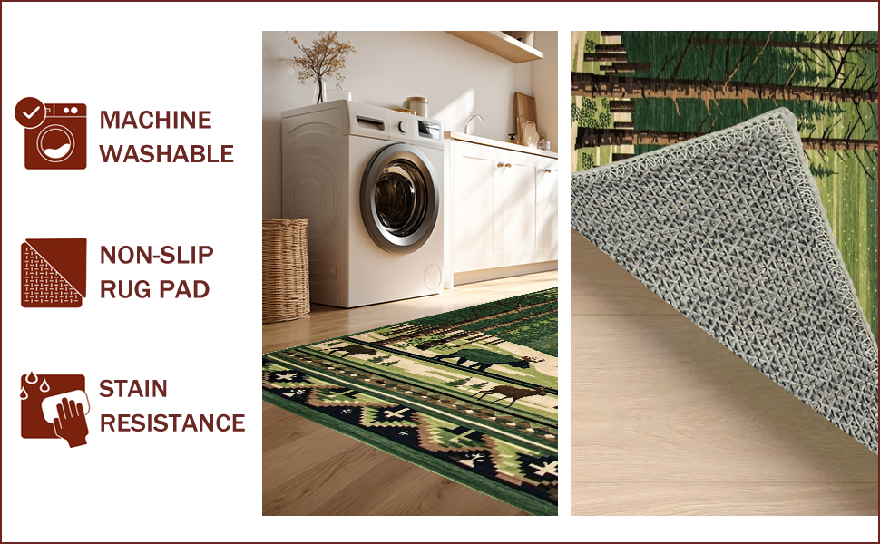 Ultra Soft Area Rug, Non Slip, Stain Resistant, Washable Area Rugs for Living Room, Bedroom, Cozy Natural Forest Elements(Green) Overview:
