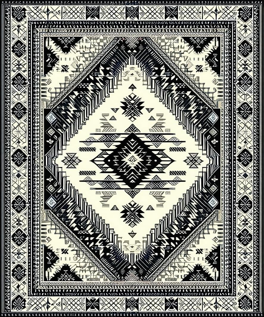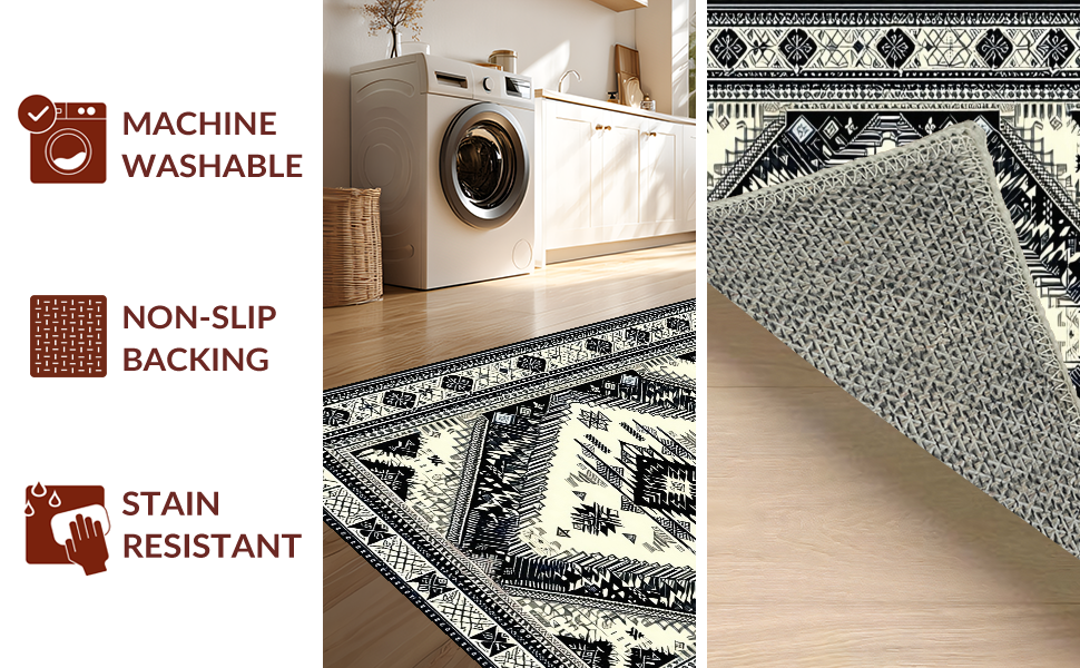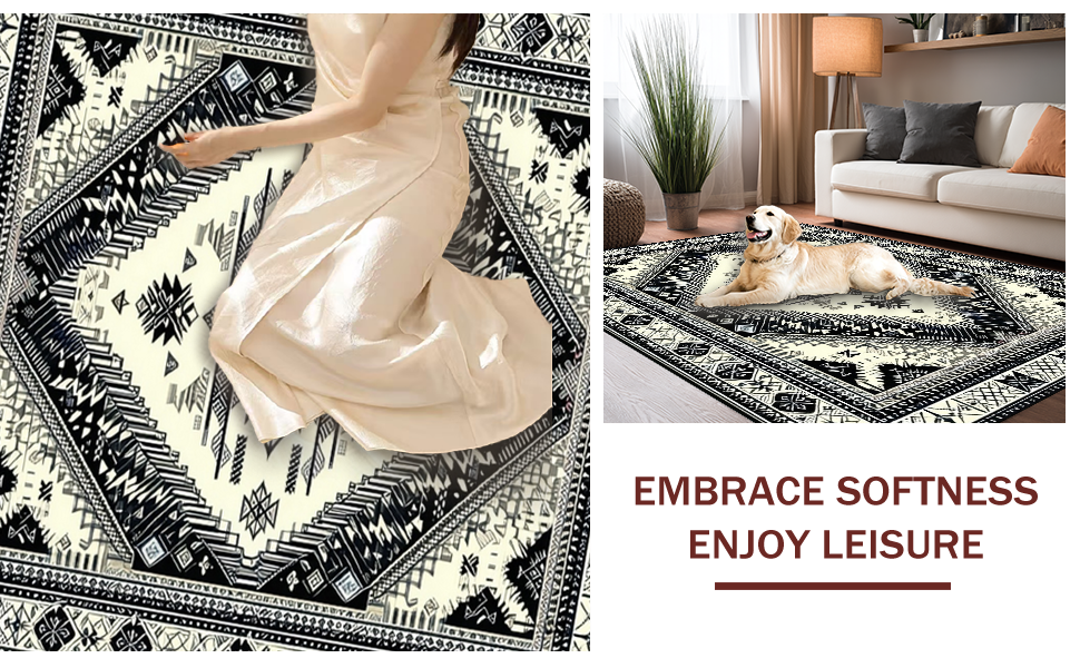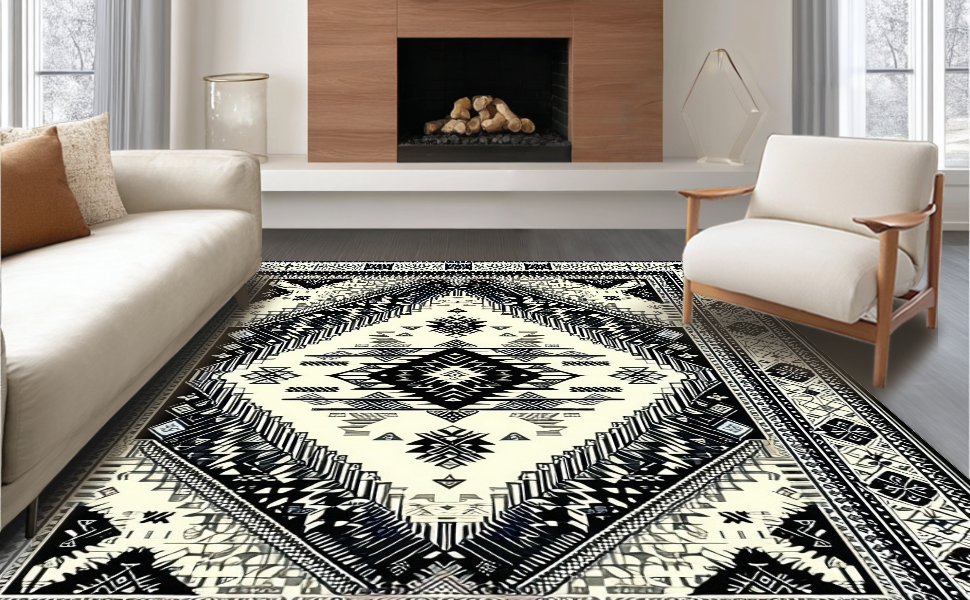 Ultra Soft Area Rug, Non Slip, Stain Resistant, Washable Area Rugs for Living Room, Bedroom, Cozy Neutral Geometric Aesthetic(Black) Overview: