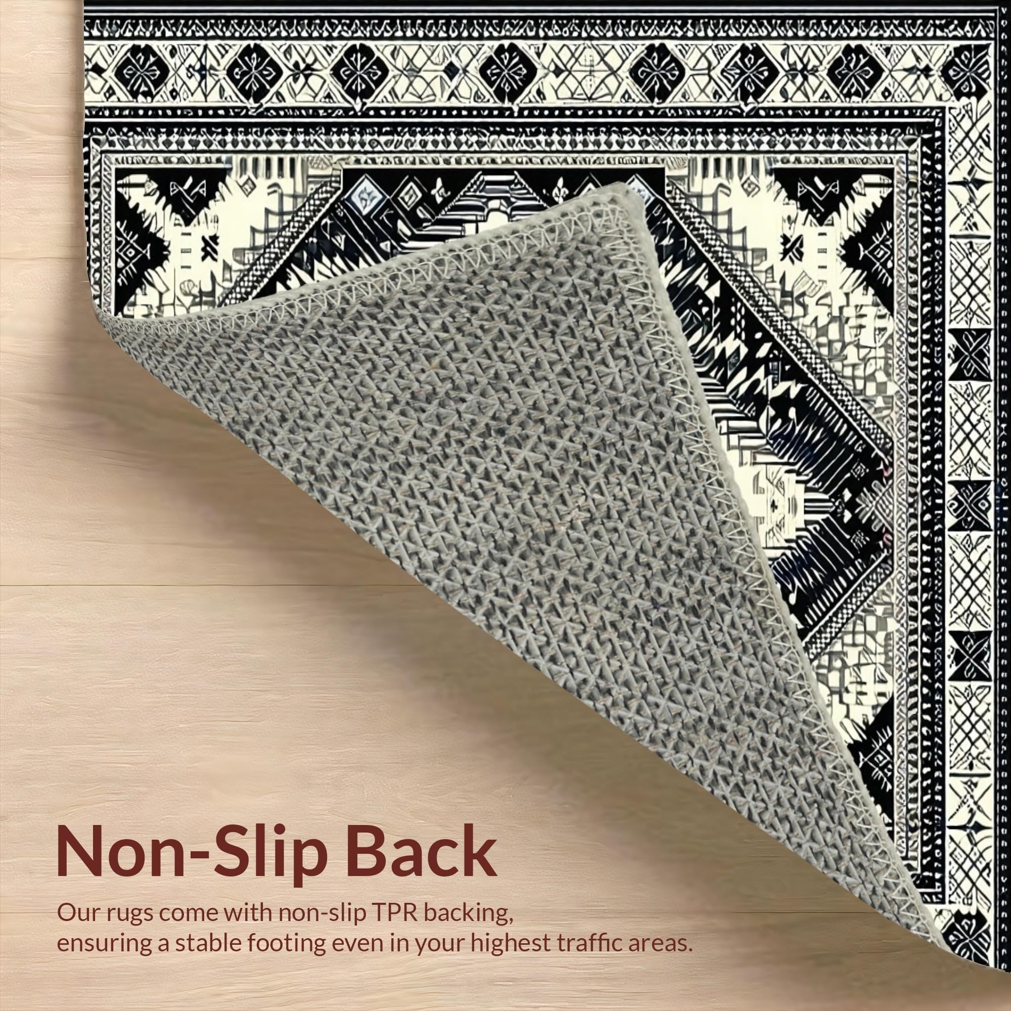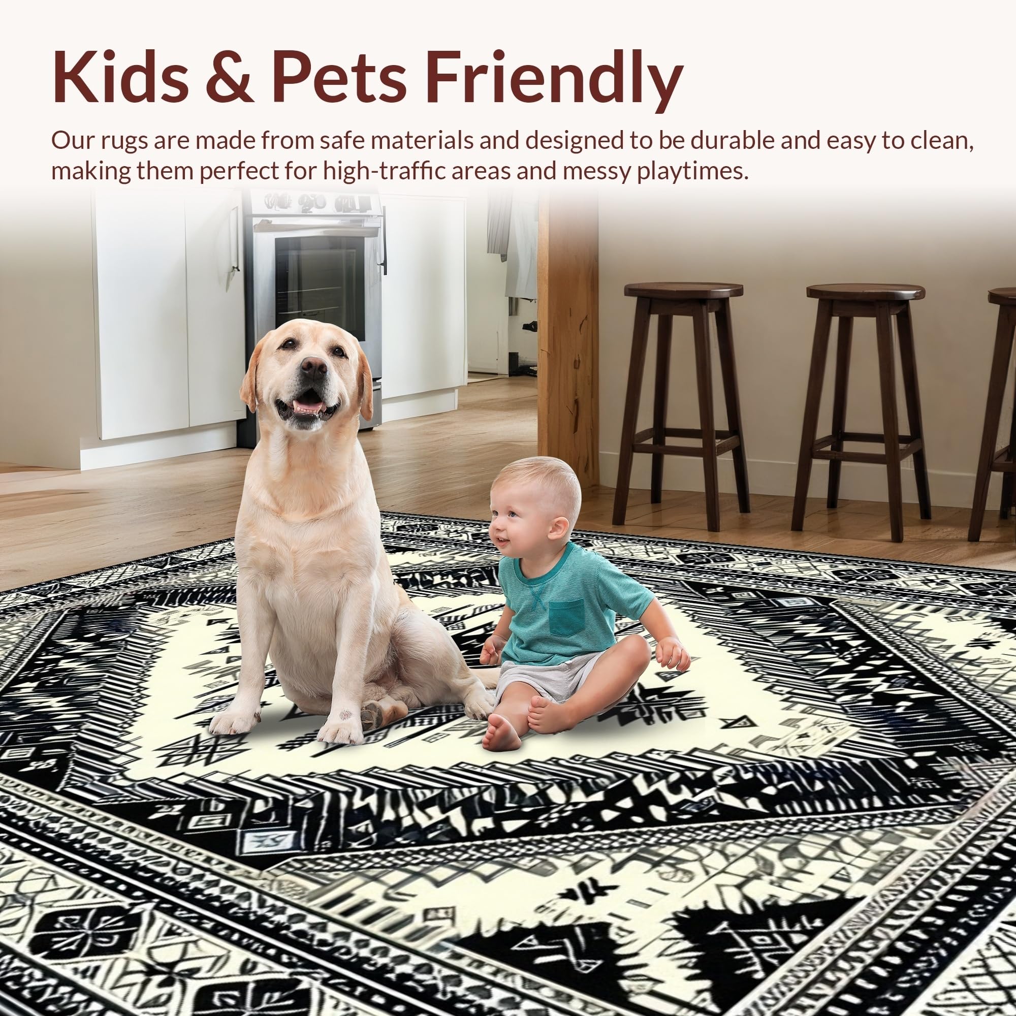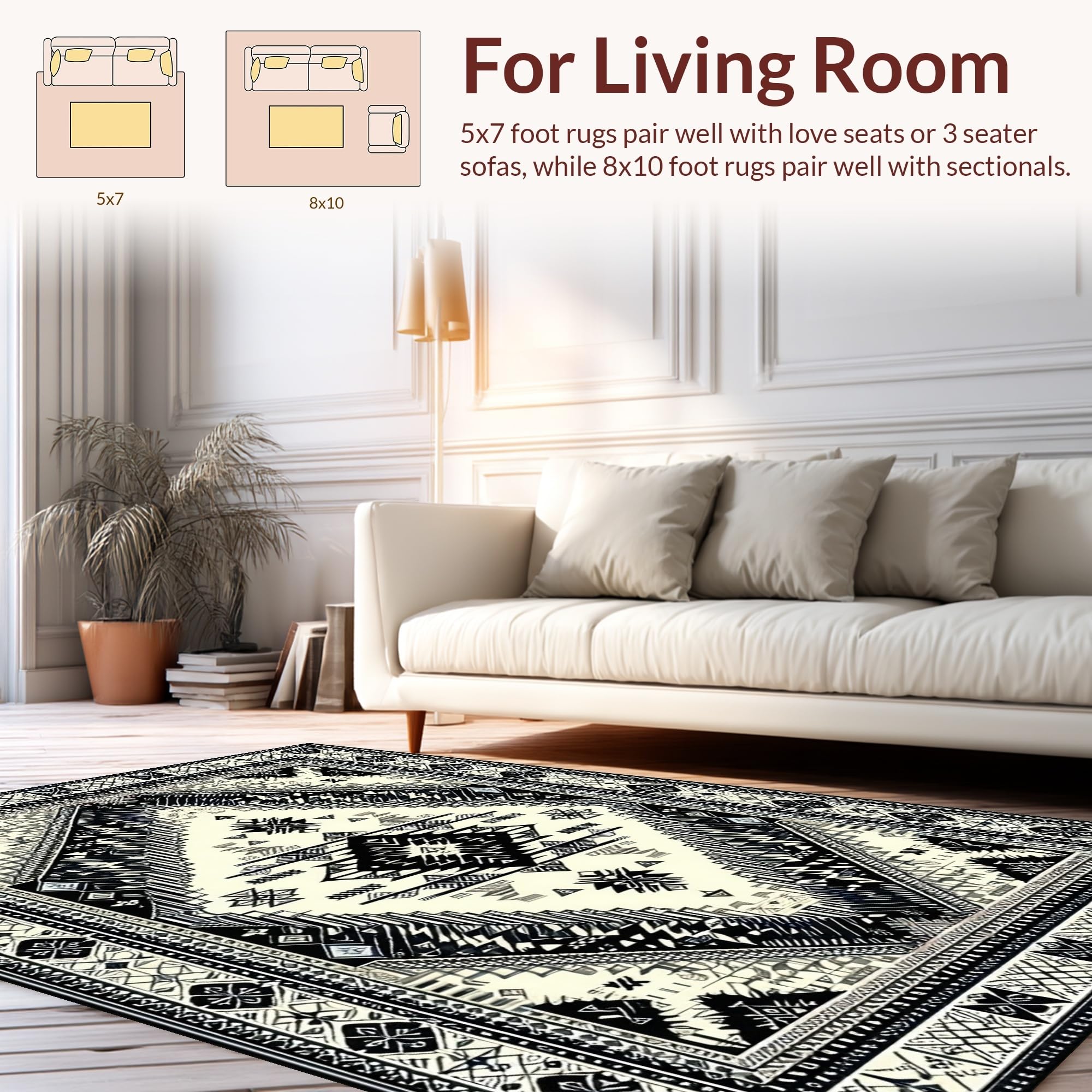 Ultra Soft Area Rug, Non Slip, Stain Resistant, Washable Area Rugs for Living Room, Bedroom, Cozy Neutral Geometric Aesthetic(Black) Overview: