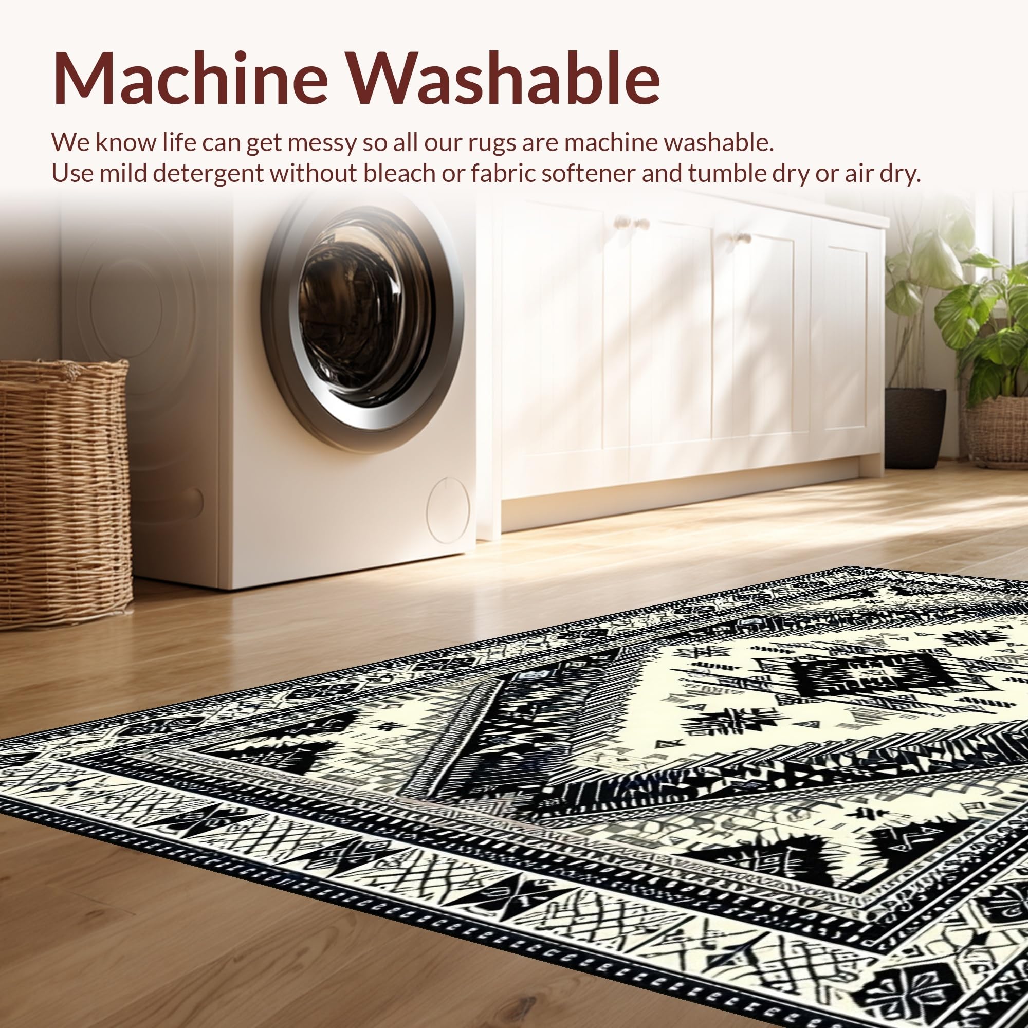 - Machine Washable: Our rugs can be easily thrown in the wash machine.