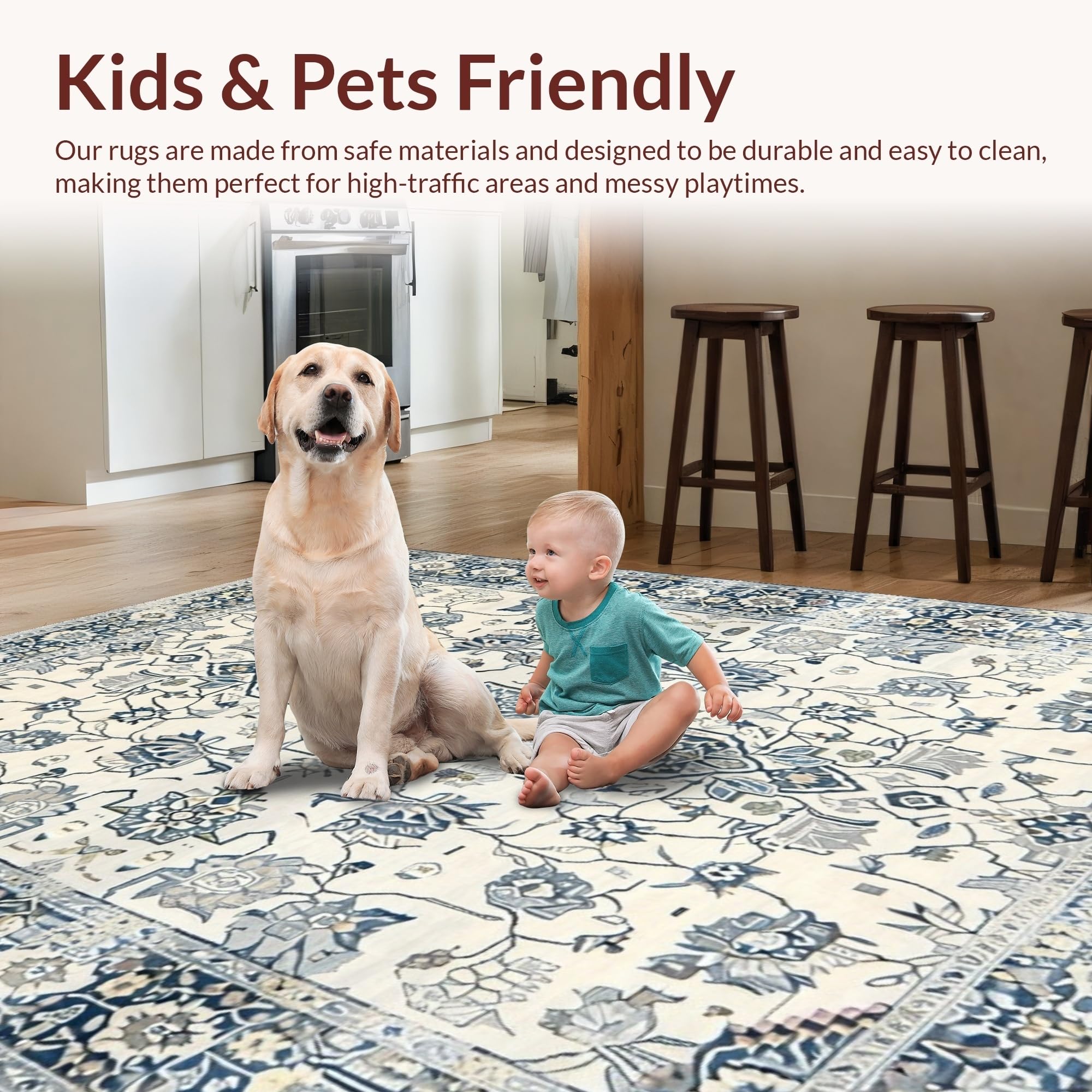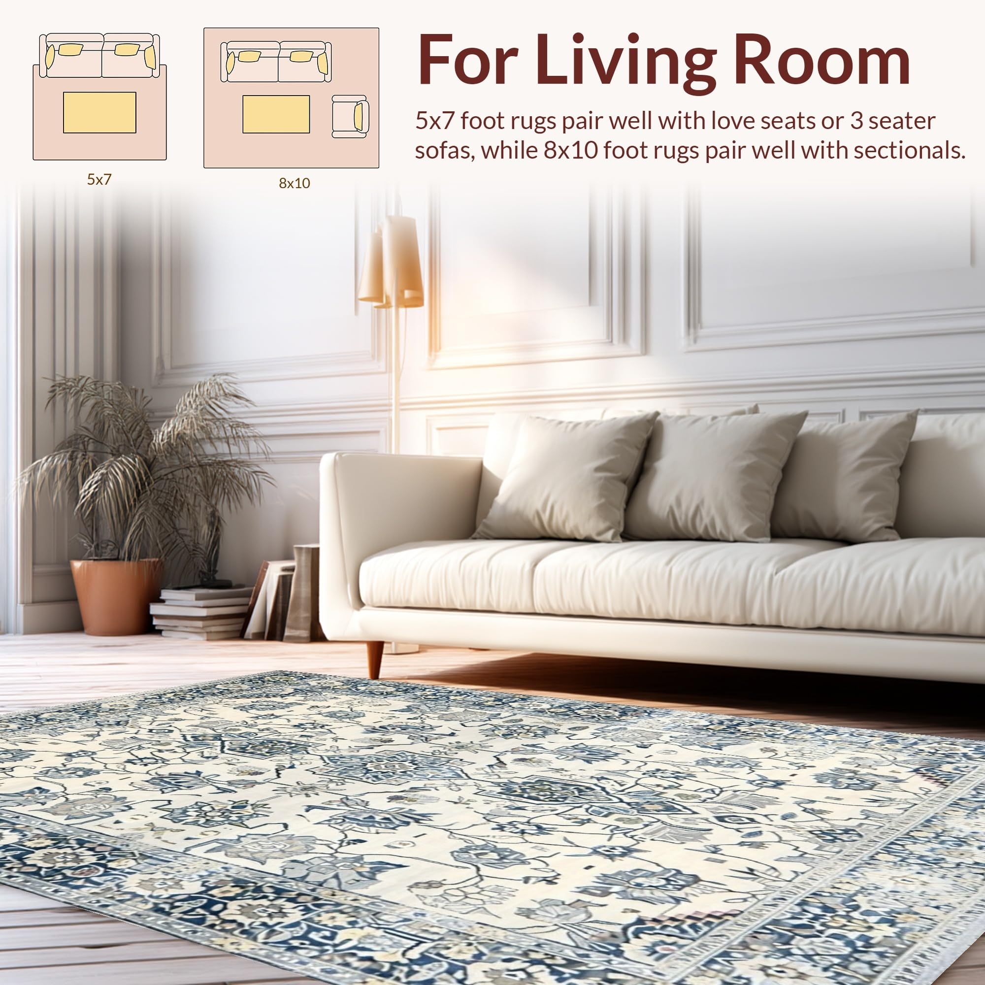 Ultra Soft Area Rug, Non Slip, Stain Resistant, Washable Area Rugs for Living Room, Bedroom, Cozy Neutral Trellis Design(White) Overview: