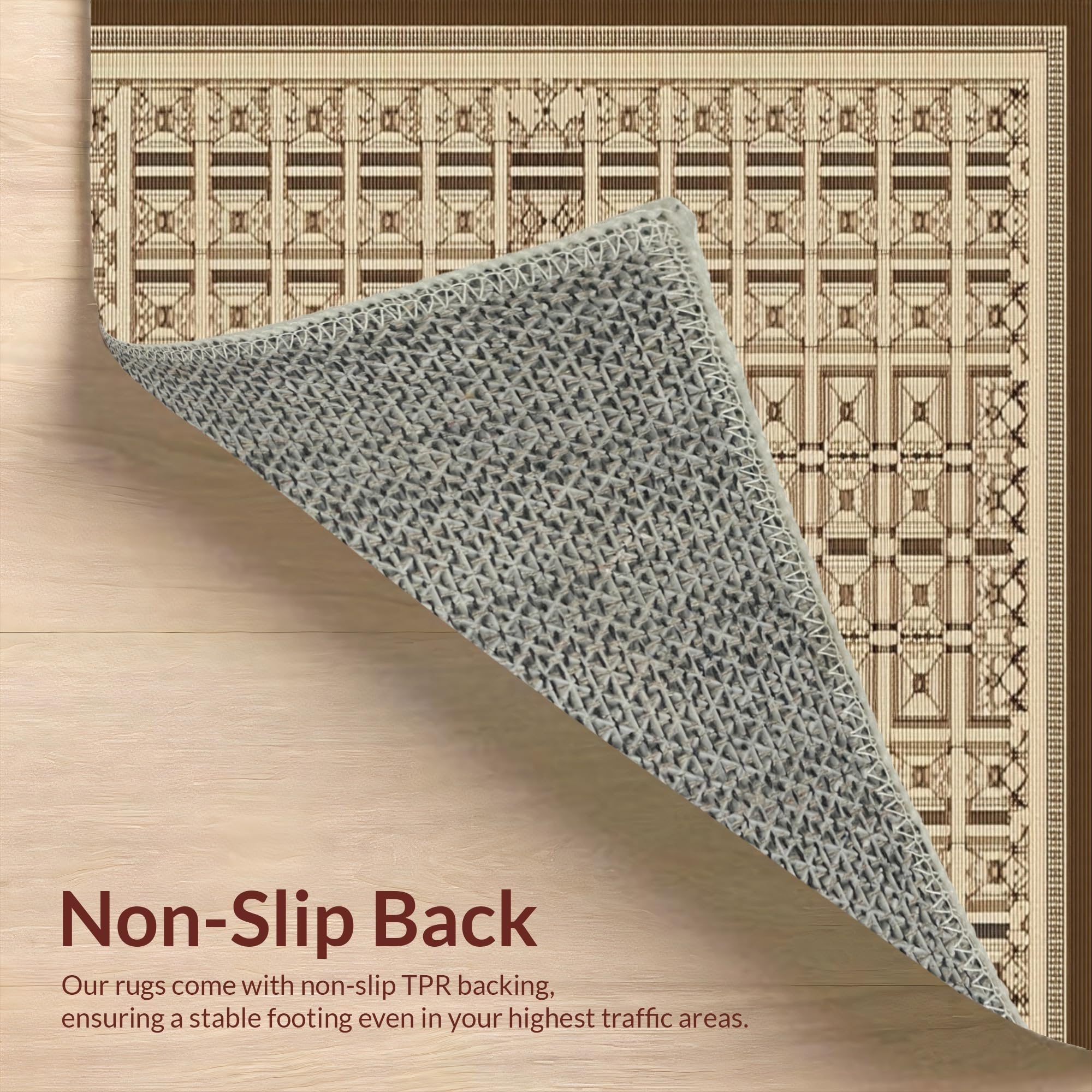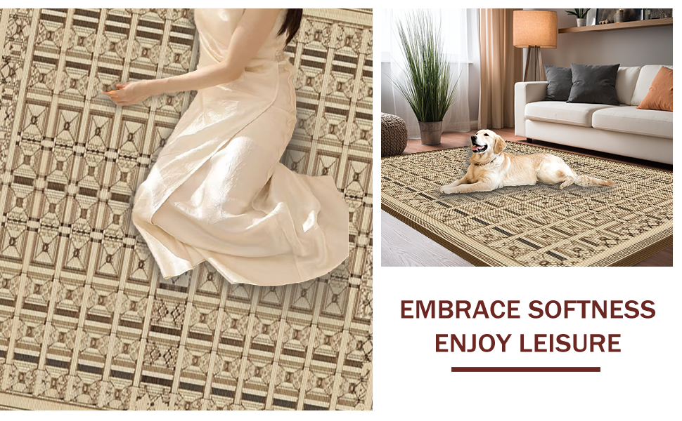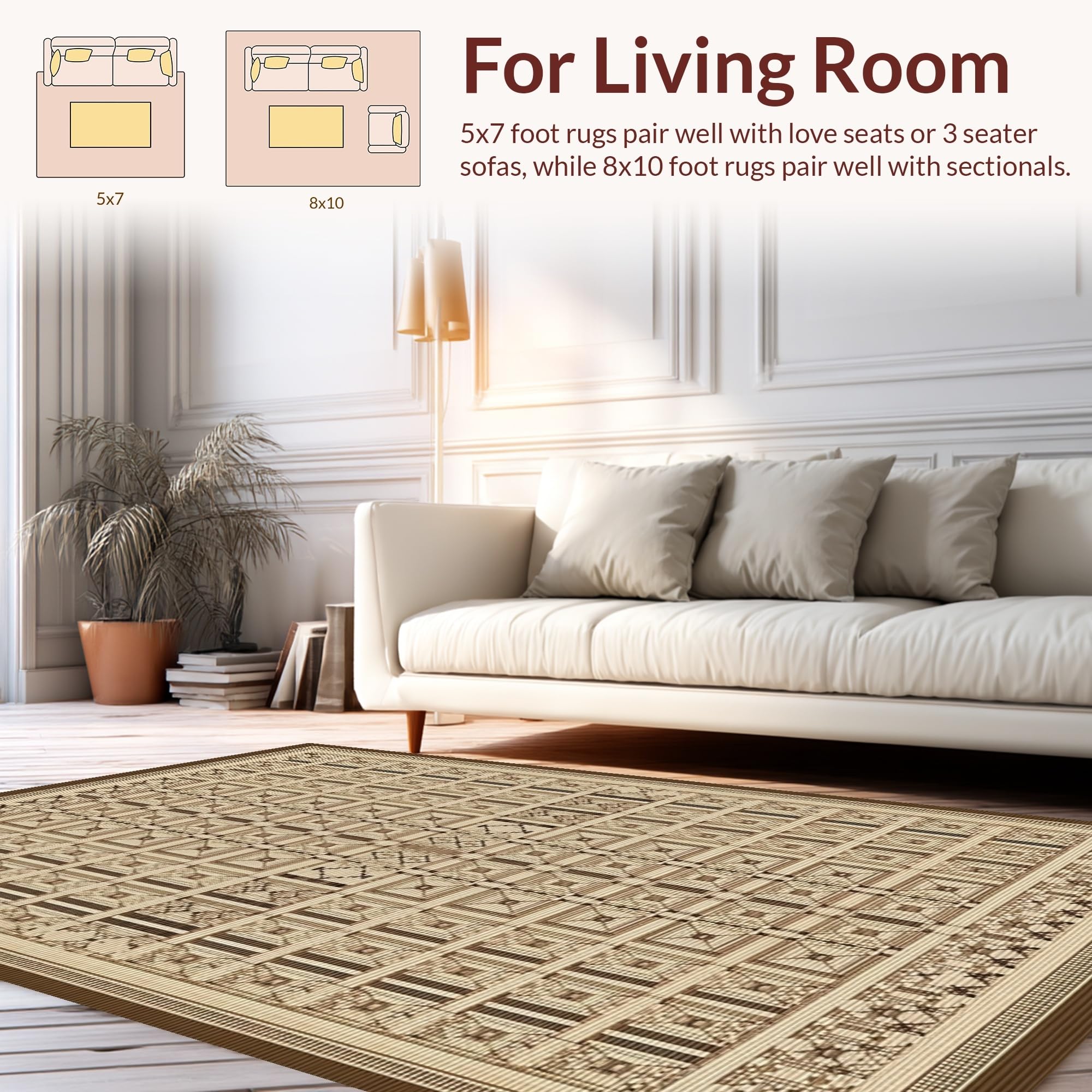 Ultra Soft Area Rug, Non Slip, Stain Resistant, Washable Area Rugs for Living Room, Bedroom, Cozy Ogee Patterned Nature Inspired(Beige) Overview:
