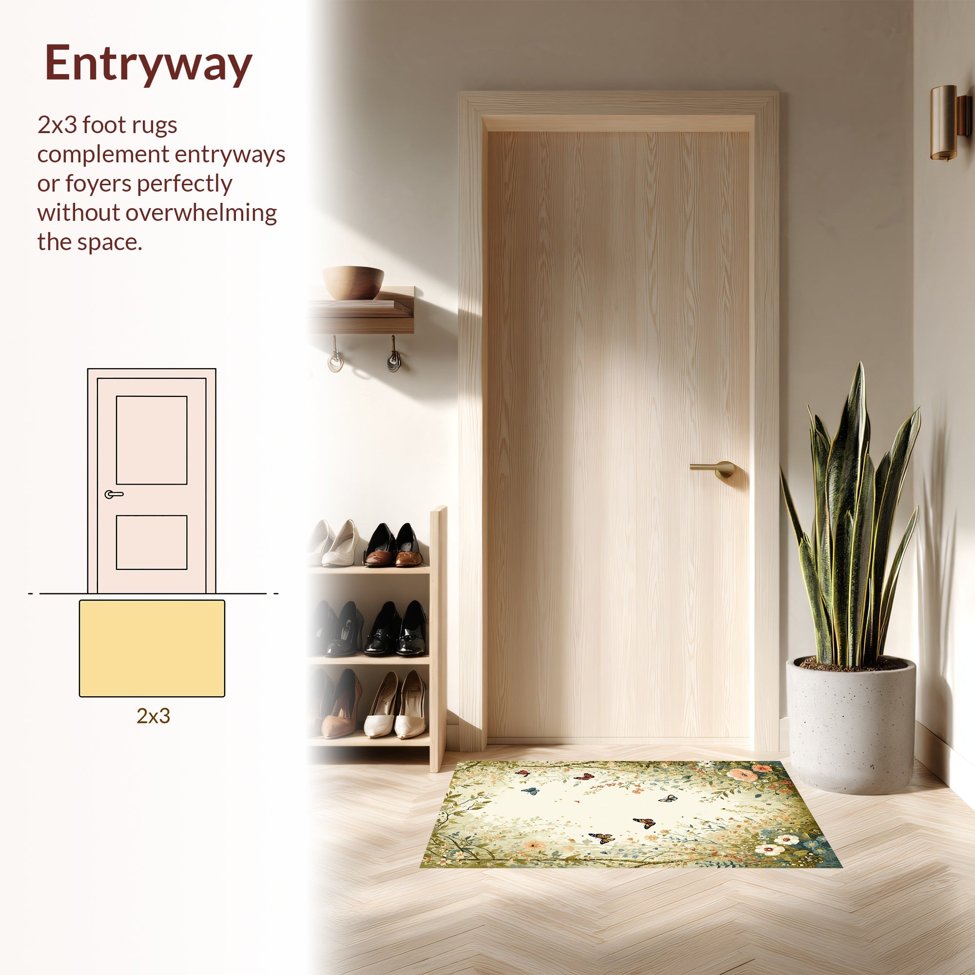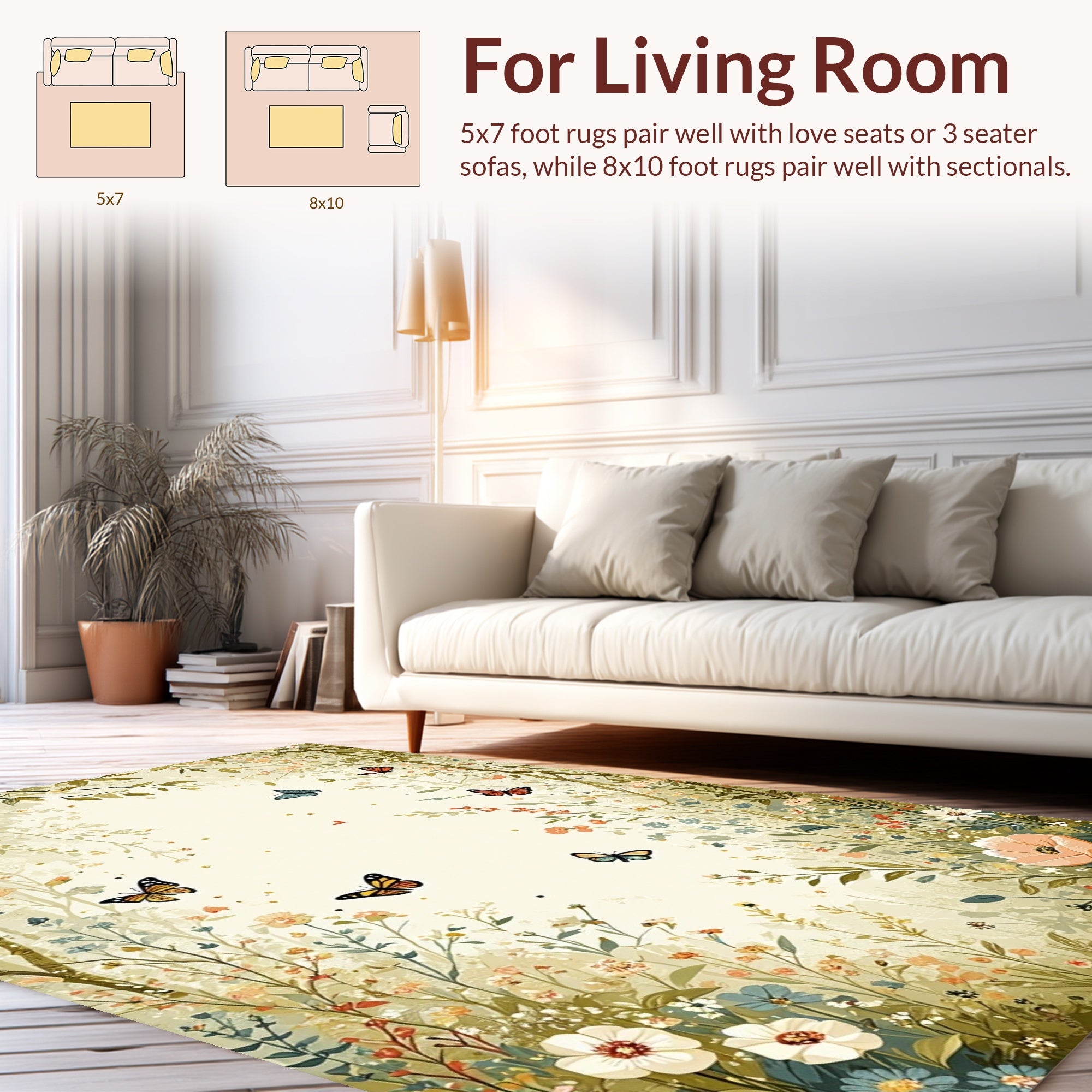 Flatwoven High Traffic Area Rug, Pastel Floral Insect Theme, Non Slip, Stain Resistant, Washable Area Rugs for Living Room, Bedroom (Beige) Overview: