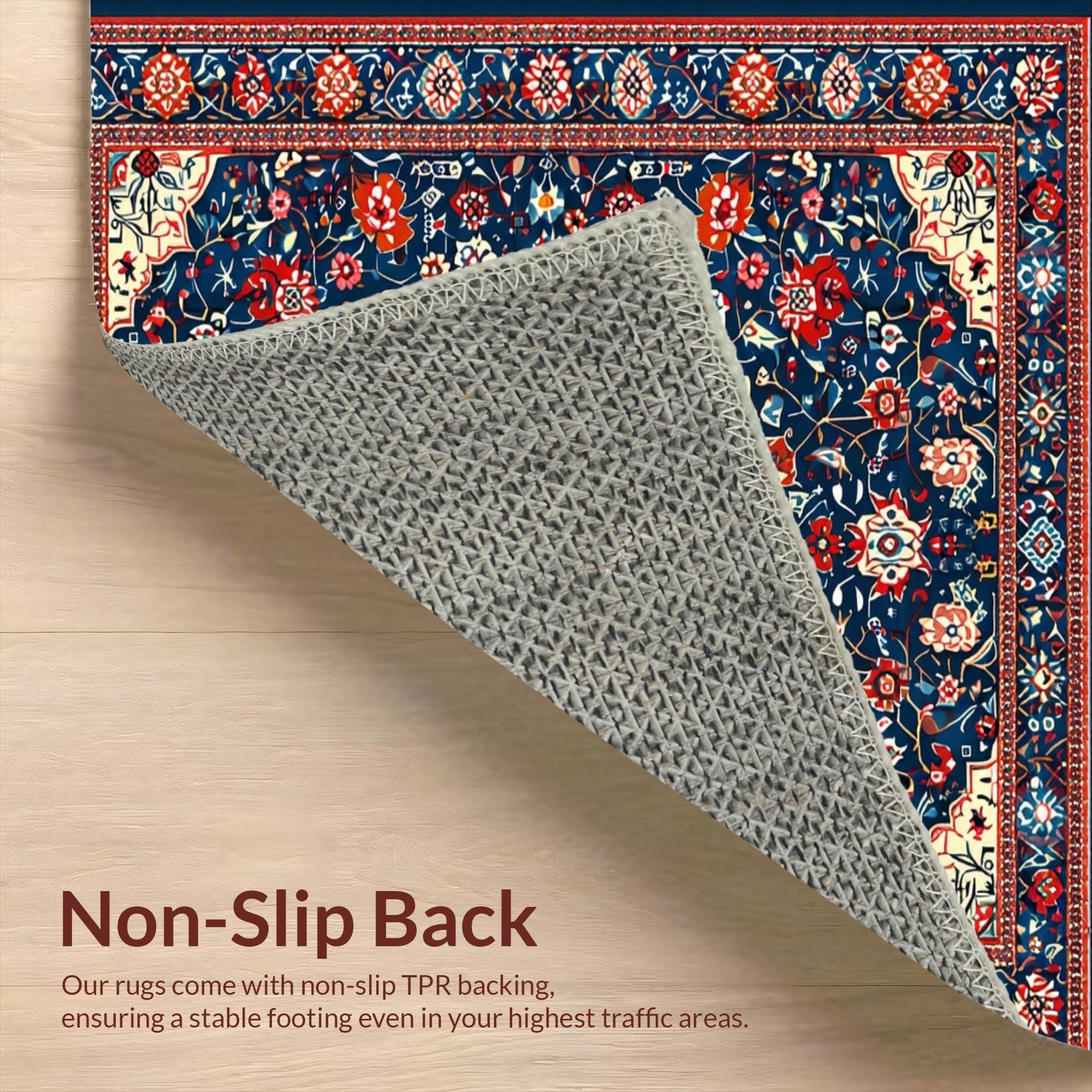 Ultra Soft Area Rug, Non Slip, Stain Resistant, Washable Area Rugs for Living Room, Bedroom, Cozy Pastel Flower Imagery(Blue) Overview: