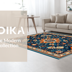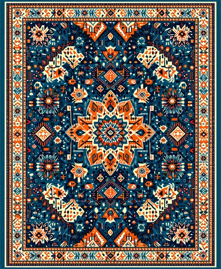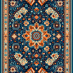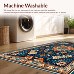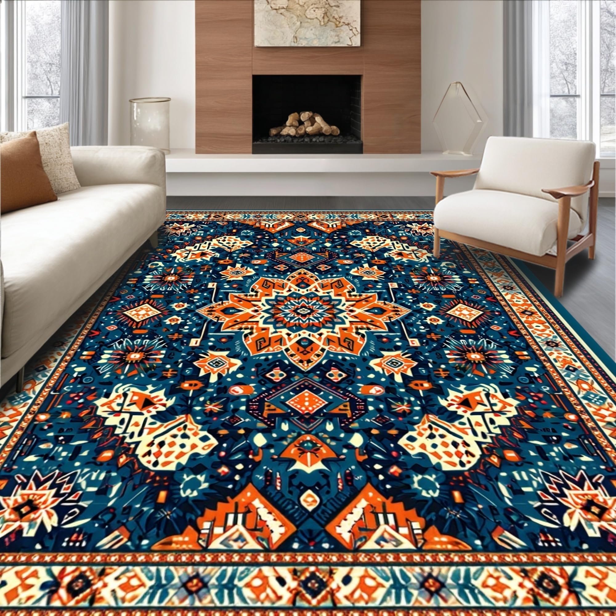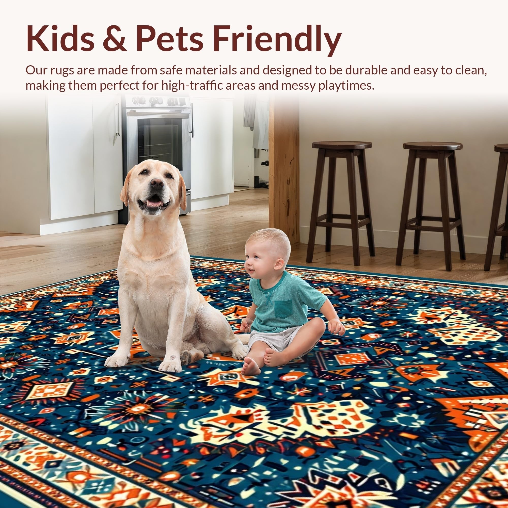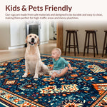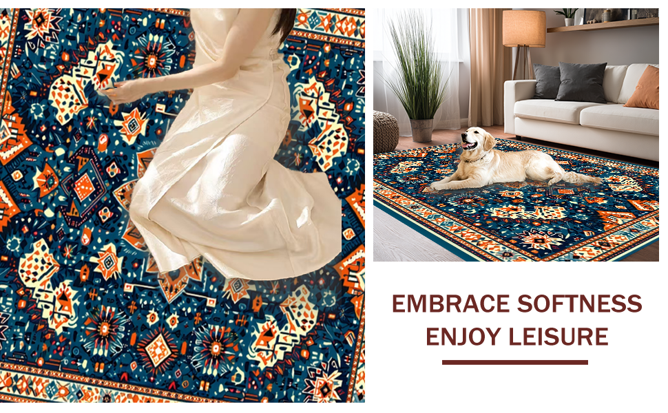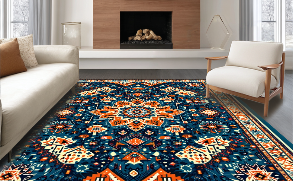 Ultra Soft Area Rug, Non Slip, Stain Resistant, Washable Area Rugs for Living Room, Bedroom, Cozy Retro Diamond Accent(Blue) Overview: