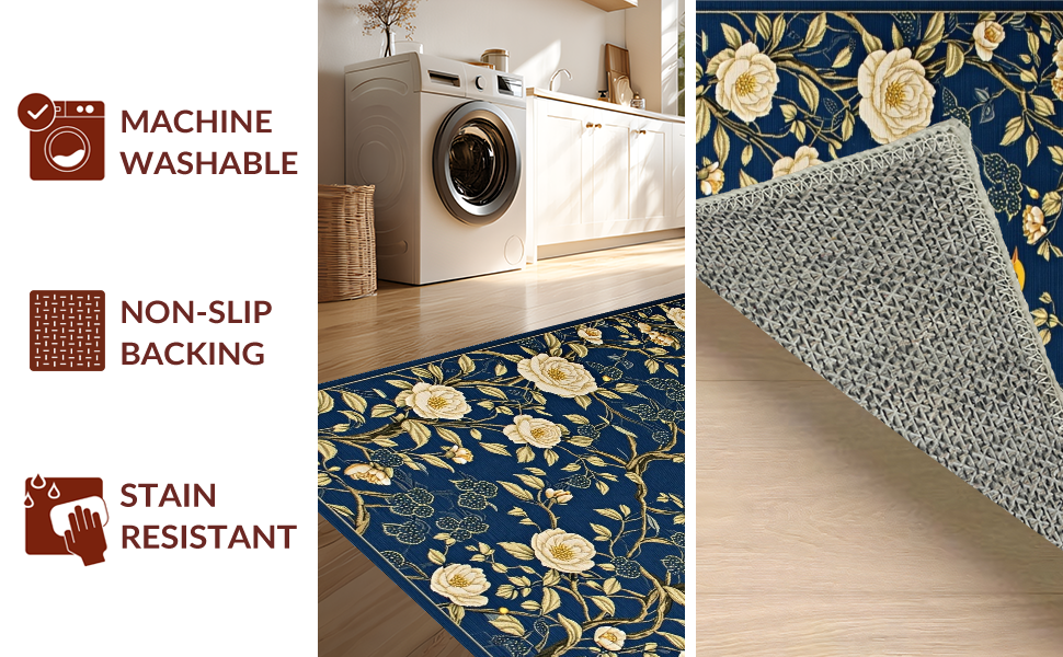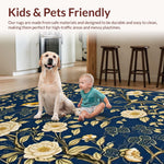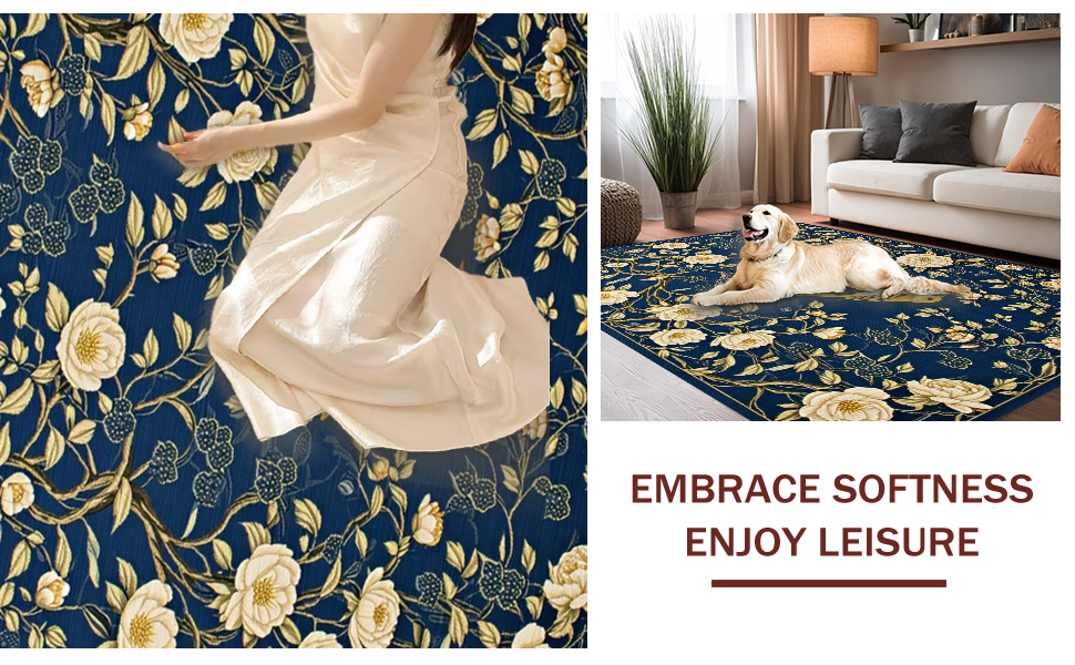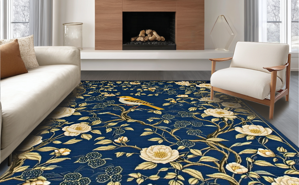 Ultra Soft Area Rug, Non Slip, Stain Resistant, Washable Area Rugs for Living Room, Bedroom, Cozy Rustic Floral Accents(Blue) Overview: