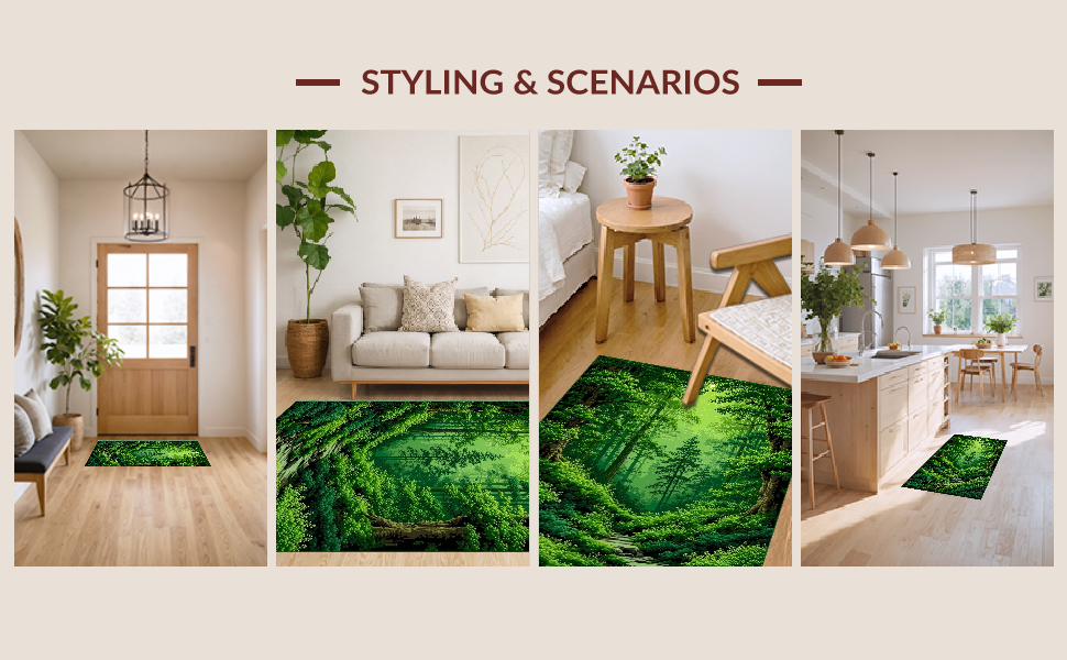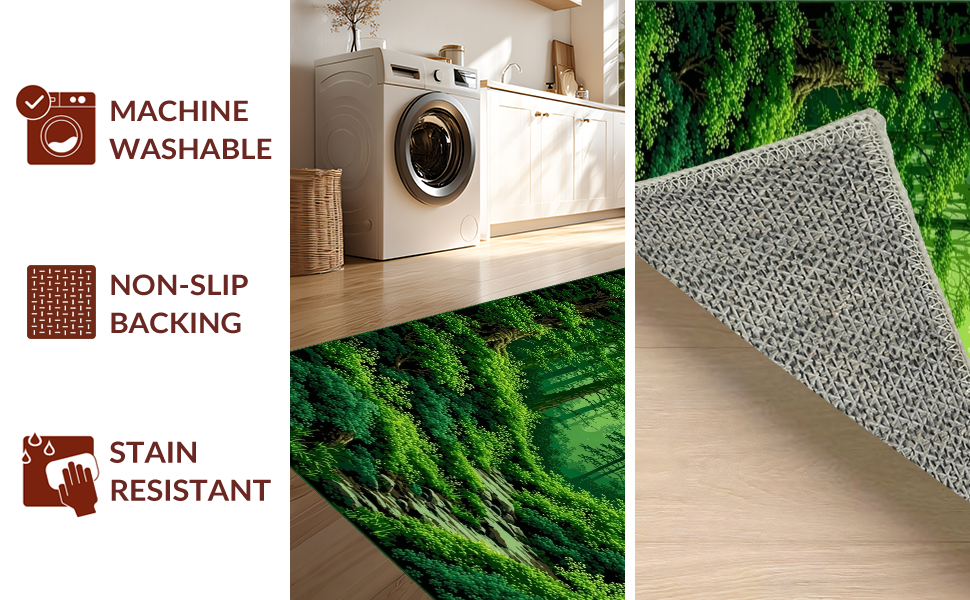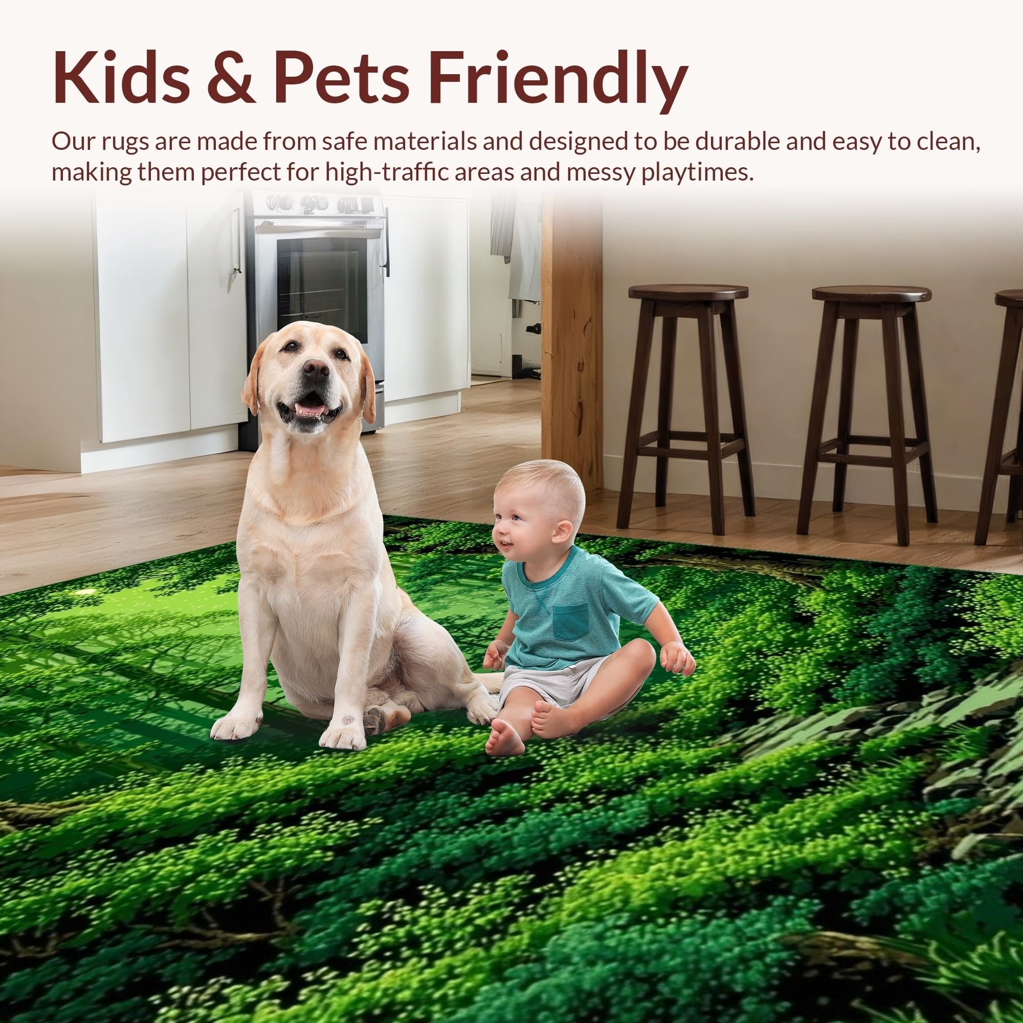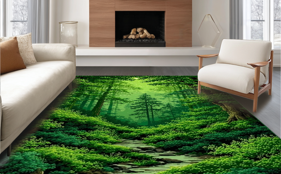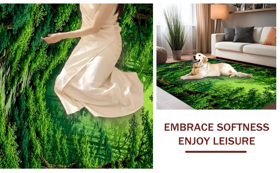 Ultra Soft Area Rug, Non Slip, Stain Resistant, Washable Area Rugs for Living Room, Bedroom, Cozy Rustic Greenery Motif(Green) Overview: