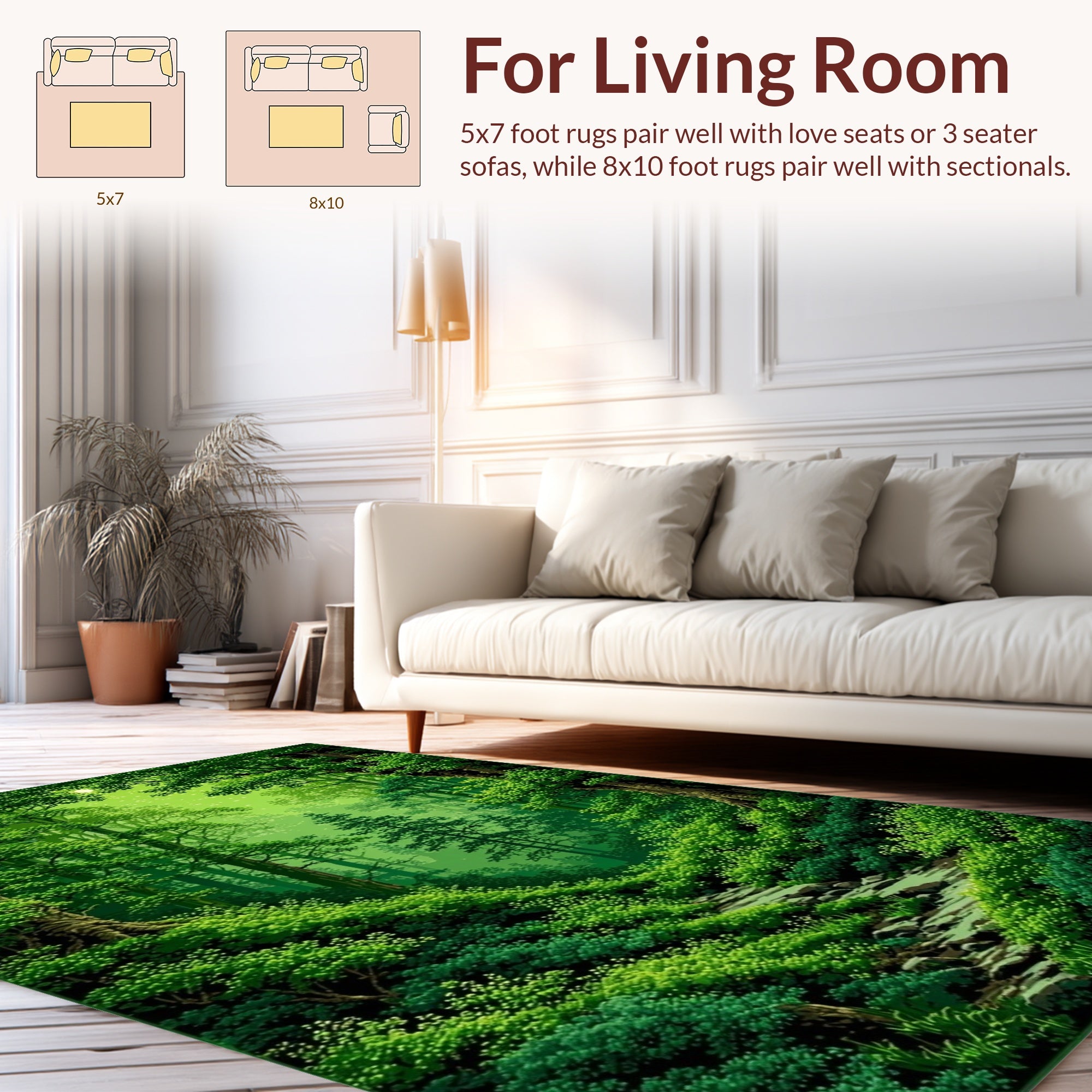Flatwoven High Traffic Area Rug, Rustic Greenery Motif, Non Slip, Stain Resistant, Washable Area Rugs for Living Room, Bedroom (Green) Overview: