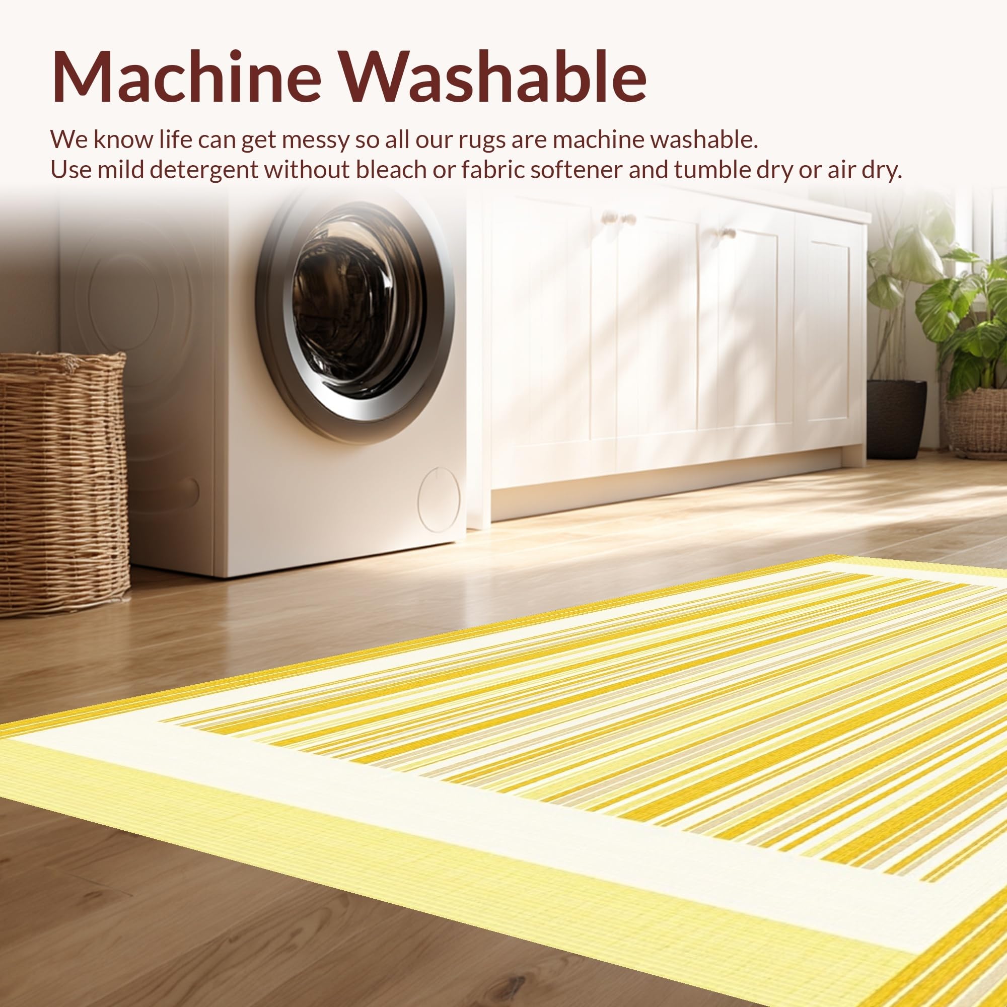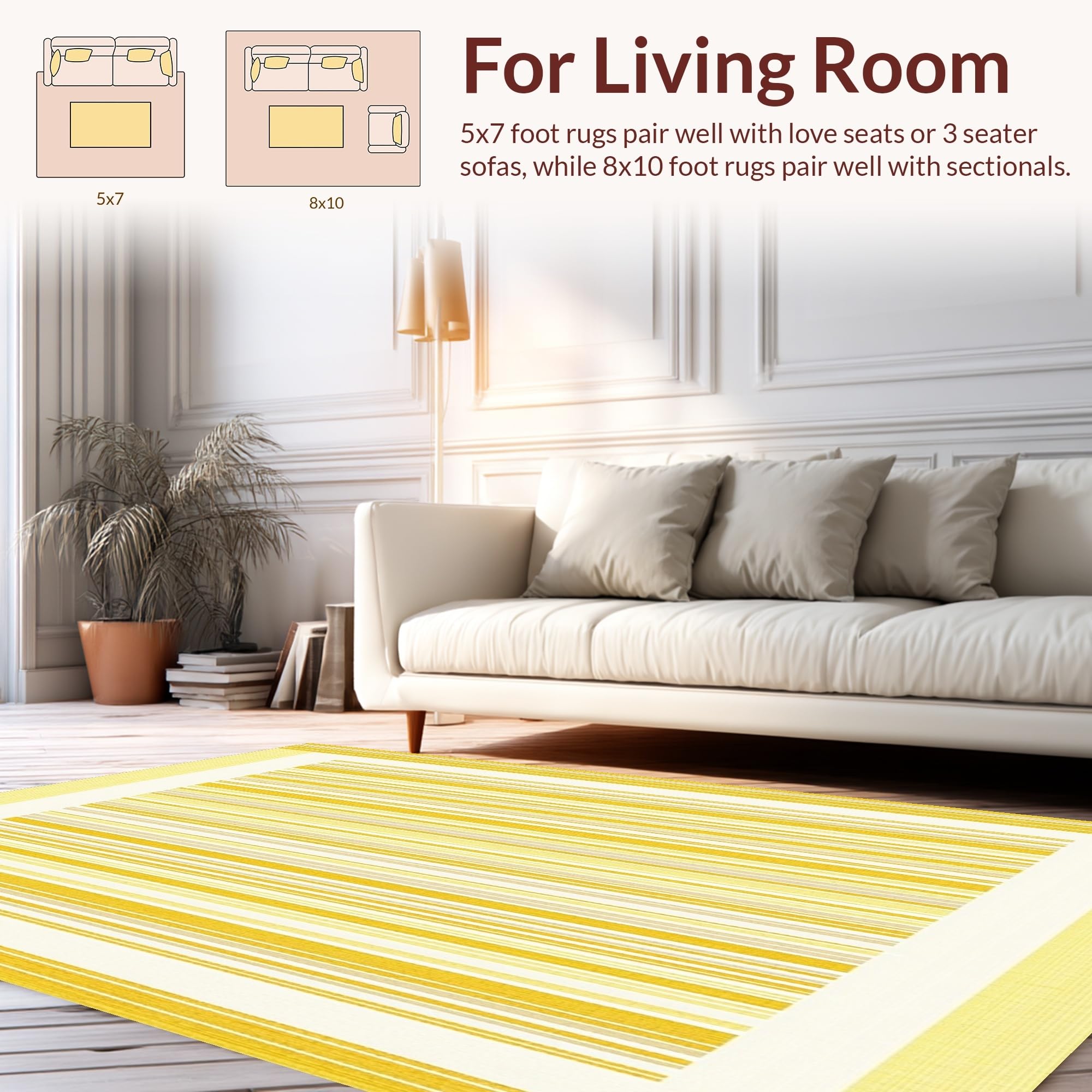 Ultra Soft Area Rug, Non Slip, Stain Resistant, Washable Area Rugs for Living Room, Bedroom, Cozy Small Animal Habitat with Simple Stripe(Yellow) Overview: