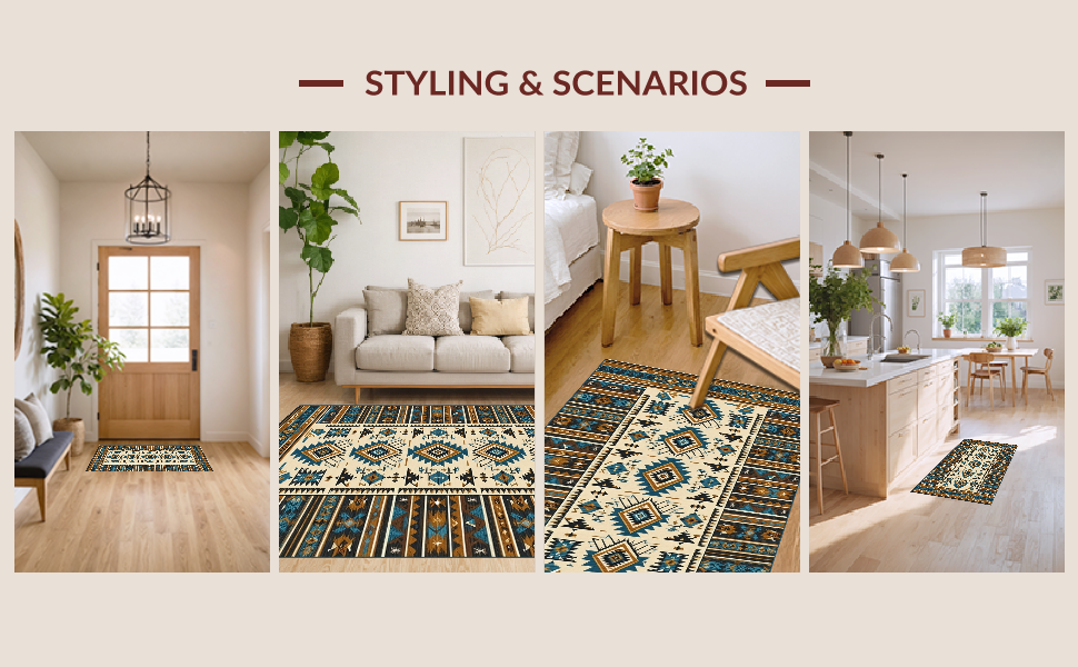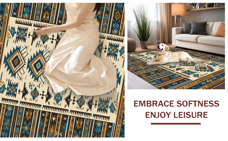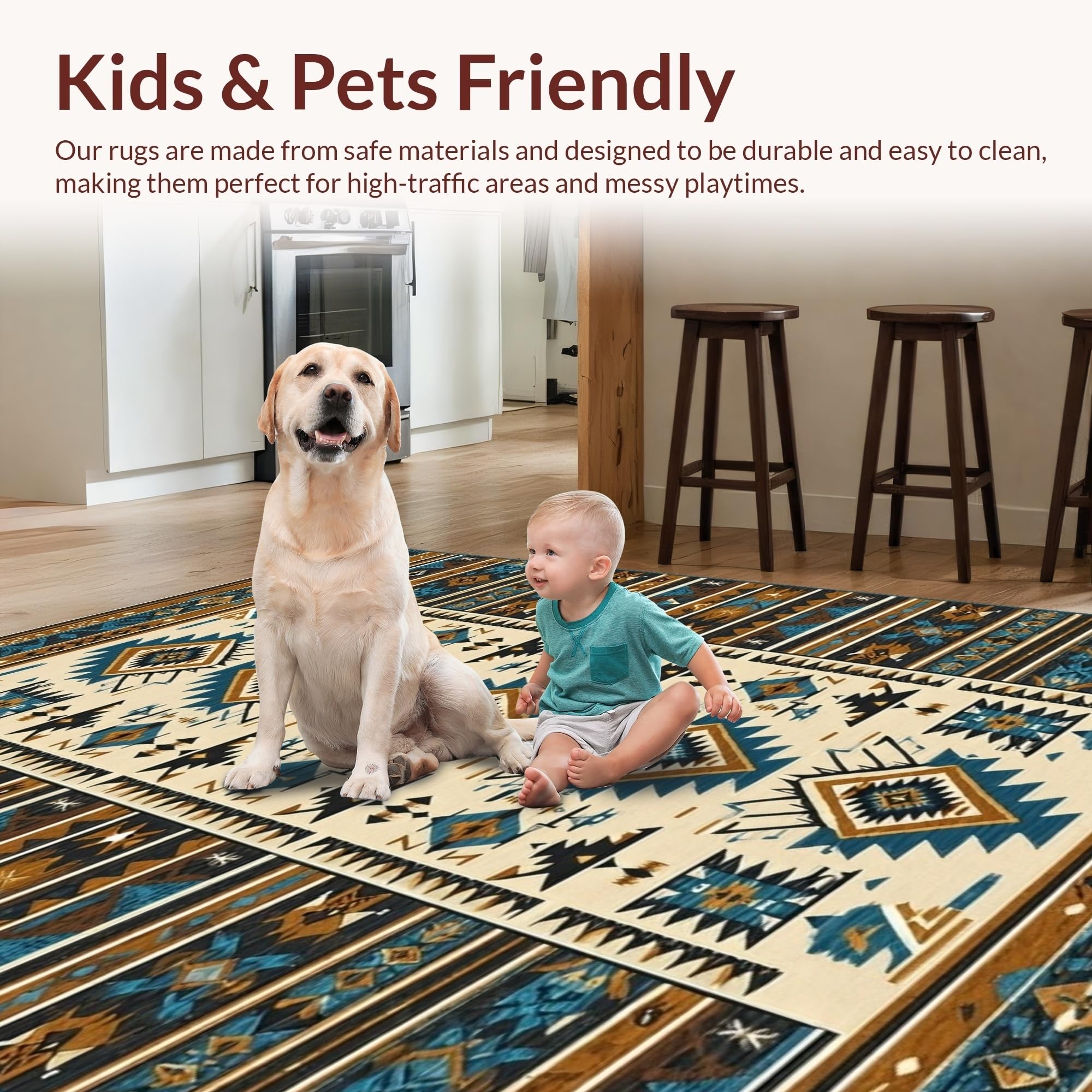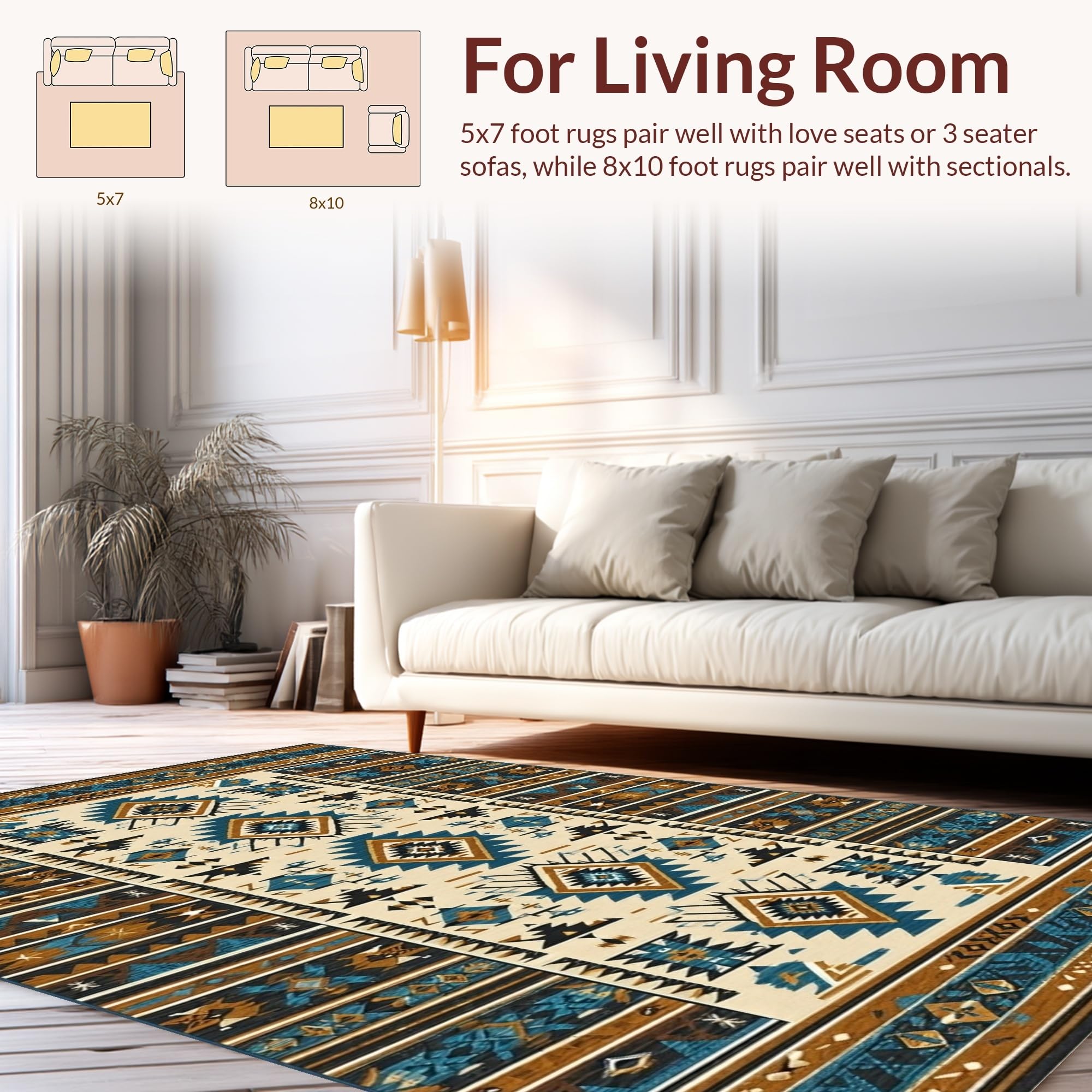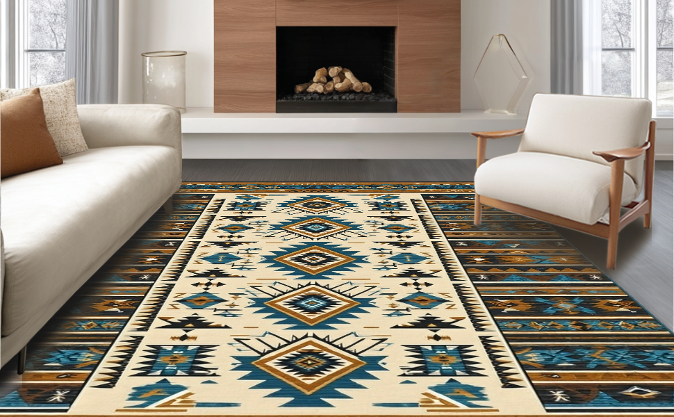 Ultra Soft Area Rug, Non Slip, Stain Resistant, Washable Area Rugs for Living Room, Bedroom, Cozy Textured Ethnic Print Fabric(Beige) Overview: