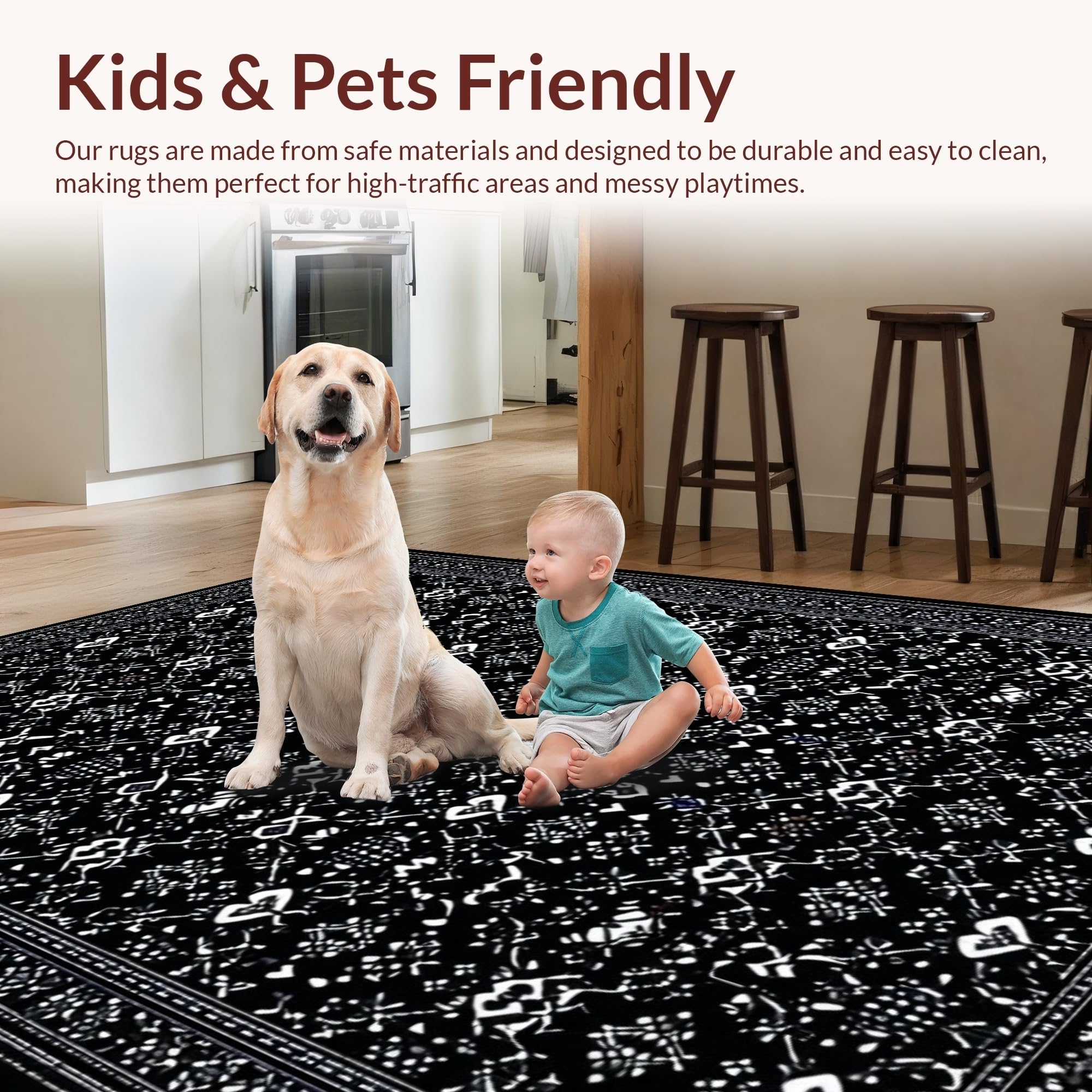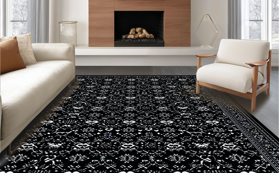Ultra Soft Area Rug, Non Slip, Stain Resistant, Washable Area Rugs for Living Room, Bedroom, Cozy Textured Love Symbol(Black) Overview: